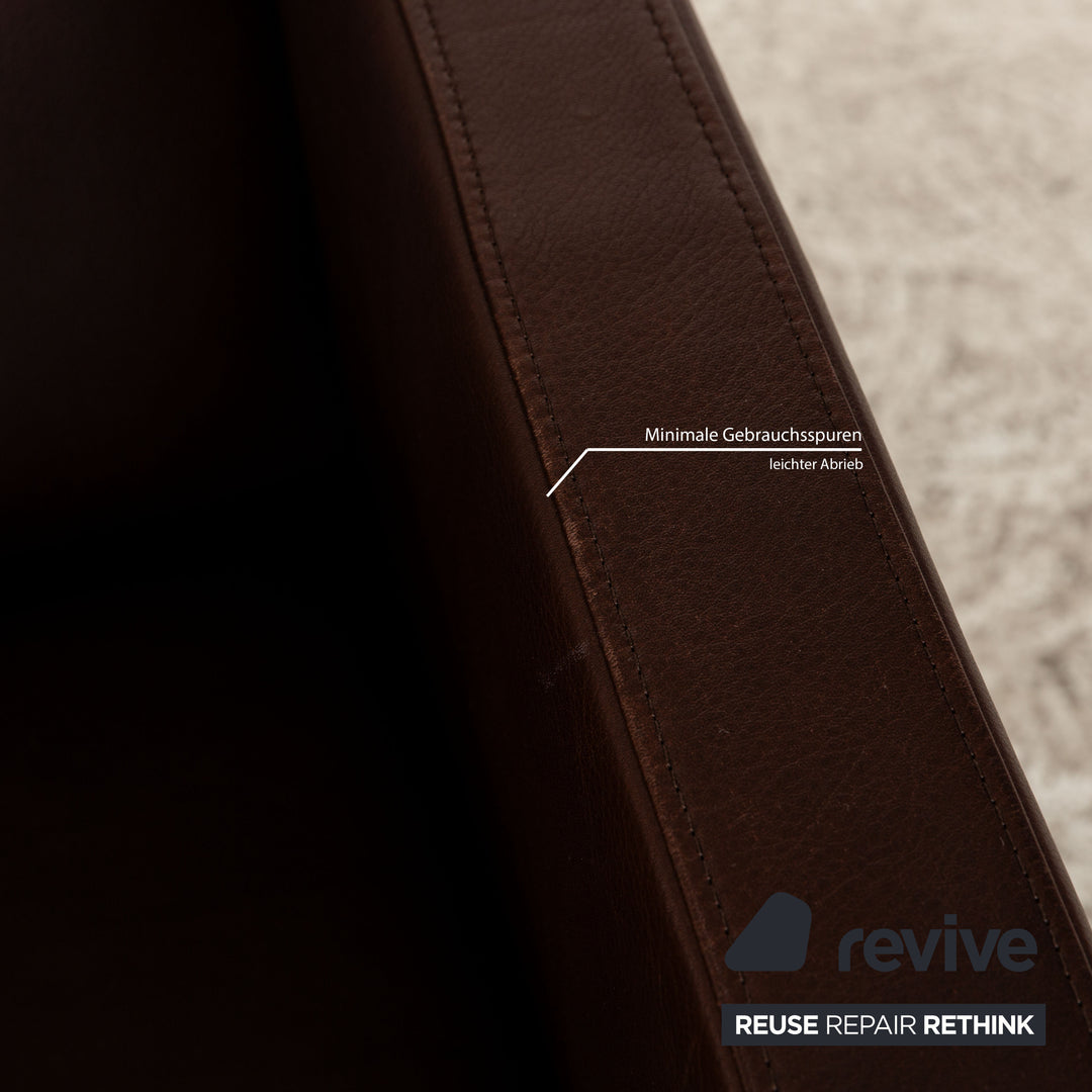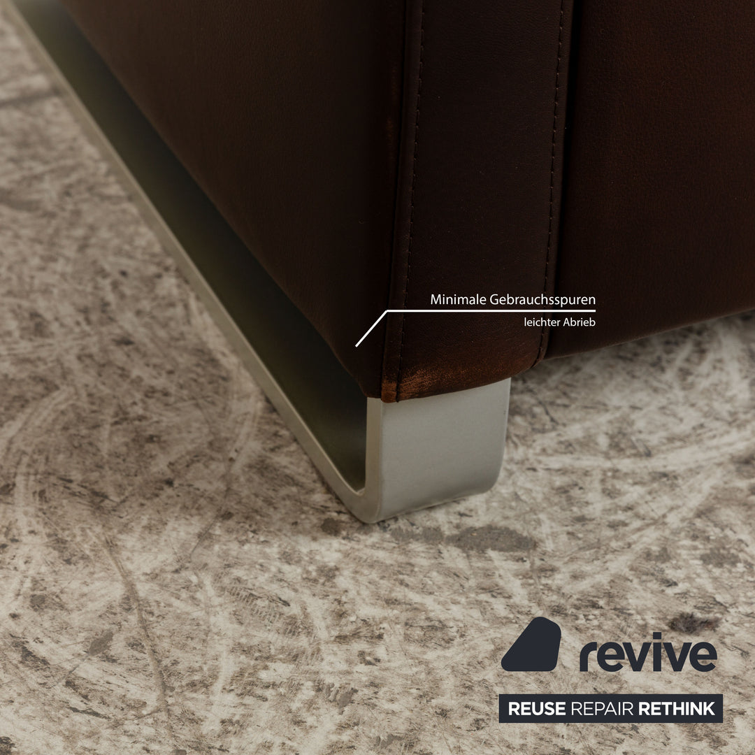 Der Sessel Quant aus dem Hause Cor ist mit einem rotbraunen Echtleder bezogen und steht auf kufenförmigen Fußgestellen. Das kubische, kantige Design zeichnet den Sessel aus.