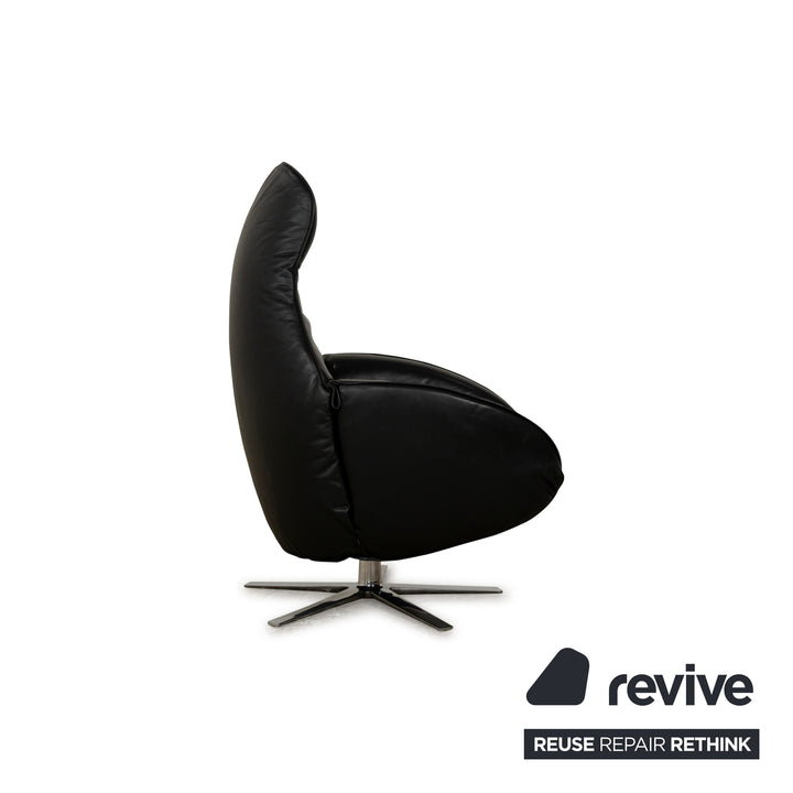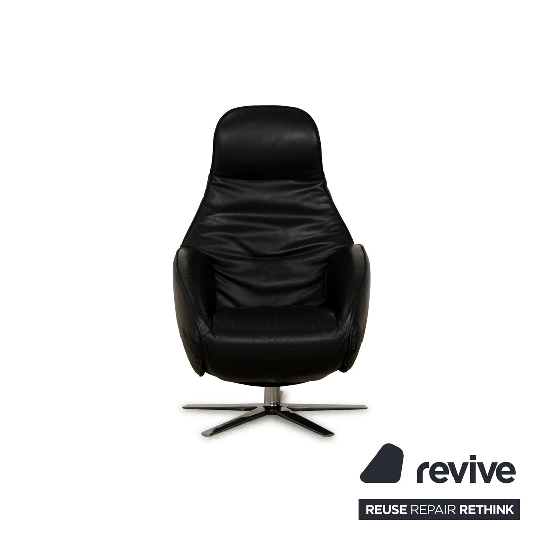 Der Sessel ROB von Cor ist mit dunkelgrauem, beinahe schwarzem Leder bezogen und ruht auf einem Metallfuß. Er kommt mit hoher Funktionalität ins Haus, denn er verfügt über eine elektrische Verstellbarkeit inklusive Akku, wodurch sich der Sessel auch ohne störendes Kabel frei im Raum positionieren lässt. Mit der Fernbedienung lässt sich eine Fußstütze ausklappen, sowie die Rückenlehne nach hinten neigen.