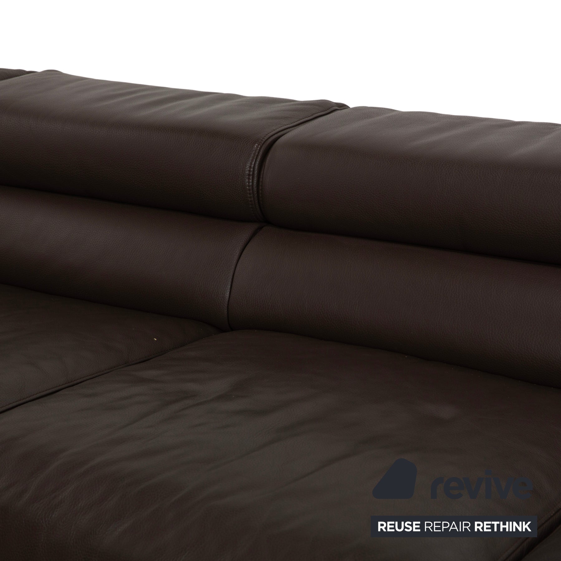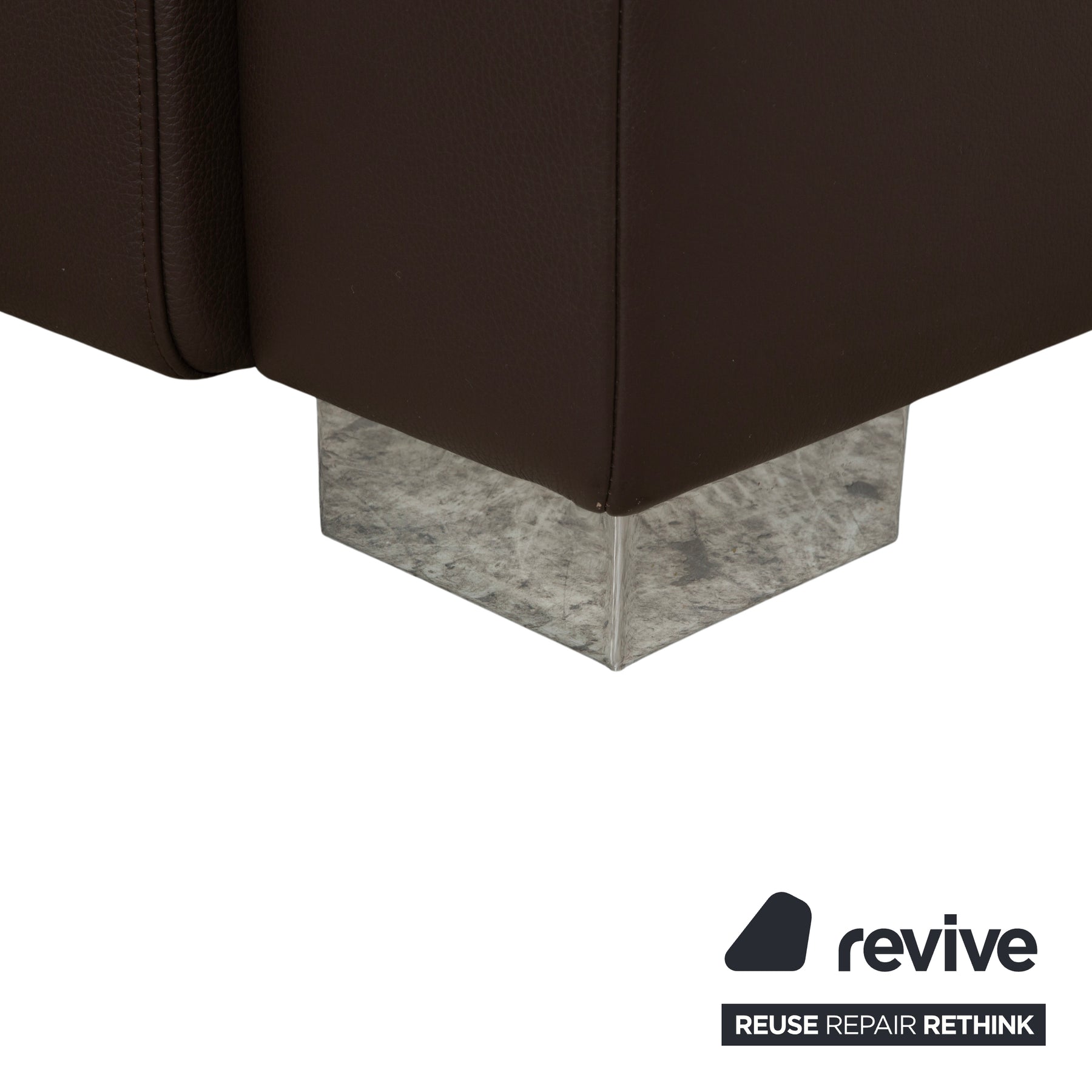 Ein absolutes Highlight ist die Flexibilität: Die Kopfstützen sind verstellbar. Du kannst sie flach nach hinten klappen, um die Silhouette des Sofas niedrig und modern zu halten (Low-Profile-Look), oder hochstellen, wenn du beim Fernsehen den vollen Nacken-Support brauchst. Die breite Recamiere auf der linken Seite lädt förmlich dazu ein, die Beine hochzulegen und zu entspannen. Getragen wird der massive Korpus von breiten, verchromten Blockfüßen, die dem Sofa einen sicheren Stand und einen glänzenden, modernen Akzent verleihen. Viel Platz, durchdachte Funktionen und eine Optik, an der man sich nicht sattsieht.
