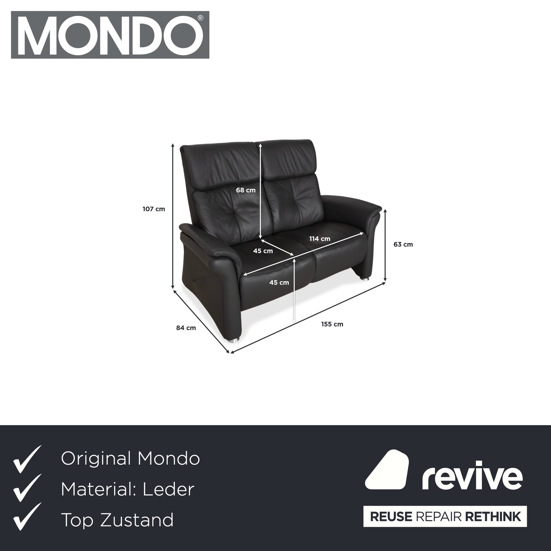 Mondo Varia Leder Zweisitzer Dunkelgrau Anthrazit