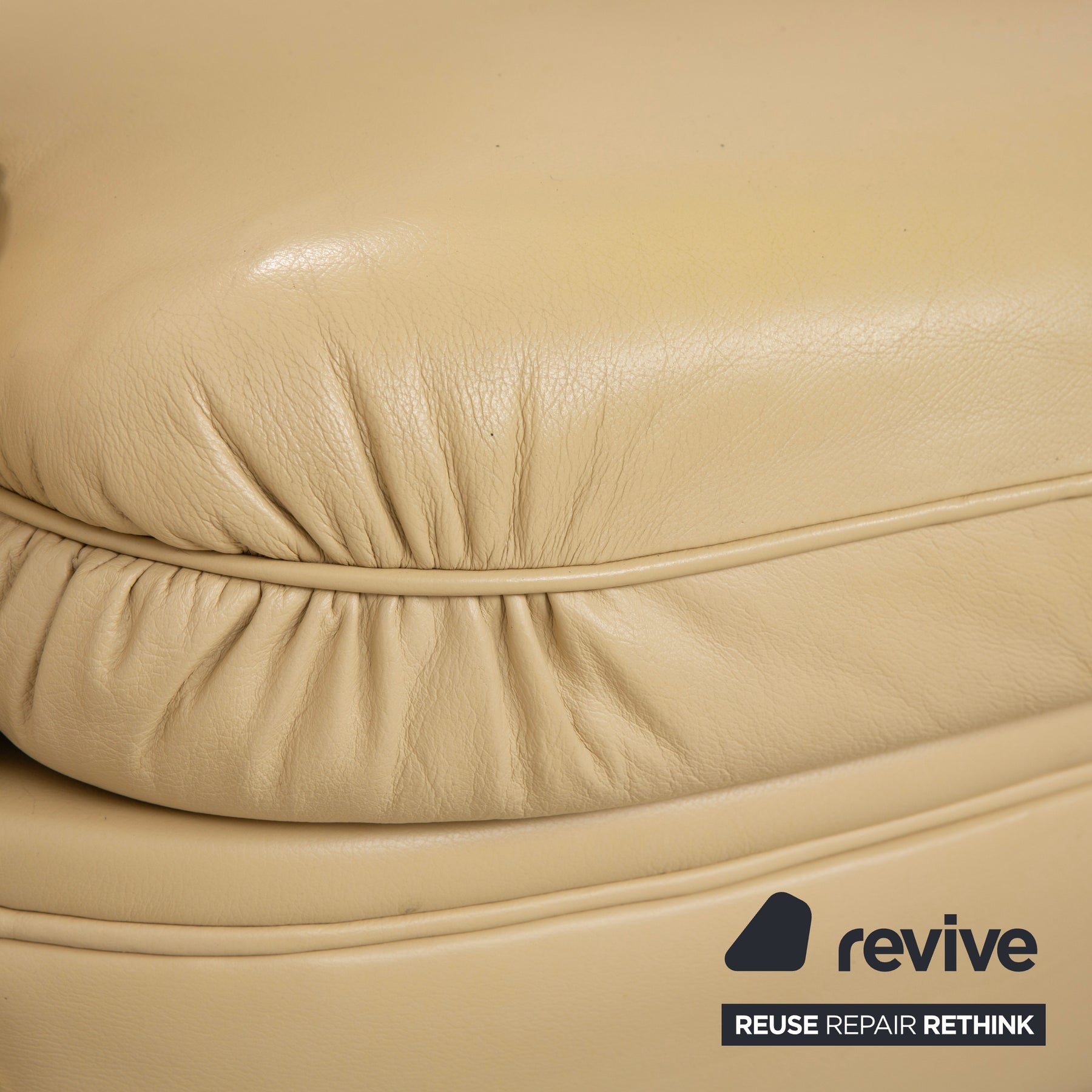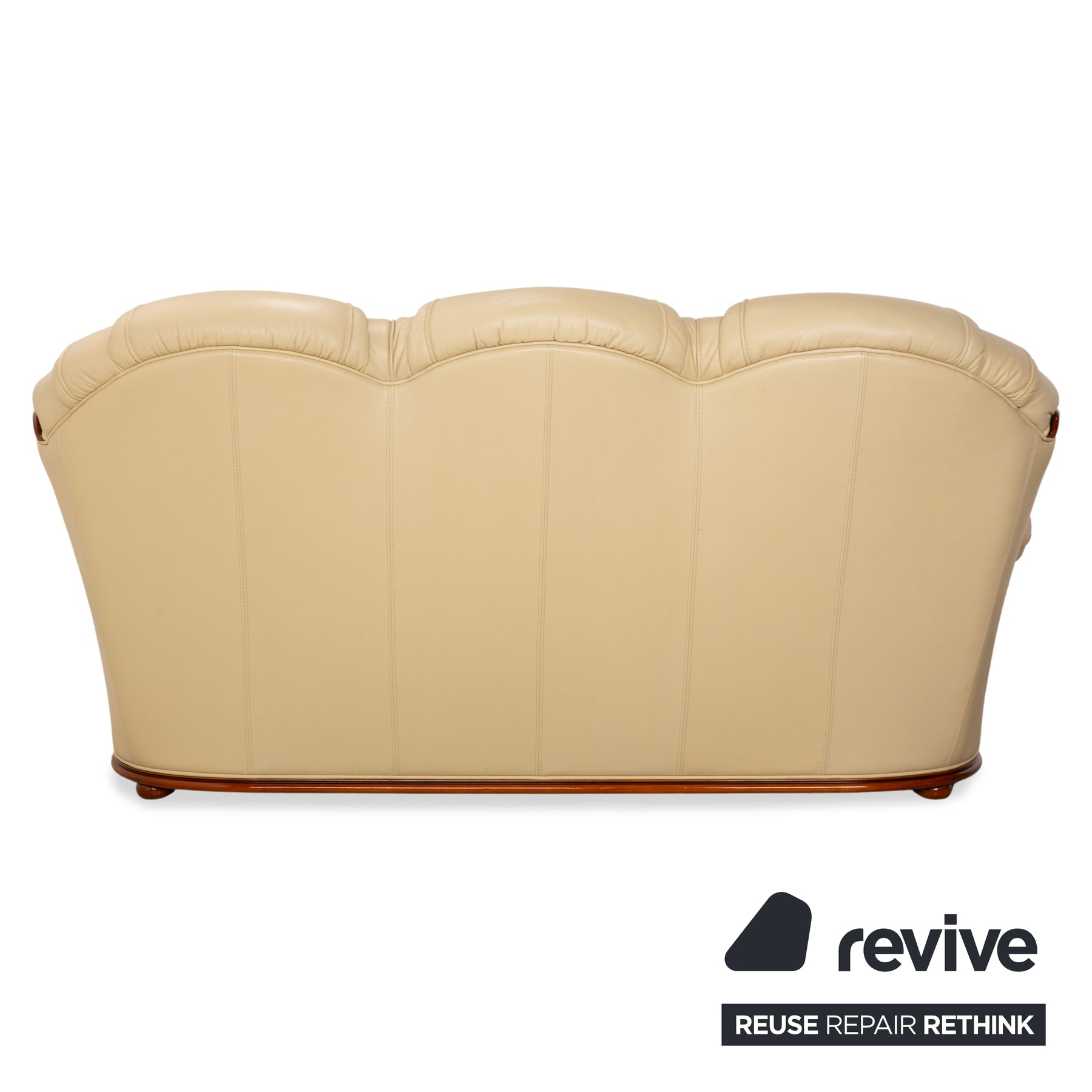 Nieri Leder Holz Dreisitzer Creme Braun Sofa Couch