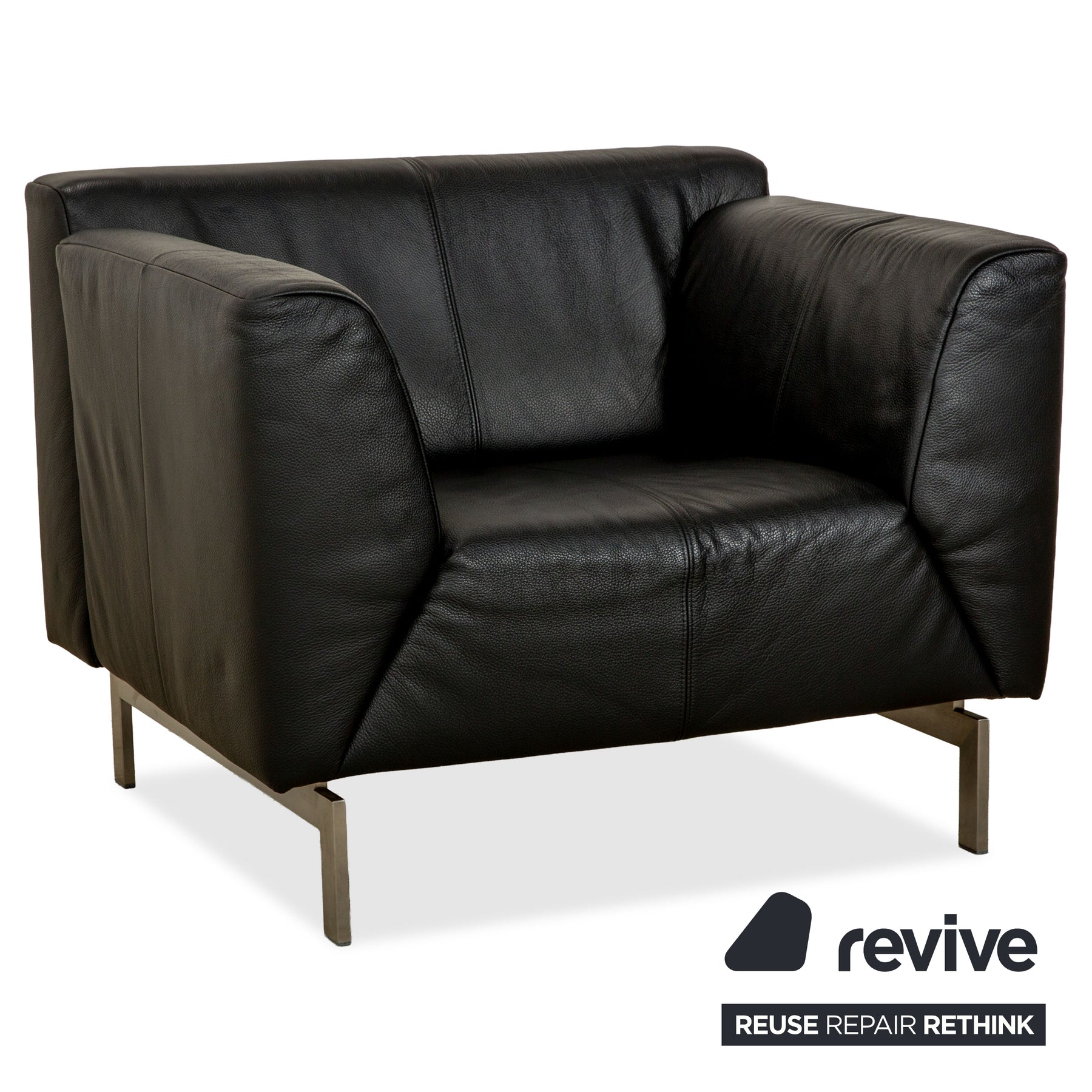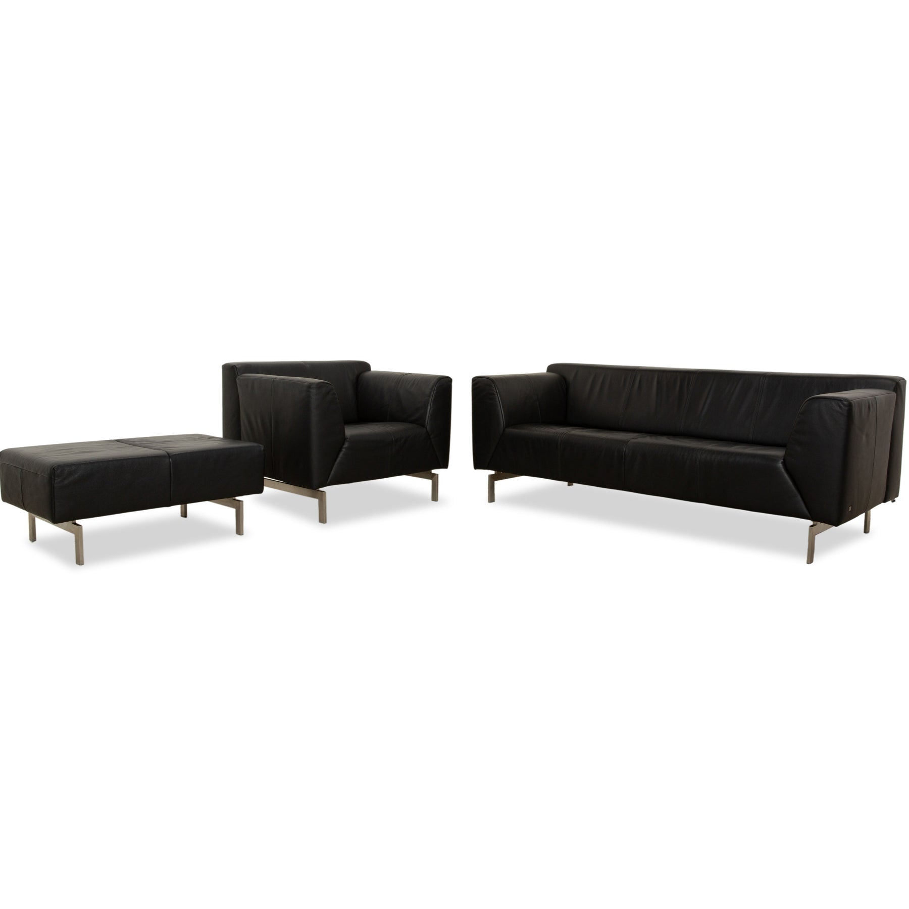 Rolf Benz 318 Linea Leder 1x Dreisitzer 1x Hocker 1x Sessel Schwarz Sofa Couch