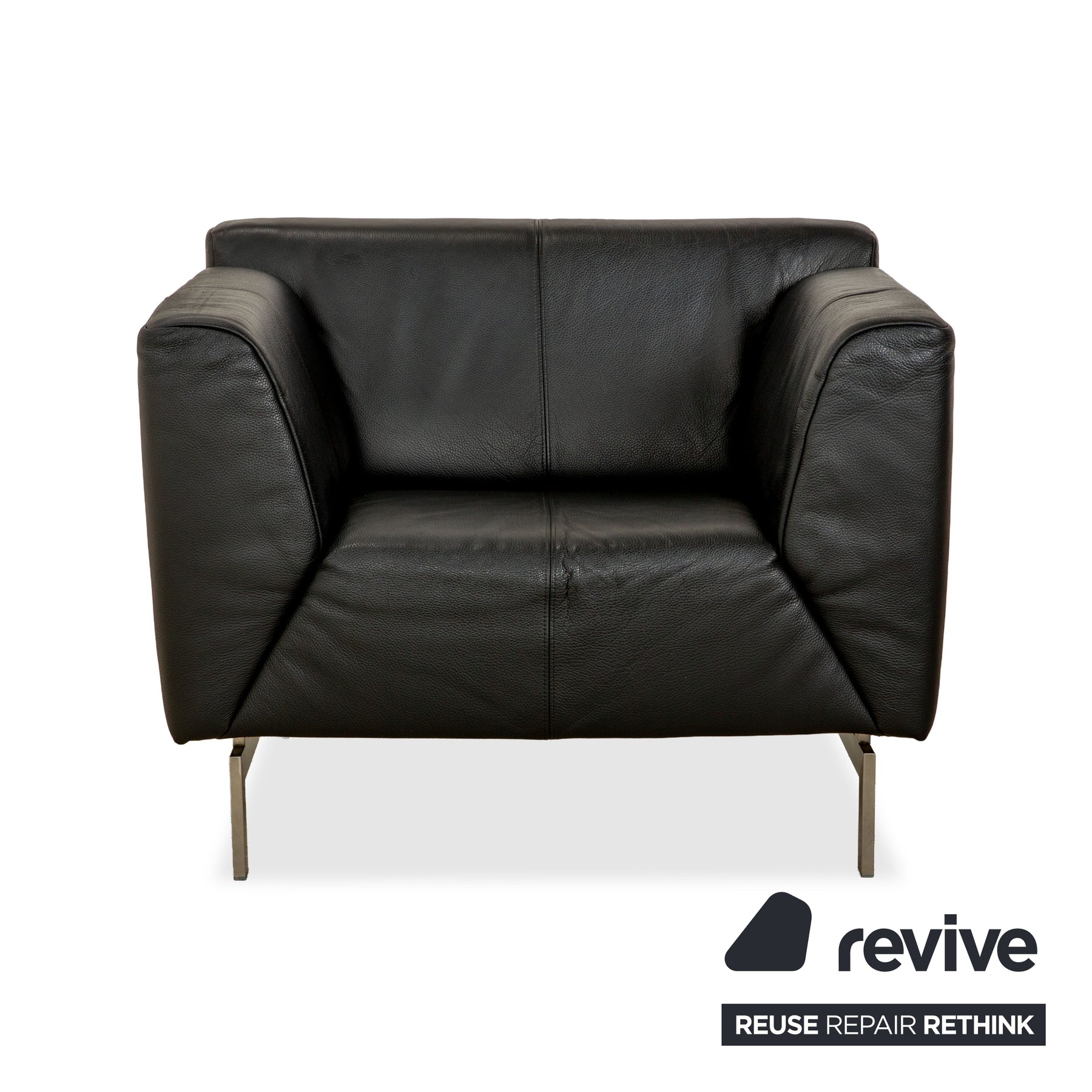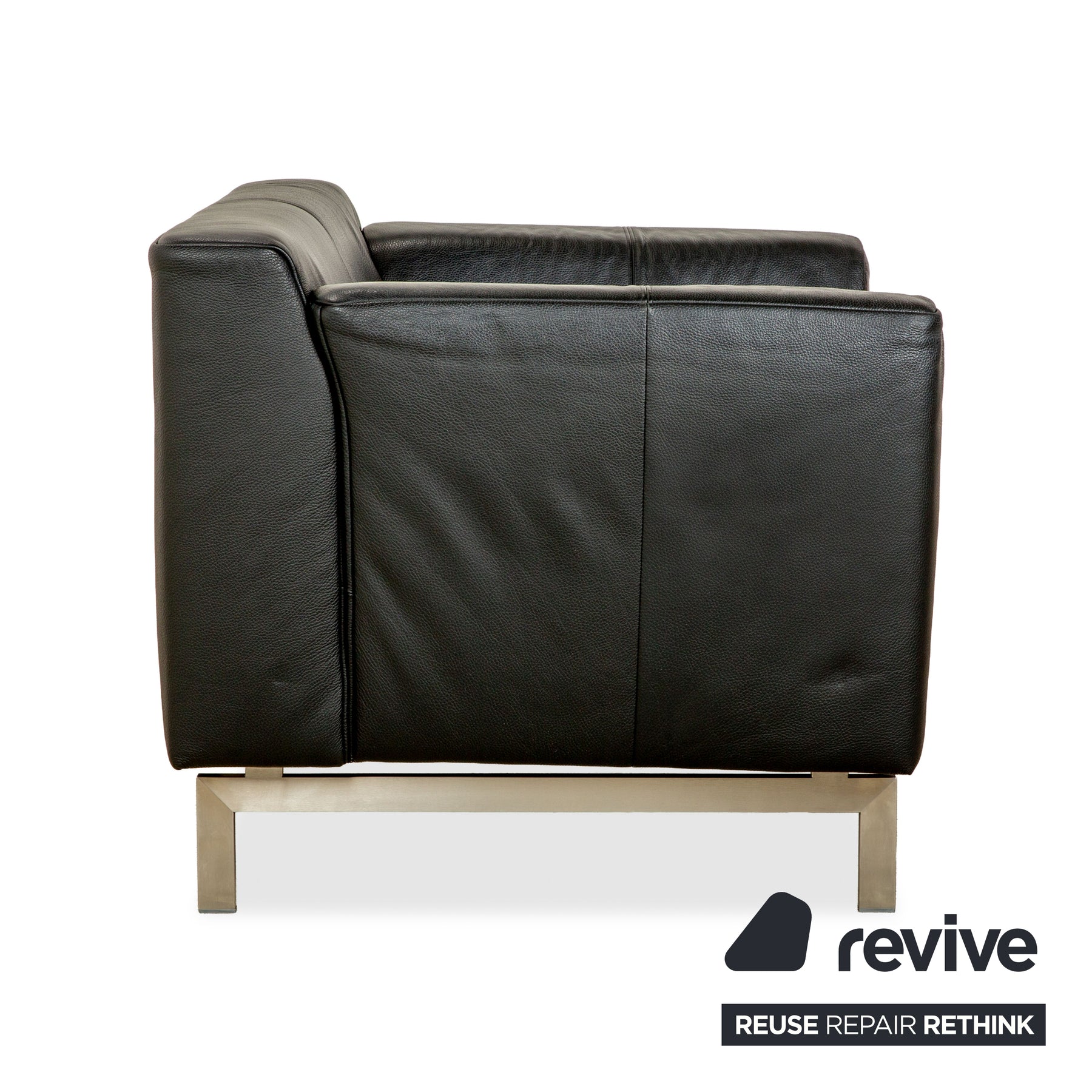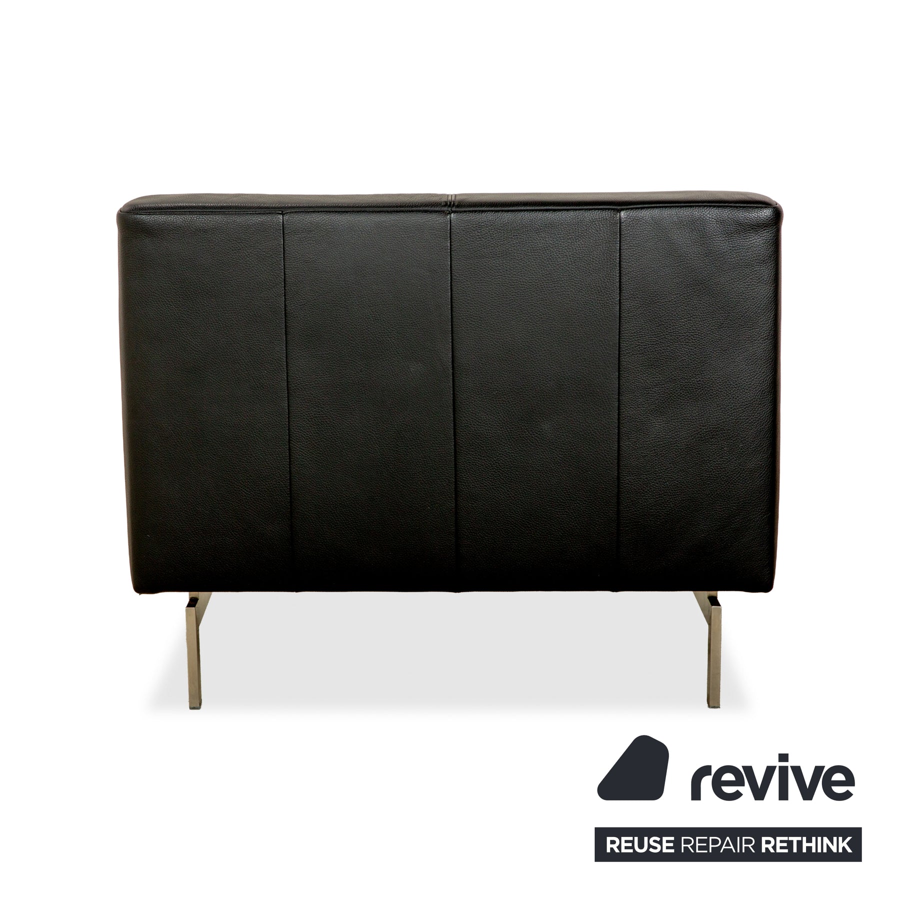 Der 318 Linea Sessel von Rolf Benz ist mit einem schwarzen Echtleder bezogen und steht auf schlichten und formstarken Metallfüßen. Das schlichte und zeitlose Design zeichnet ihn aus.