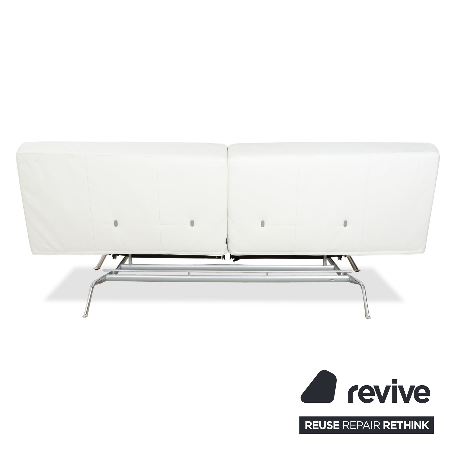 Der Zweisitzer Smala von ligne roset ist mit einem weißen Echtleder bezogen und steht auf schmalen, silbernen Metallfüßen. Er zeichnet sich durch die hochqualitative Verarbeitung und die manuell verstellbaren Rücken- und Armlehnen aus, wodurch maximaler Komfort gewährleistet wird.
