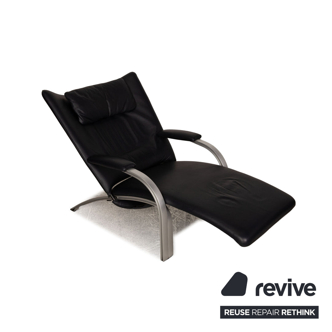 The Spot 698 armchair by WK Wohnen is covered with dark blue real leather and stands on silver feet. The classic design and the rounded seat characterize it.