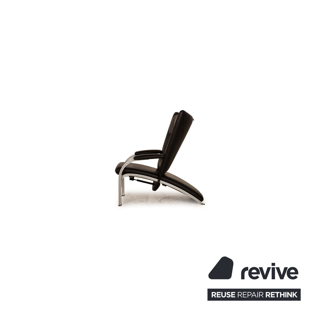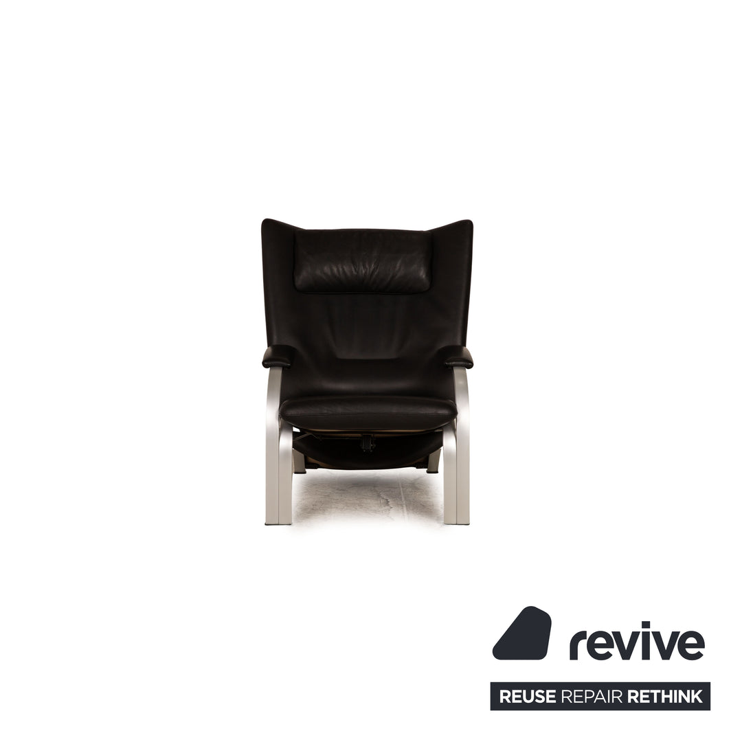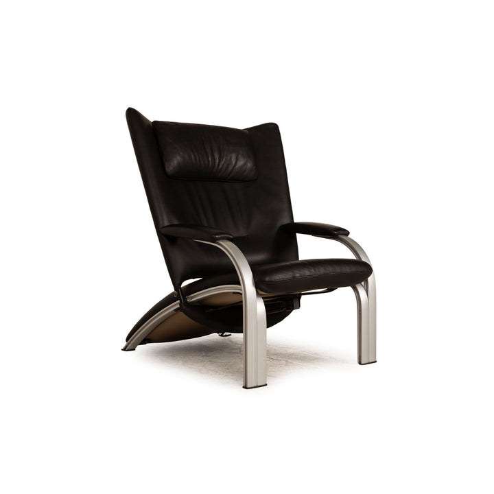 The Spot 698 armchair by WK Wohnen is covered with black genuine leather and stands on silver metal feet. It is characterized by the timeless, simple design and the comfortable relax function.