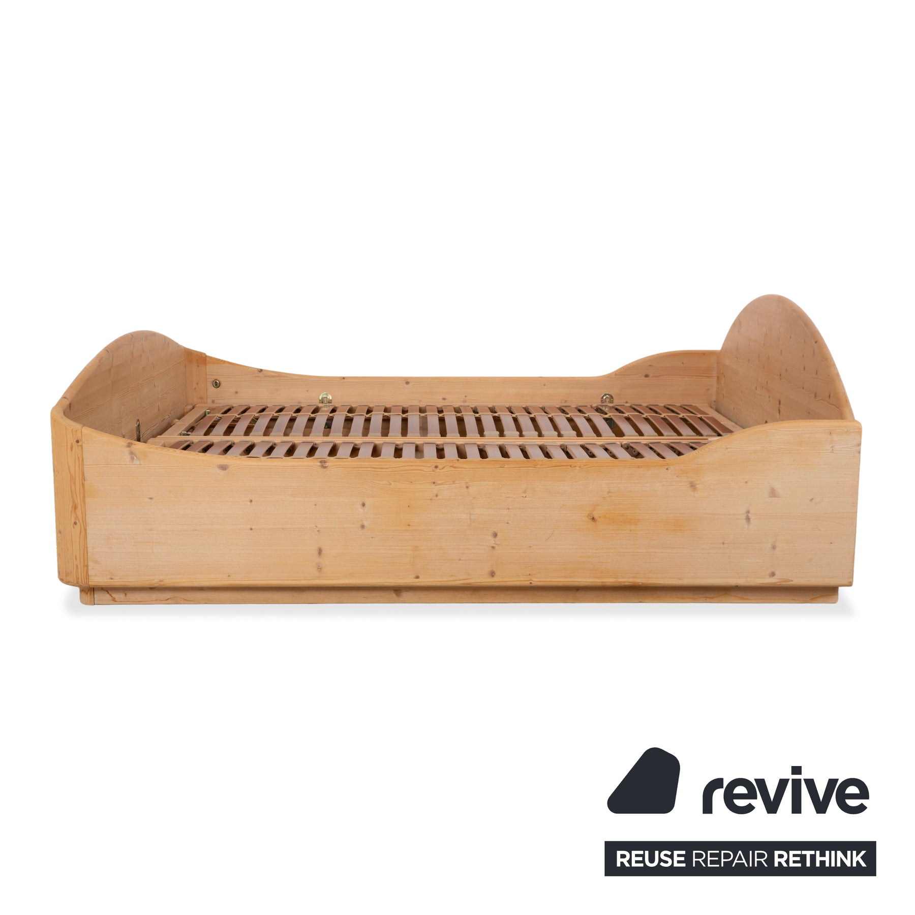This high-quality double bed from Team7 impresses with its natural appeal and warm brown hue, which beautifully highlights the fine grain of the solid wood. The design combines clean lines with gently curved shapes – particularly evident in the harmoniously rounded headboard and the elegantly arched footboard. The characteristic knots lend the bed an authentic, handcrafted charm and underscore its natural look. Equipped with sturdy wooden slatted bases, the bed provides a solid foundation for restful sleep. With its generous dimensions of 180 x 200 cm, this timeless piece of furniture fits perfectly into both modern and traditional bedrooms, creating a warm and calming atmosphere. The drawer can also be manually pulled out, and the sleeping position is adjustable.