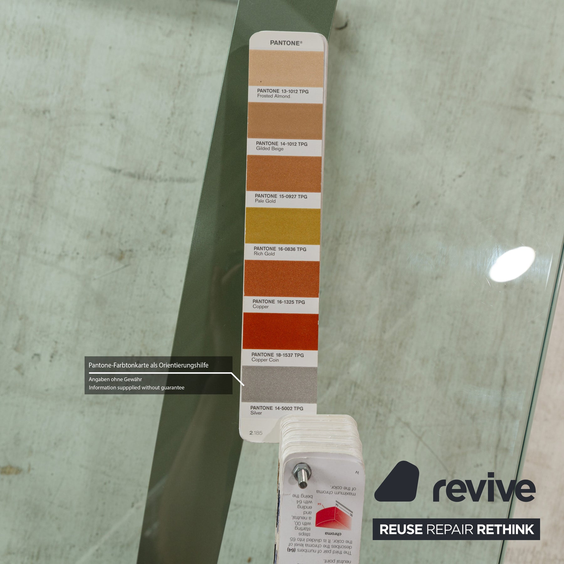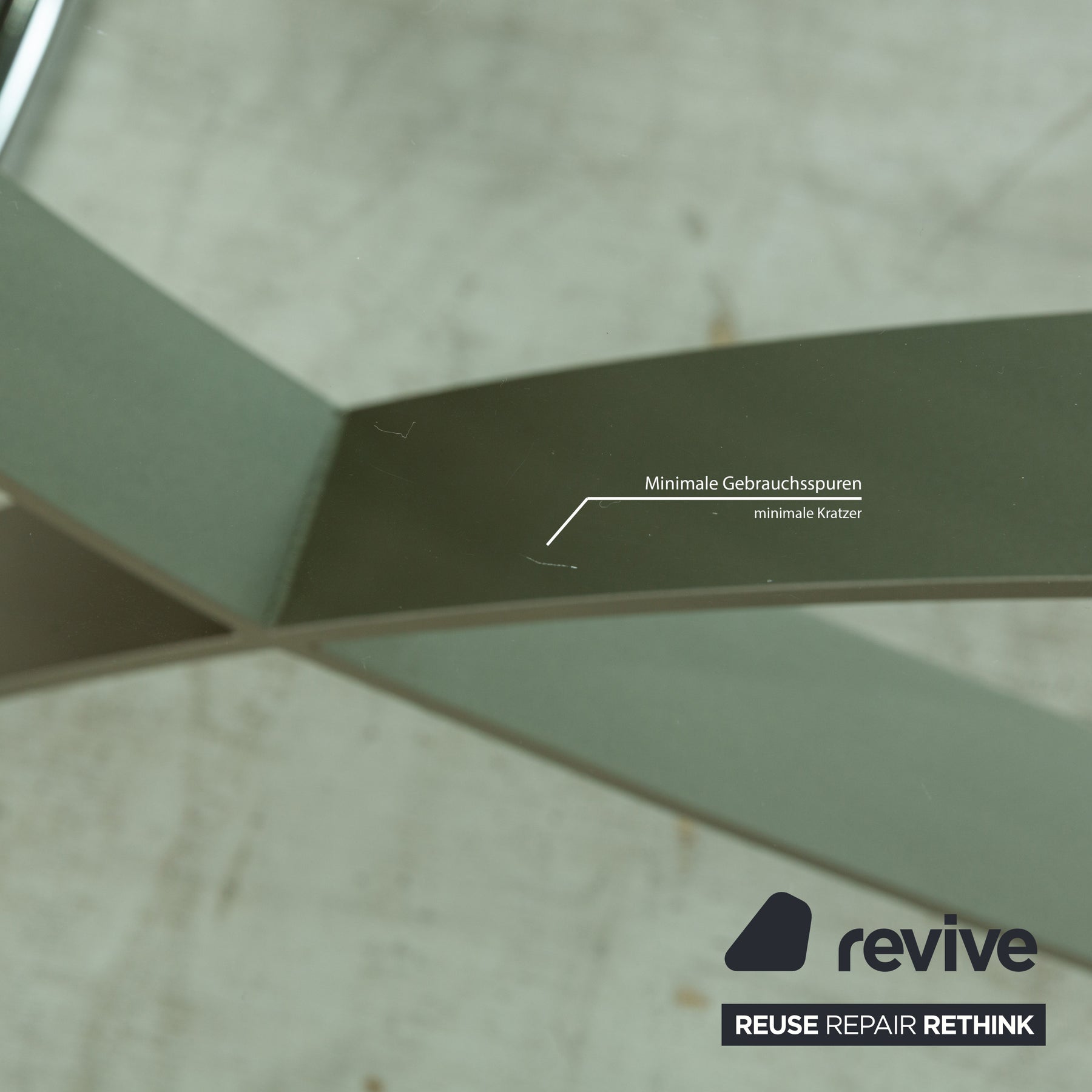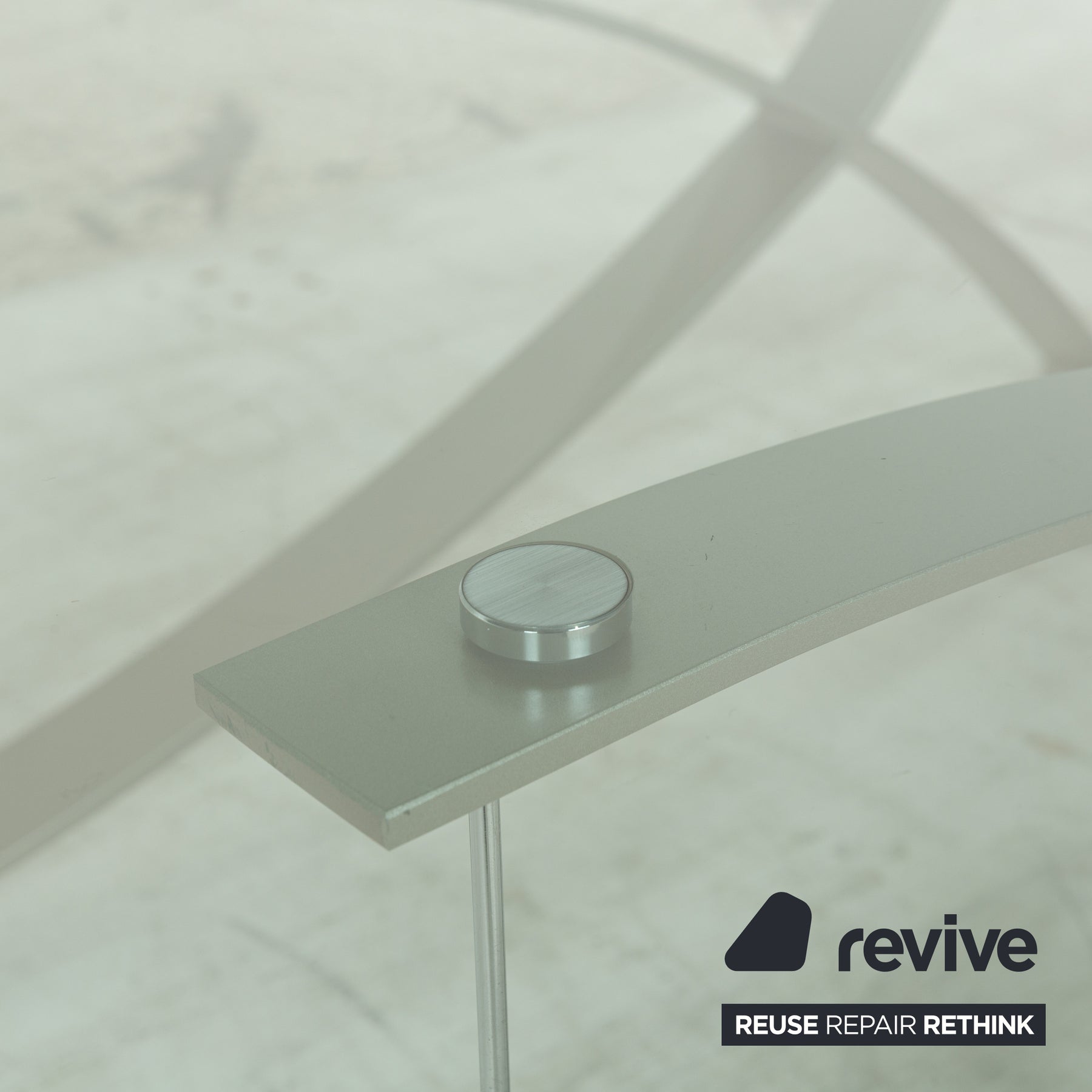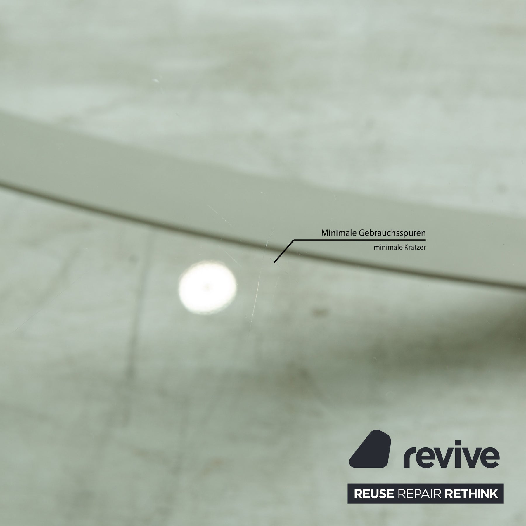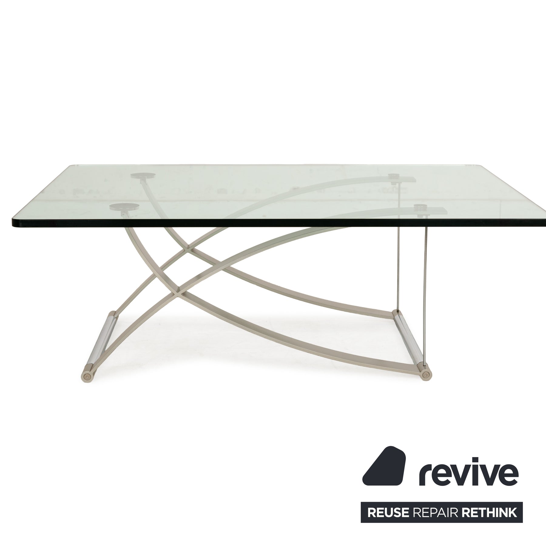 The 1150 glass table by Rolf Benz impresses with its timeless design. The rectangular glass top with minimally rounded corners is mounted on a metal frame characterized by its extravagant design and sweeping shape. A stylish addition to the modern living room.