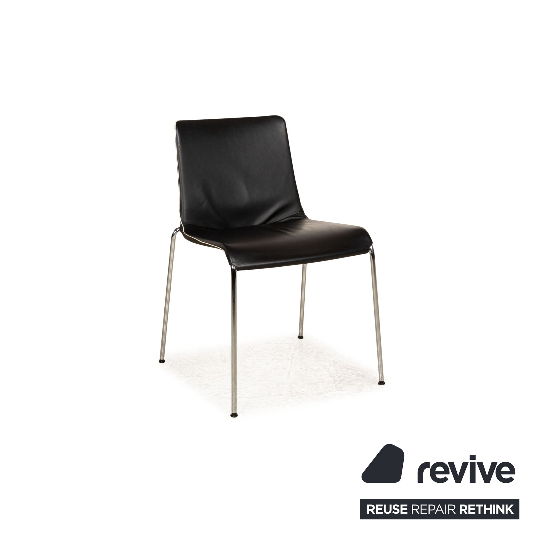 The Liz chair set by Walter Knoll is covered in black genuine leather and stands on metal feet. The classic, timeless design characterizes the six chairs.