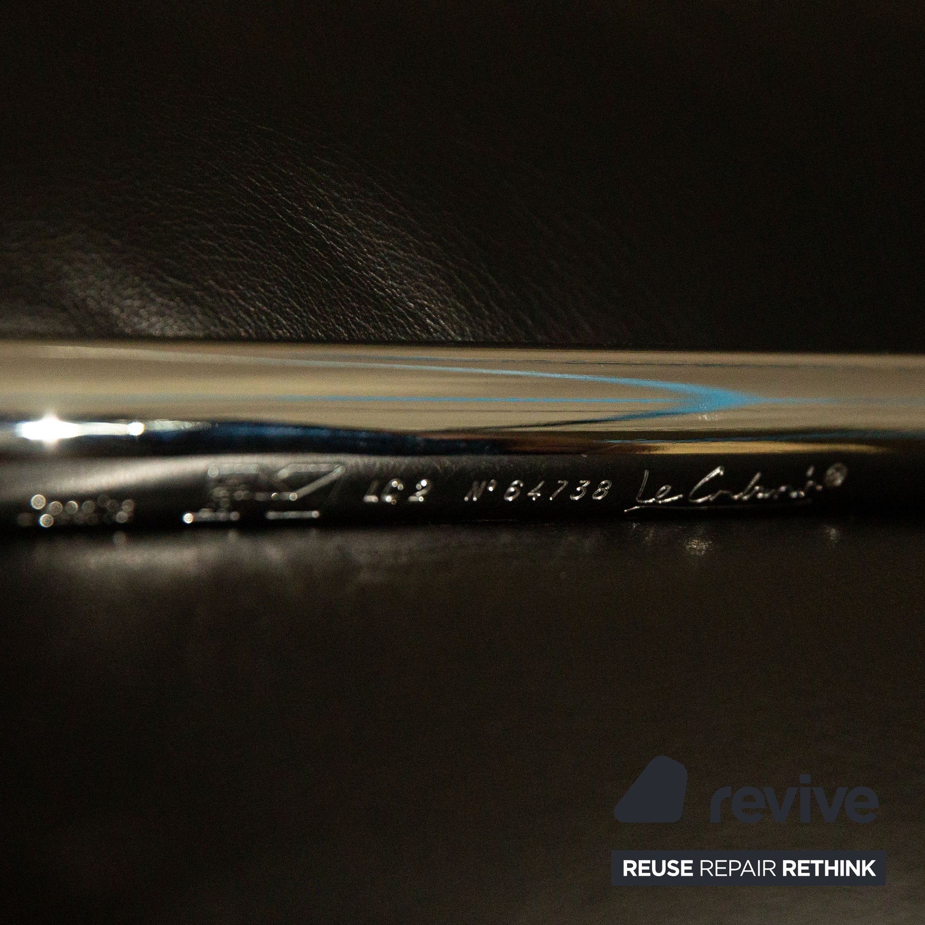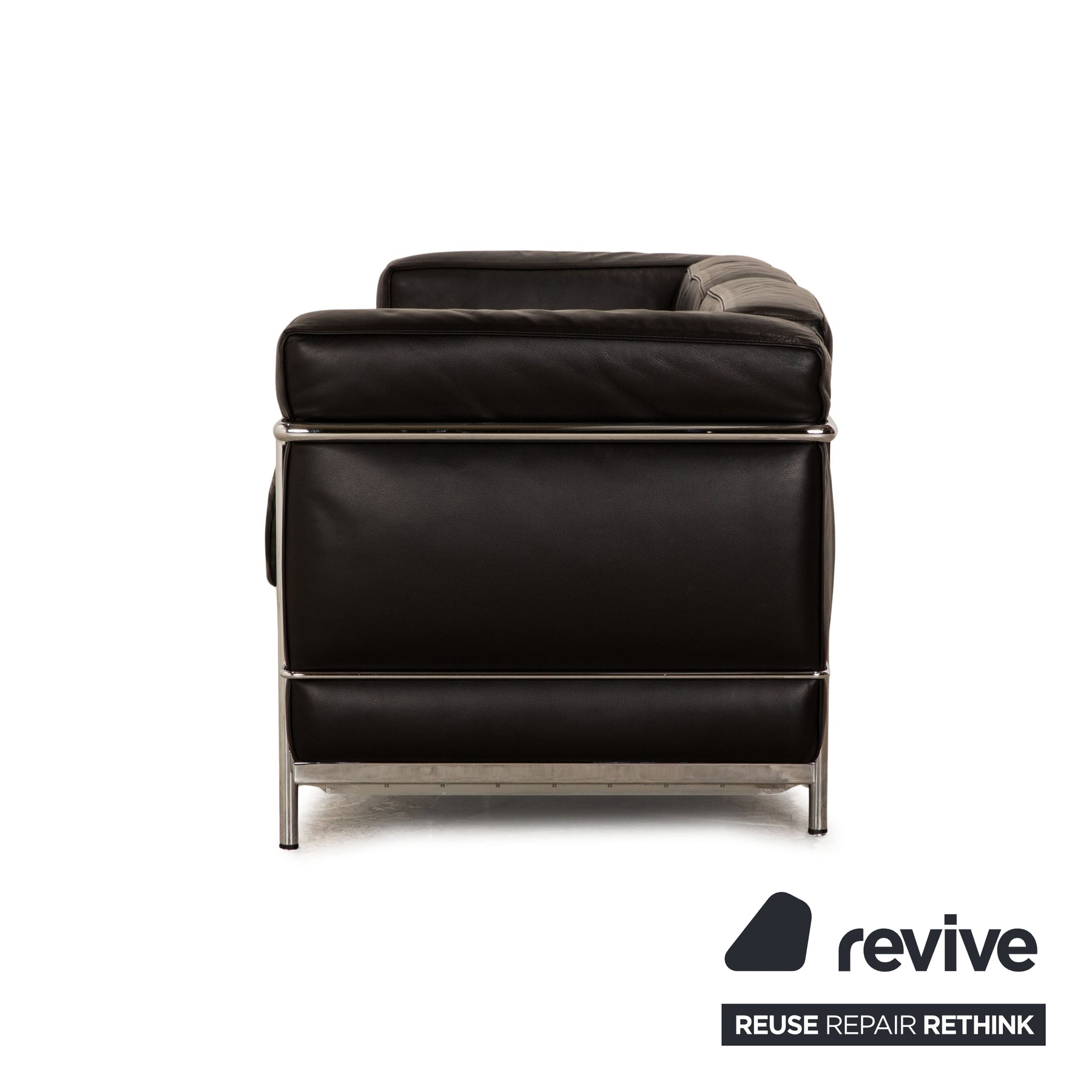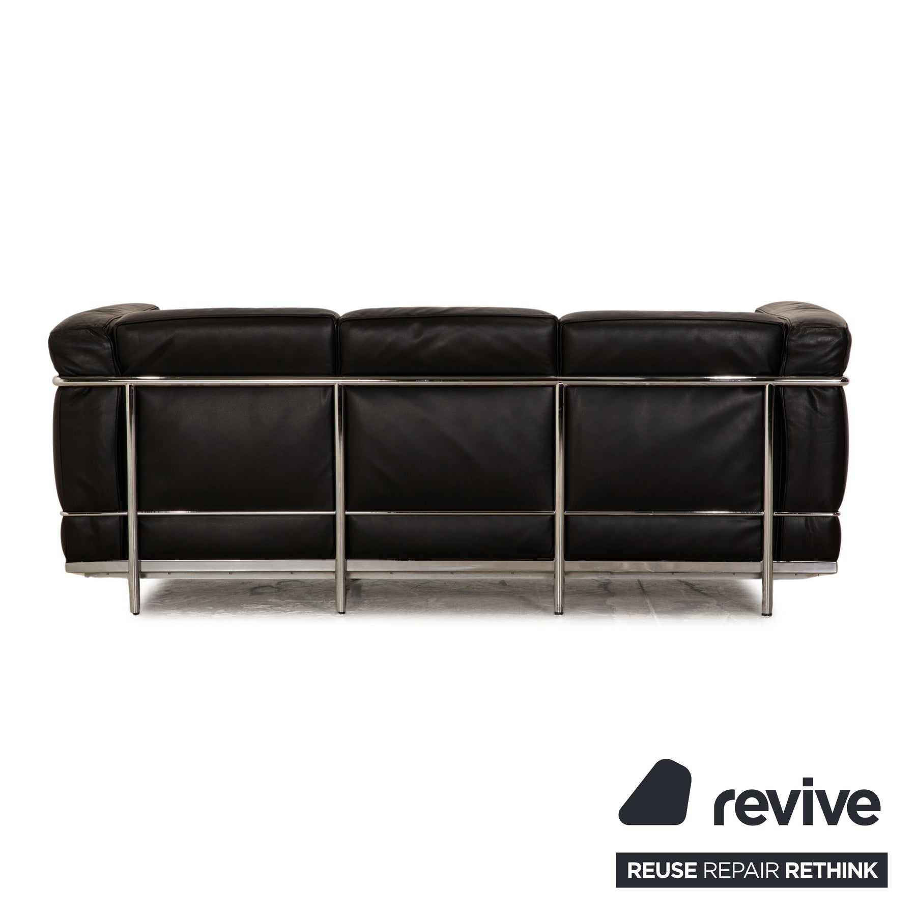 The three-seater Le Corbusier LC 2 by Cassina is covered in black genuine leather and stands on a chrome-plated tubular steel frame. It is characterized by its stylish design and simple, classic design.
