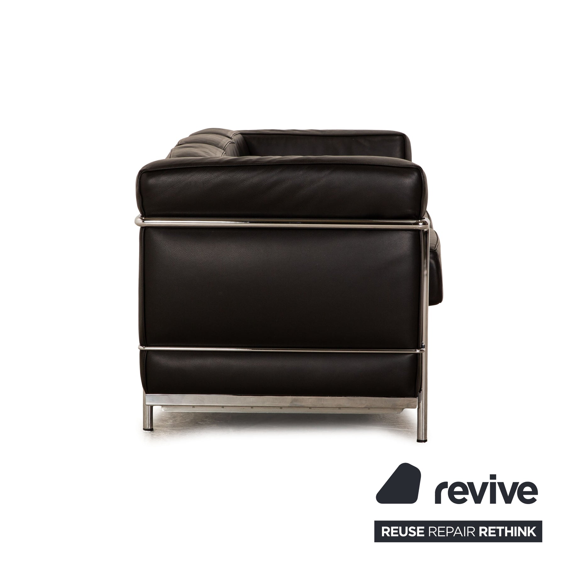 Cassina Le Corbusier LC 2 Leather Three Seater Black Sofa Couch