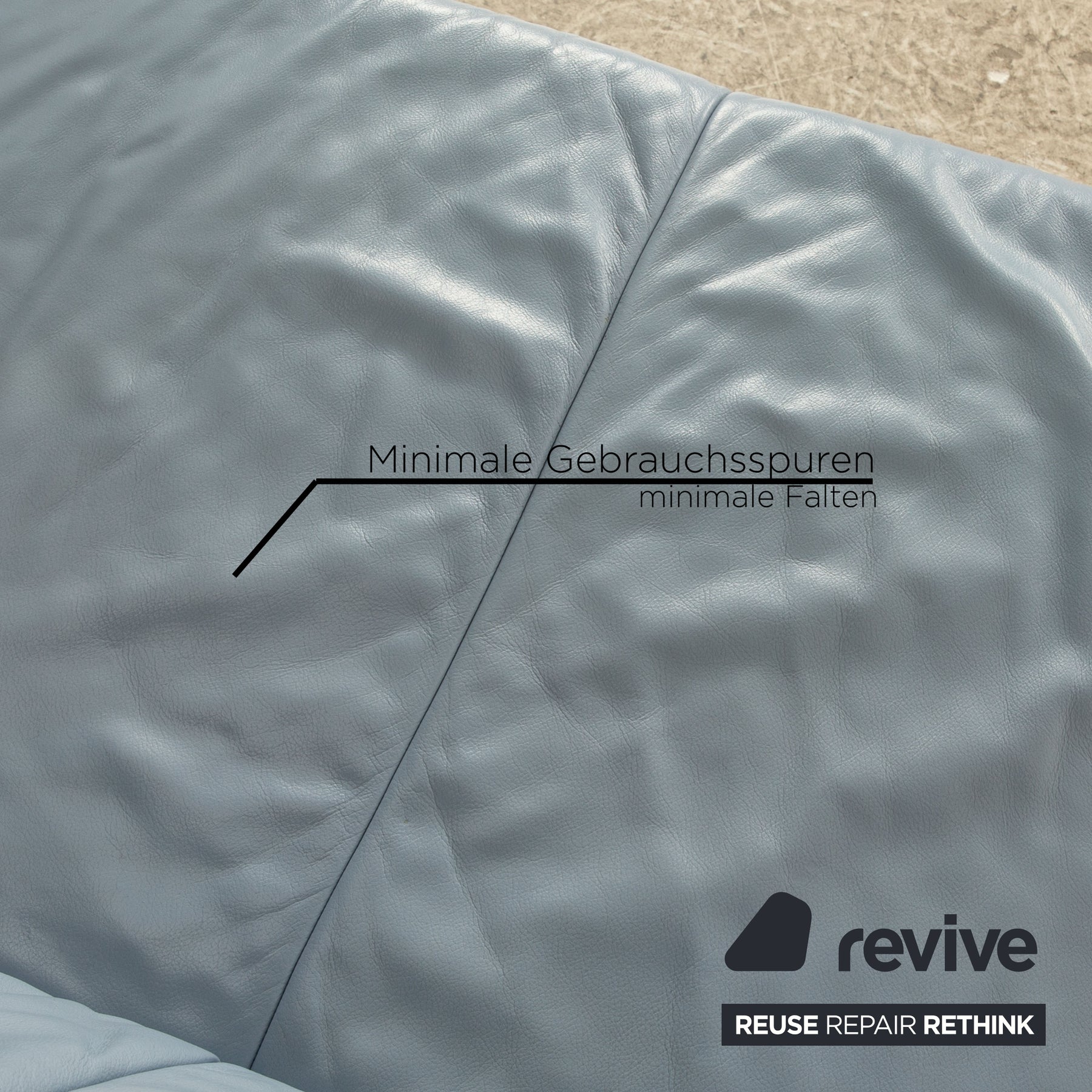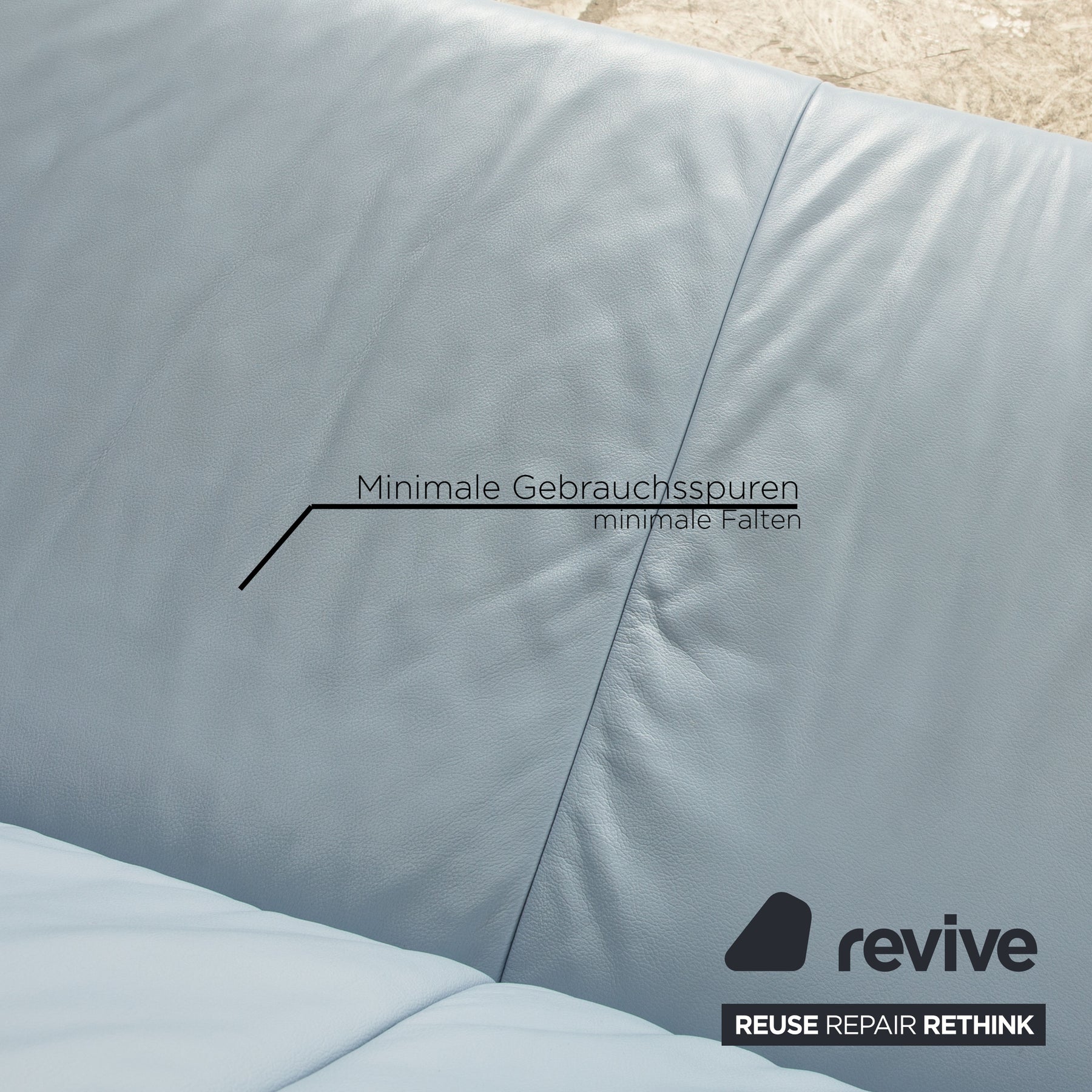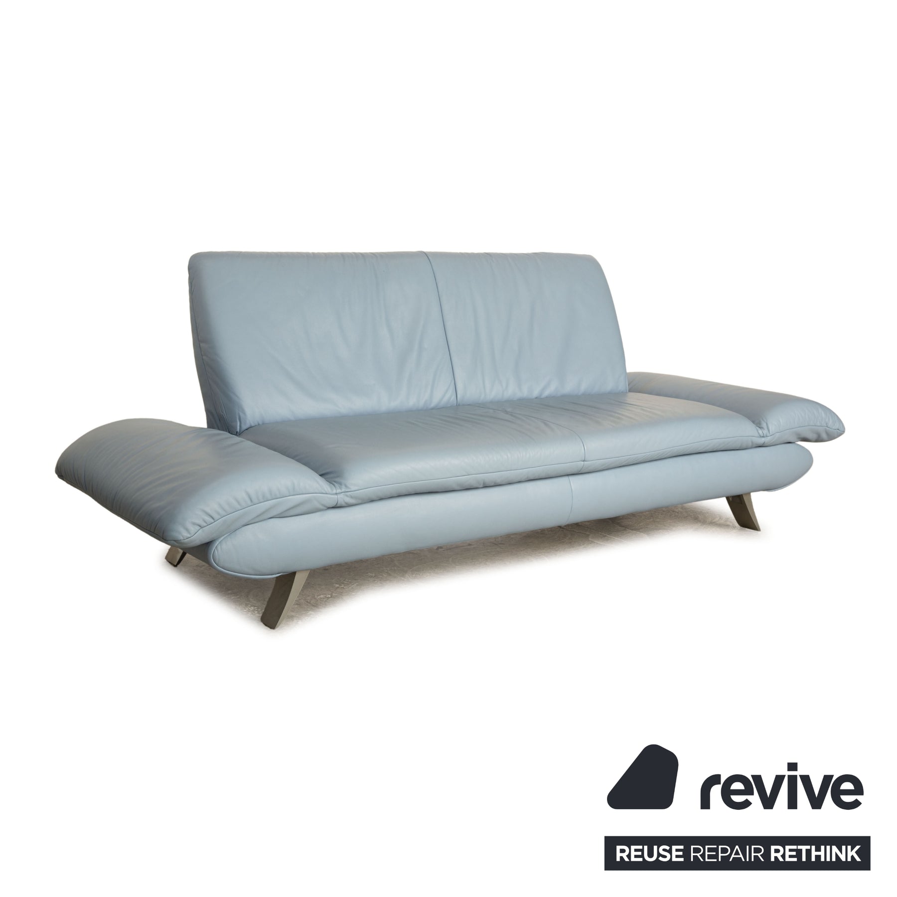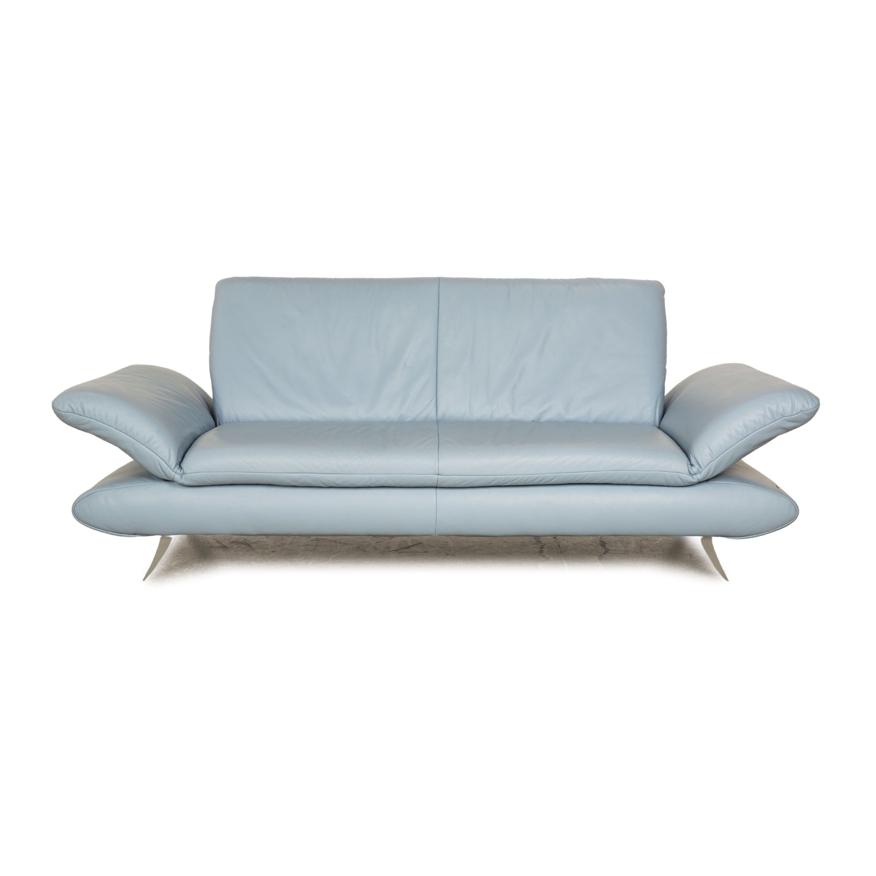 Koinor Rossini Leather Two Seater Light Blue Blue Manual Function Sofa Couch