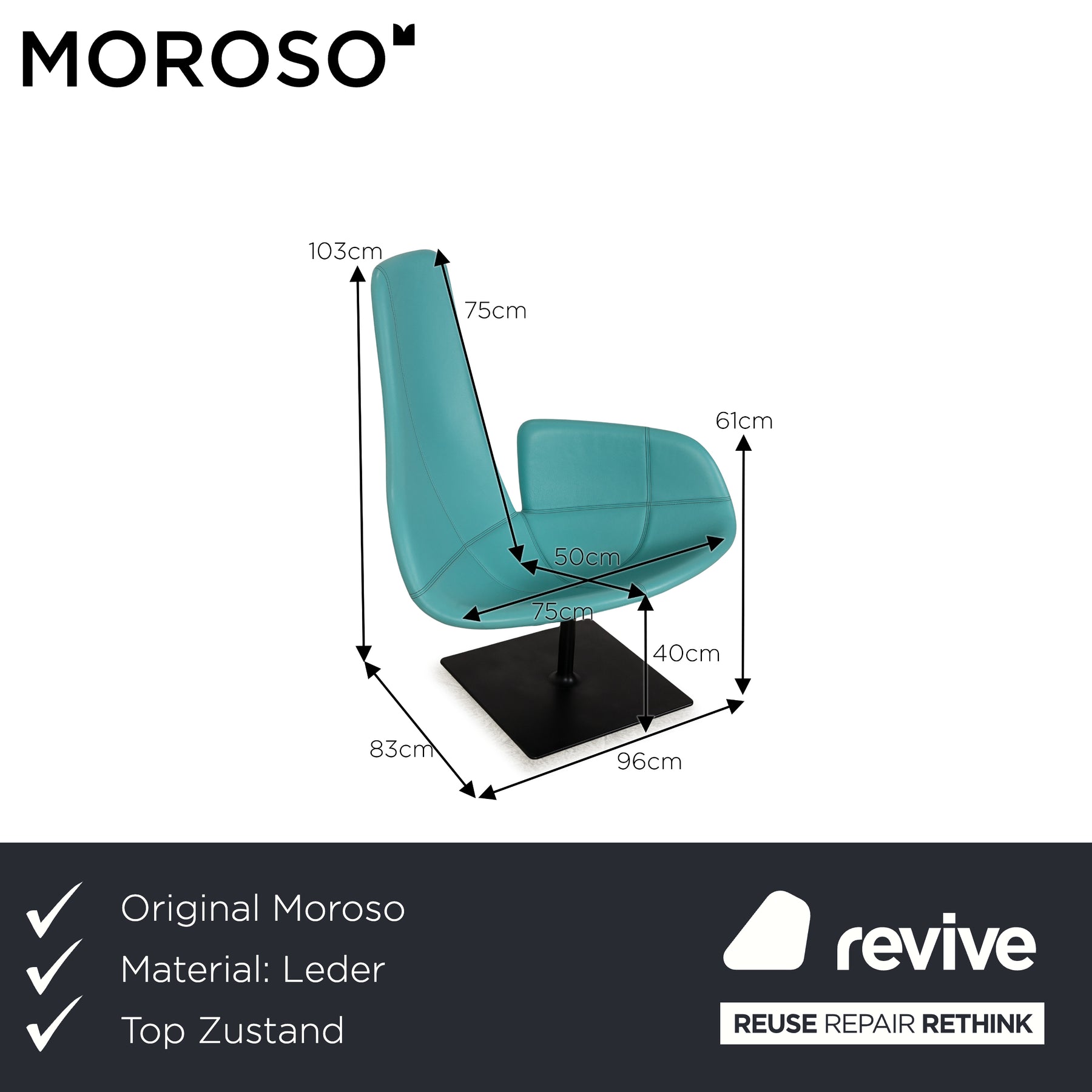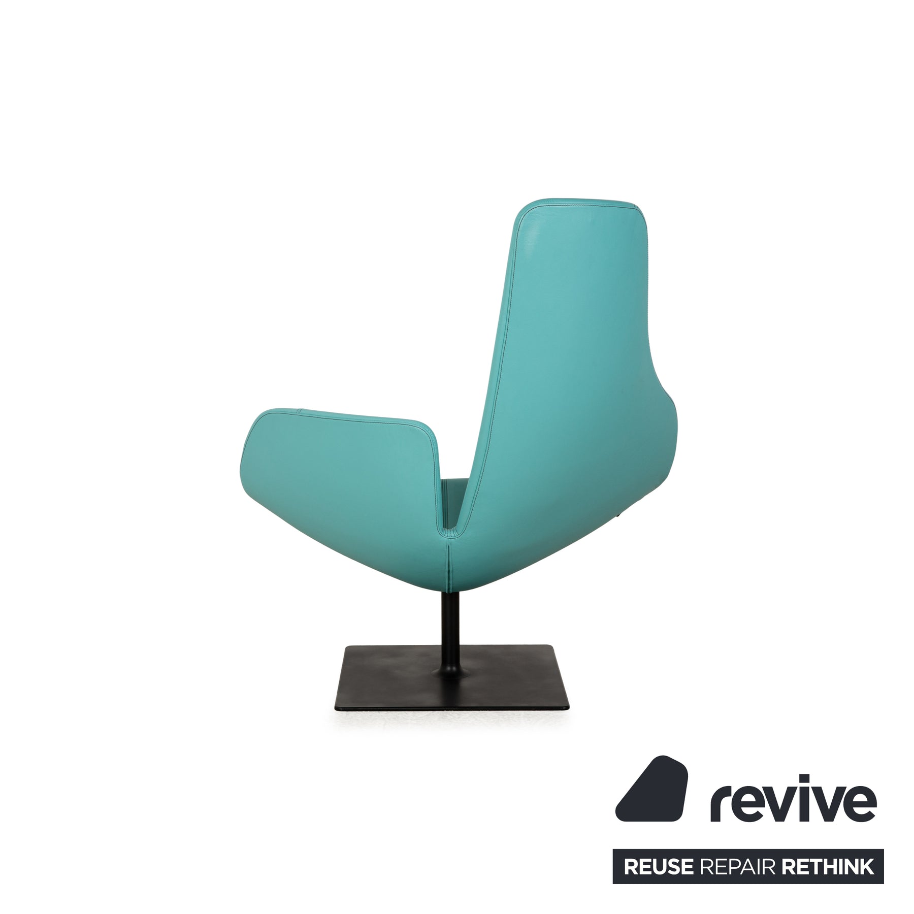 Moroso Fjord Leather Armchair Turquoise Blue Swivel Function