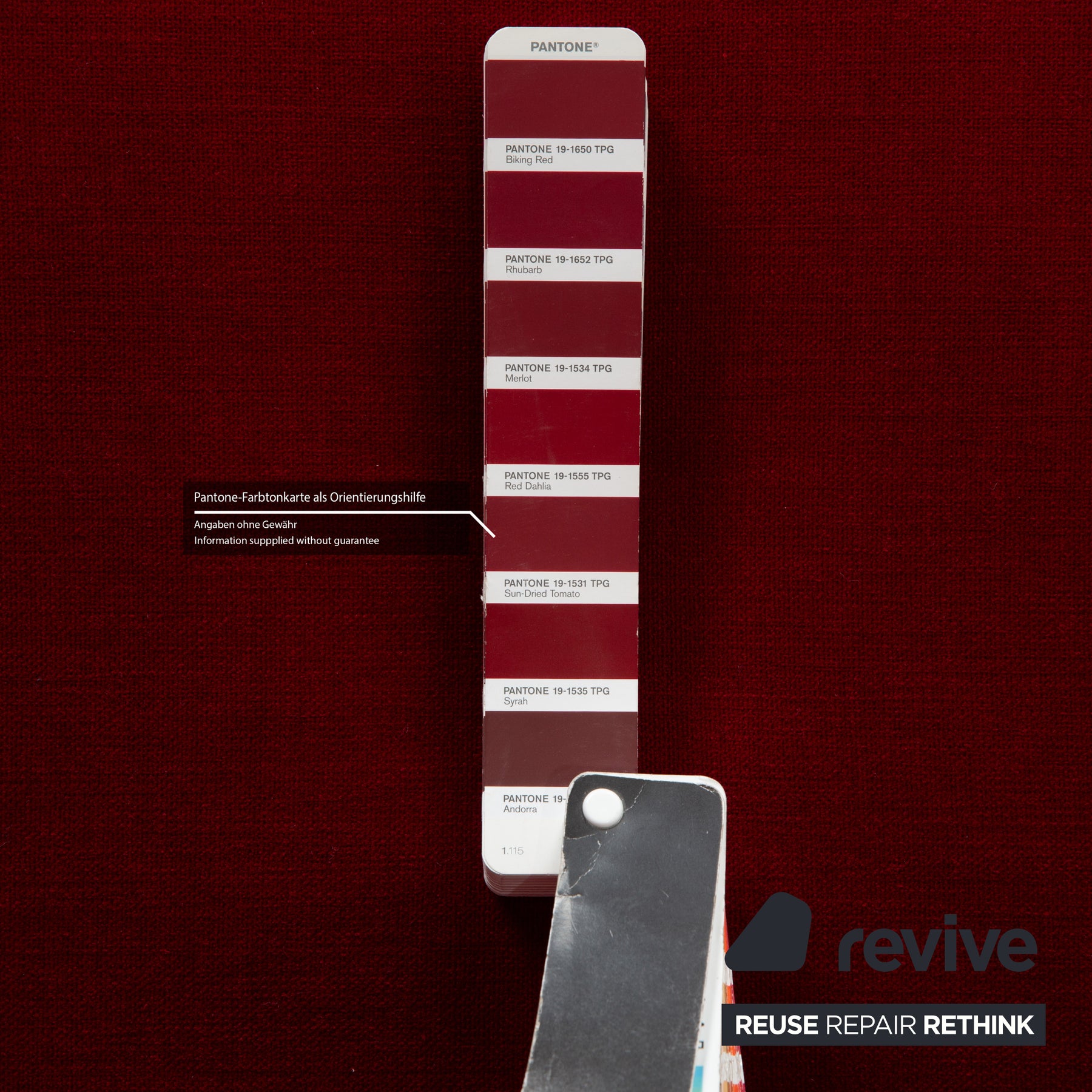 The Multy sofa from Ligne Roset has been reupholstered in a dark red fabric and sits on a silver metal frame. Its minimalist design and comfortable sleeping function characterize this three-seater, which can be converted into a sofa bed in just a few simple steps. This version features practical, laterally adjustable armrests.