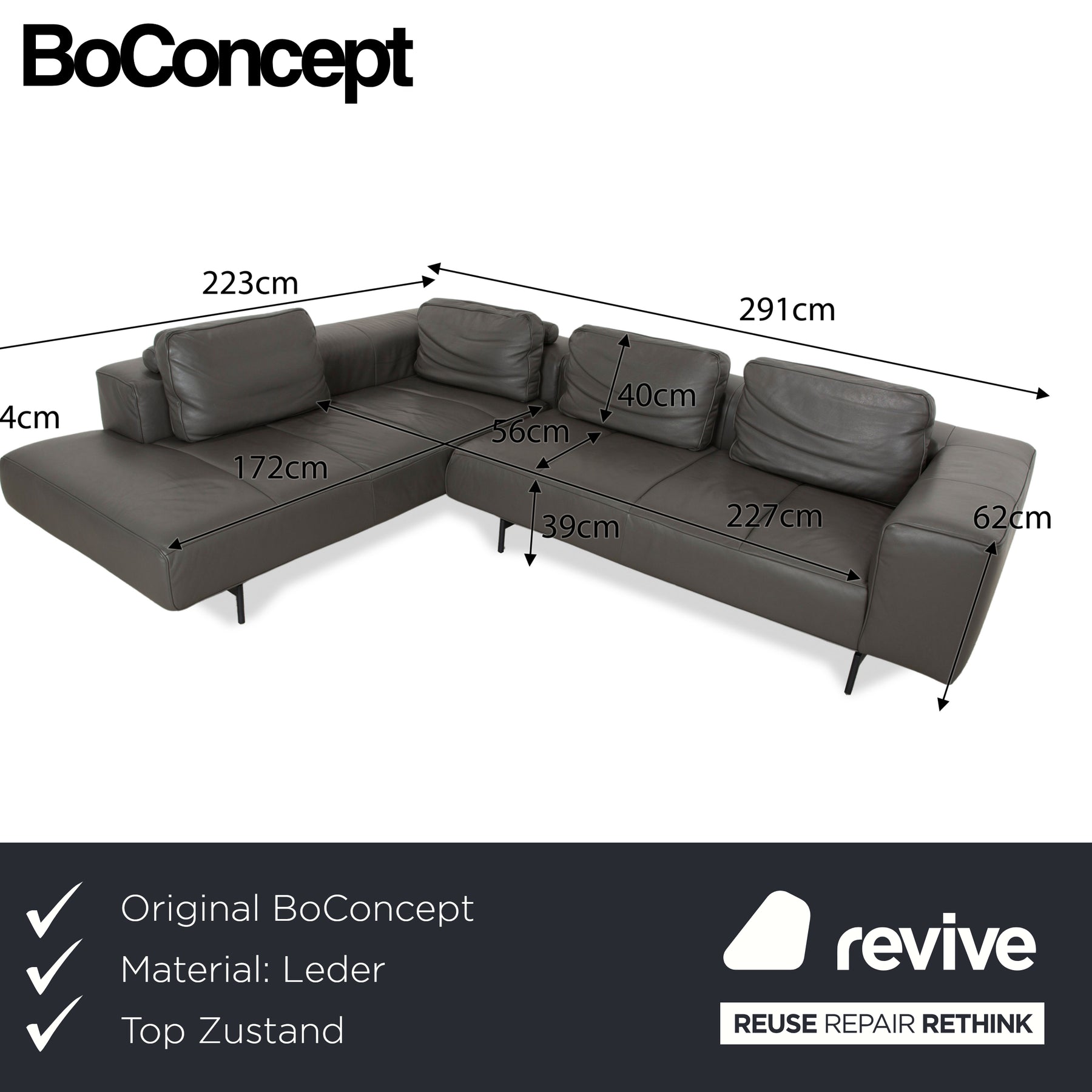 BoConcept Amsterdam Leather Corner Sofa Dark Grey Sofa Couch