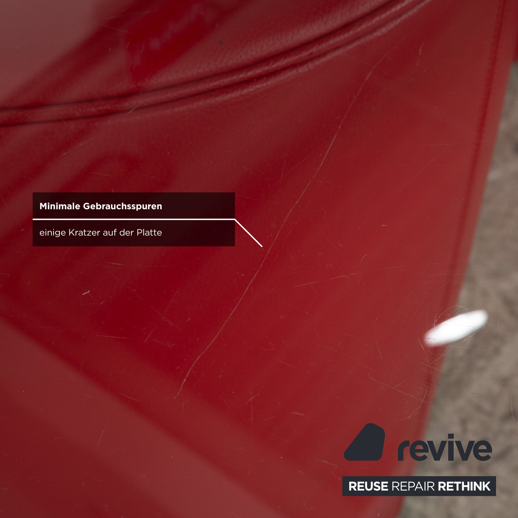 The Bretz dining table is a unique piece, featuring a red, curved base and a sturdy glass top. It offers ample space, perfect for a relaxed meal with loved ones.