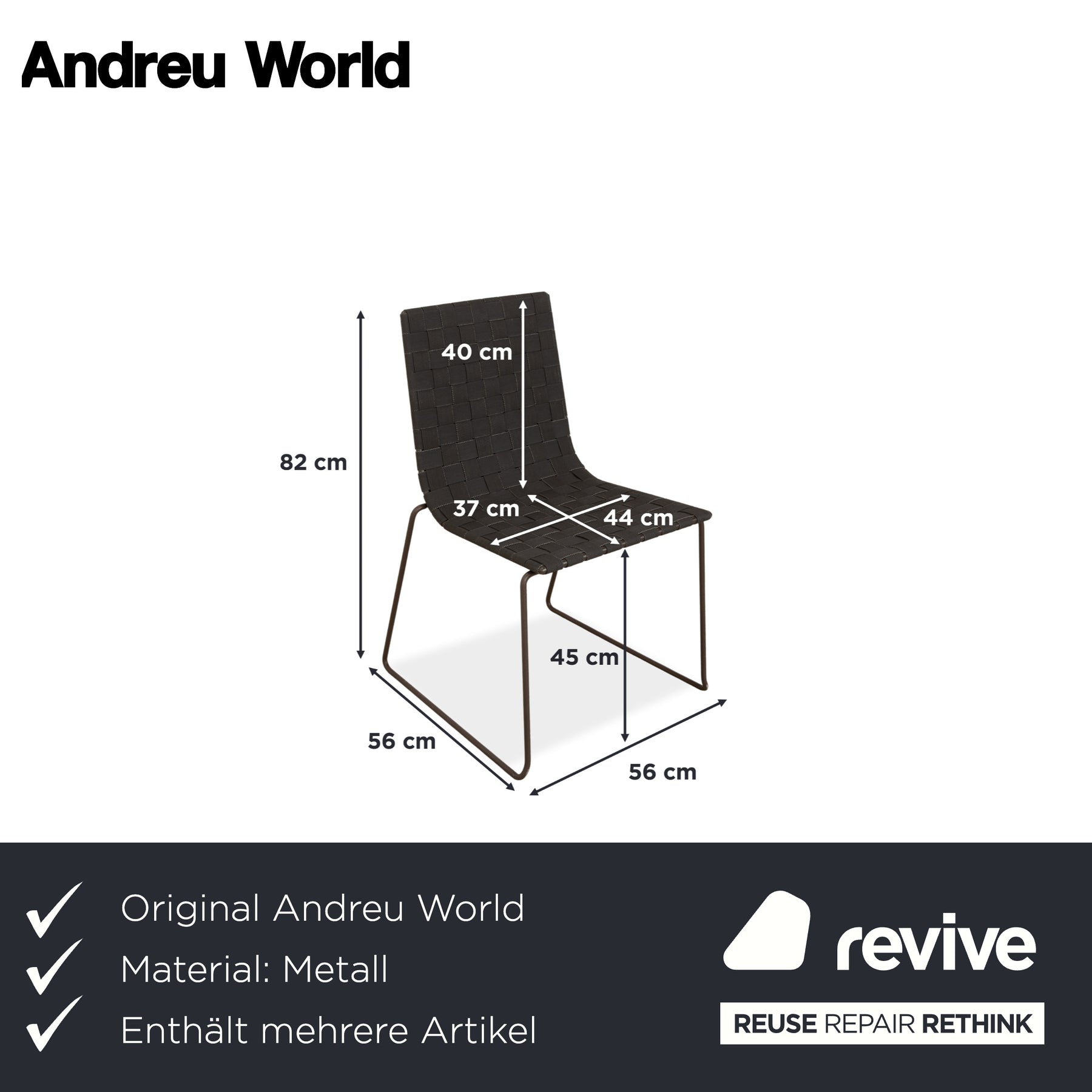 Andreu World Trenza Metal Chair Stool Dark Grey Anthracite Brown Wicker