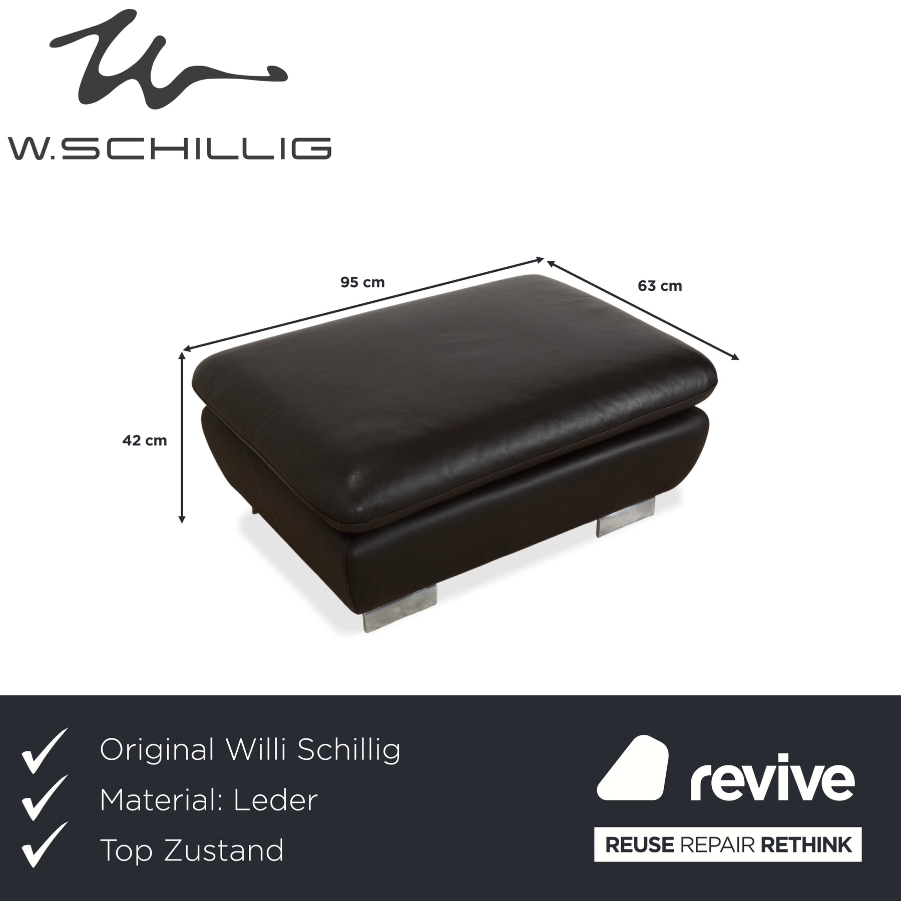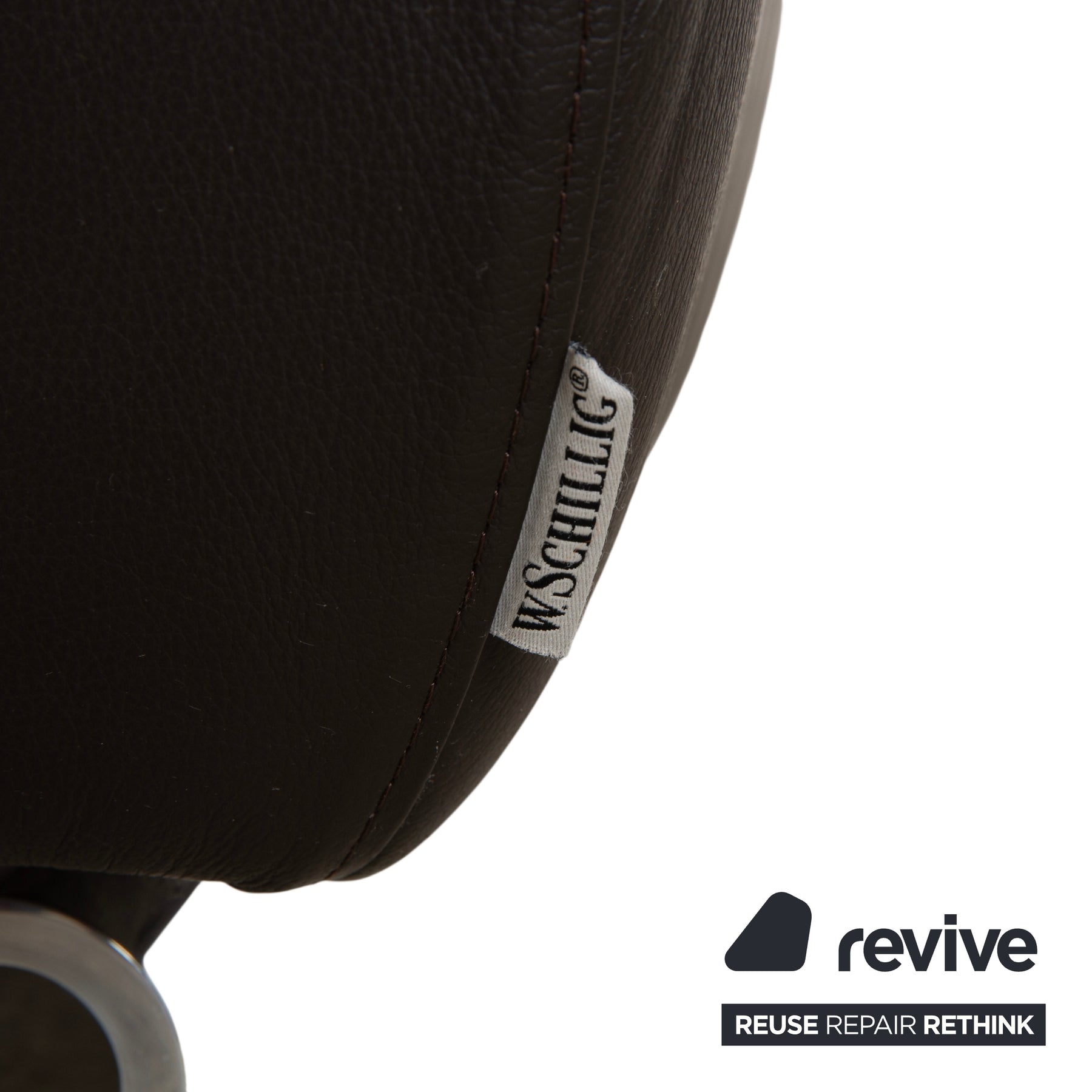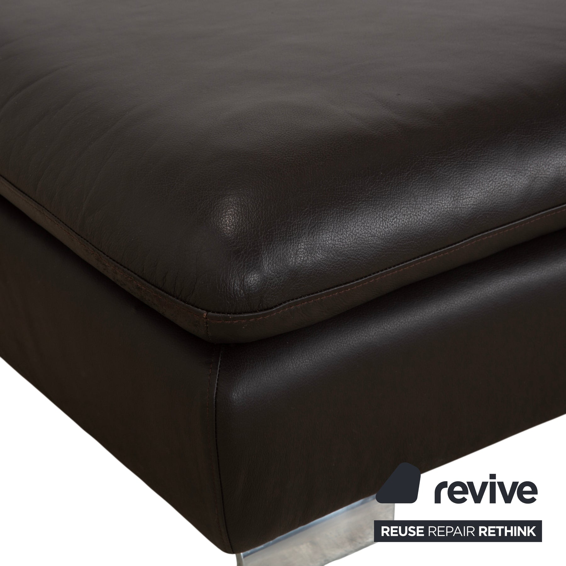 The upholstery is made of supple leather in a deep, warm dark brown that looks very elegant. The construction of the padding is particularly inviting: the seat is designed as a sumptuous, soft cushion that appears to rest on the firm frame. This not only creates a stunning look but also provides noticeable comfort when you put your feet up.