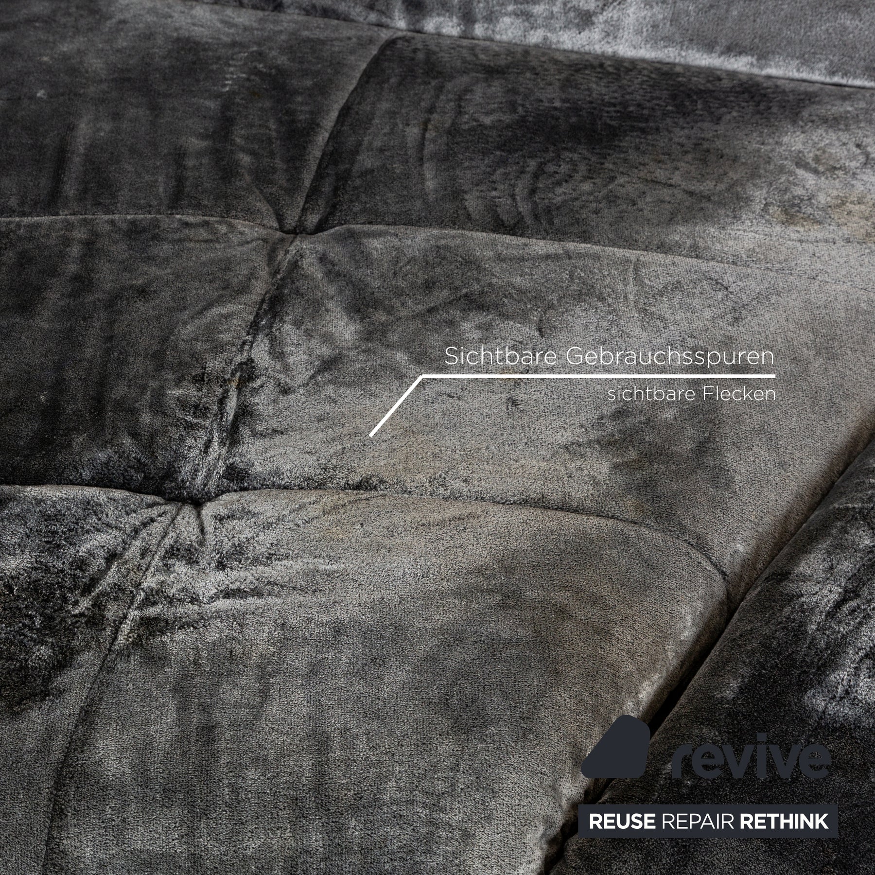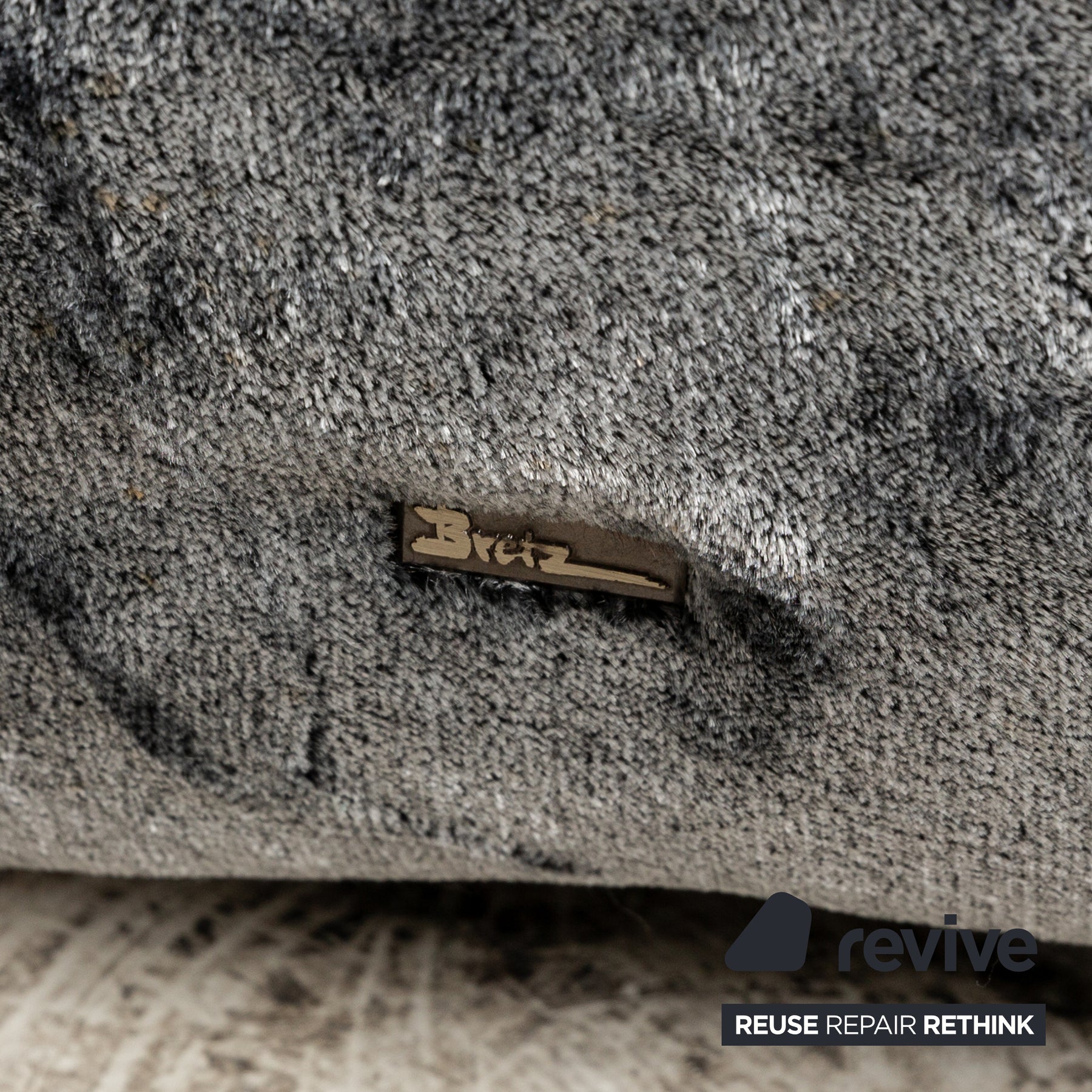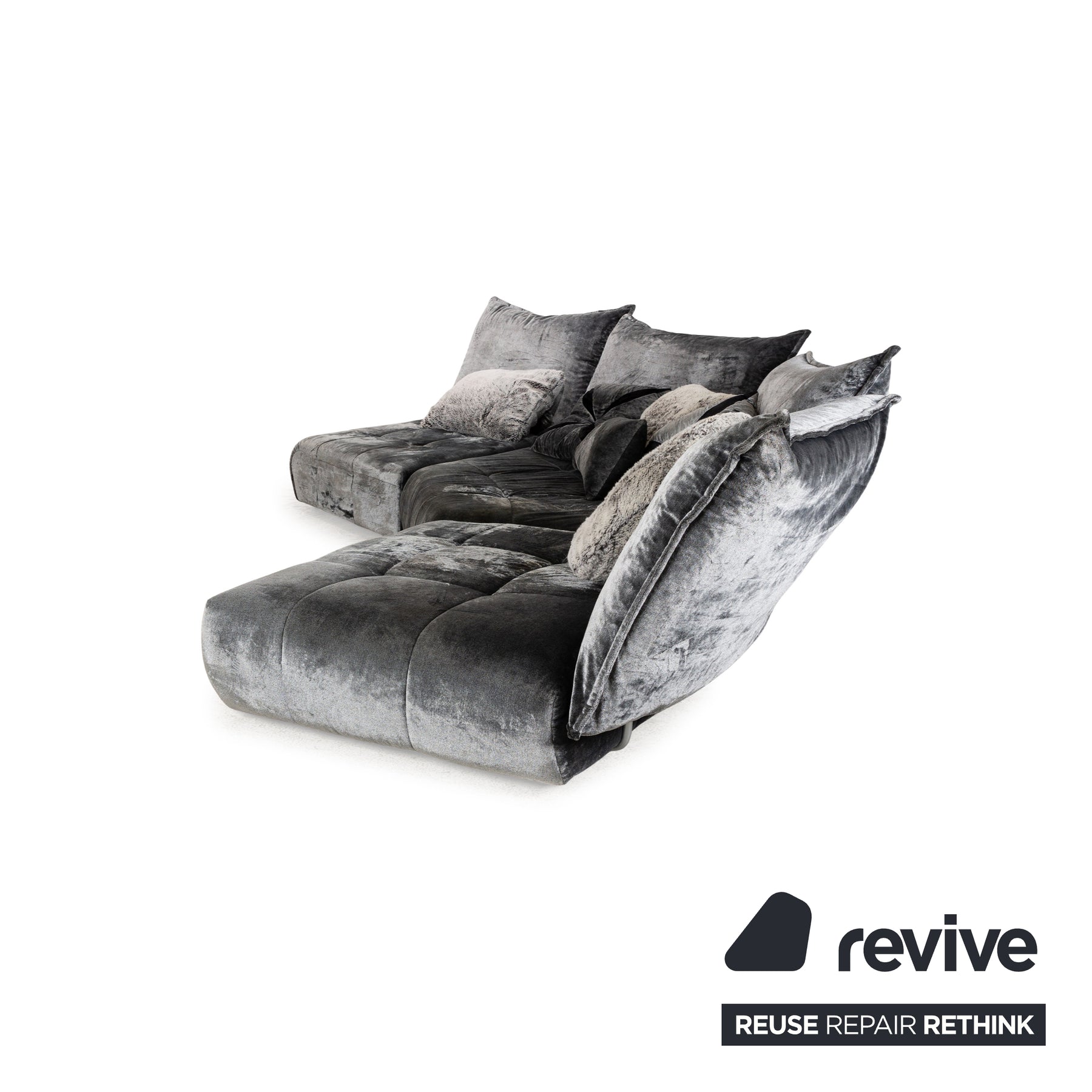 The Matilda corner sofa from Bretz is covered with grey fabric and stands on inconspicuous feet. It is characterized by its extravagant appearance and stylish design.