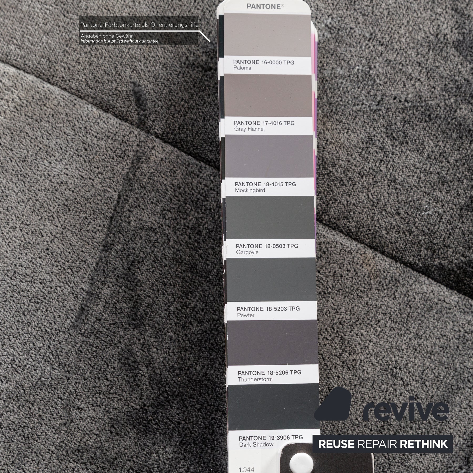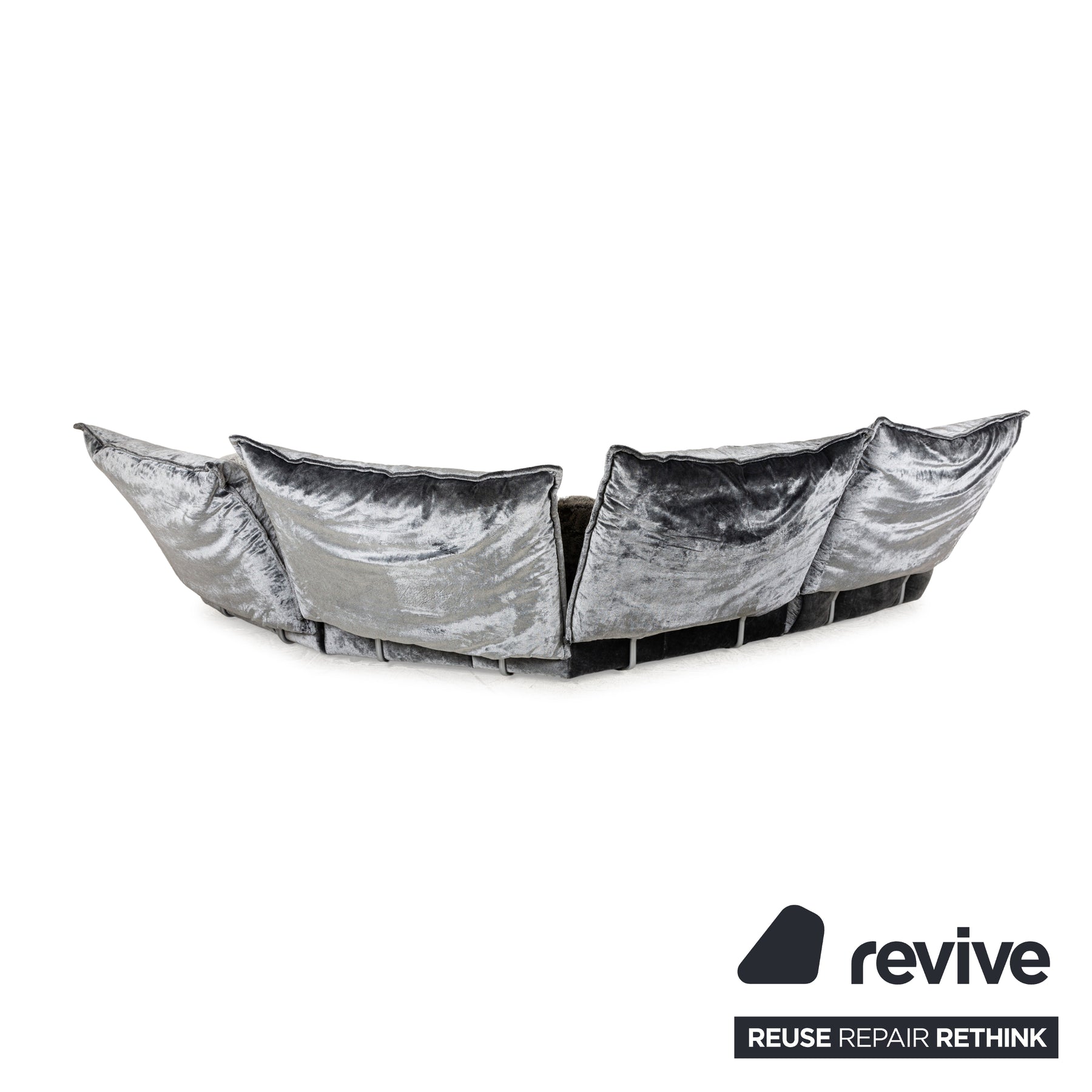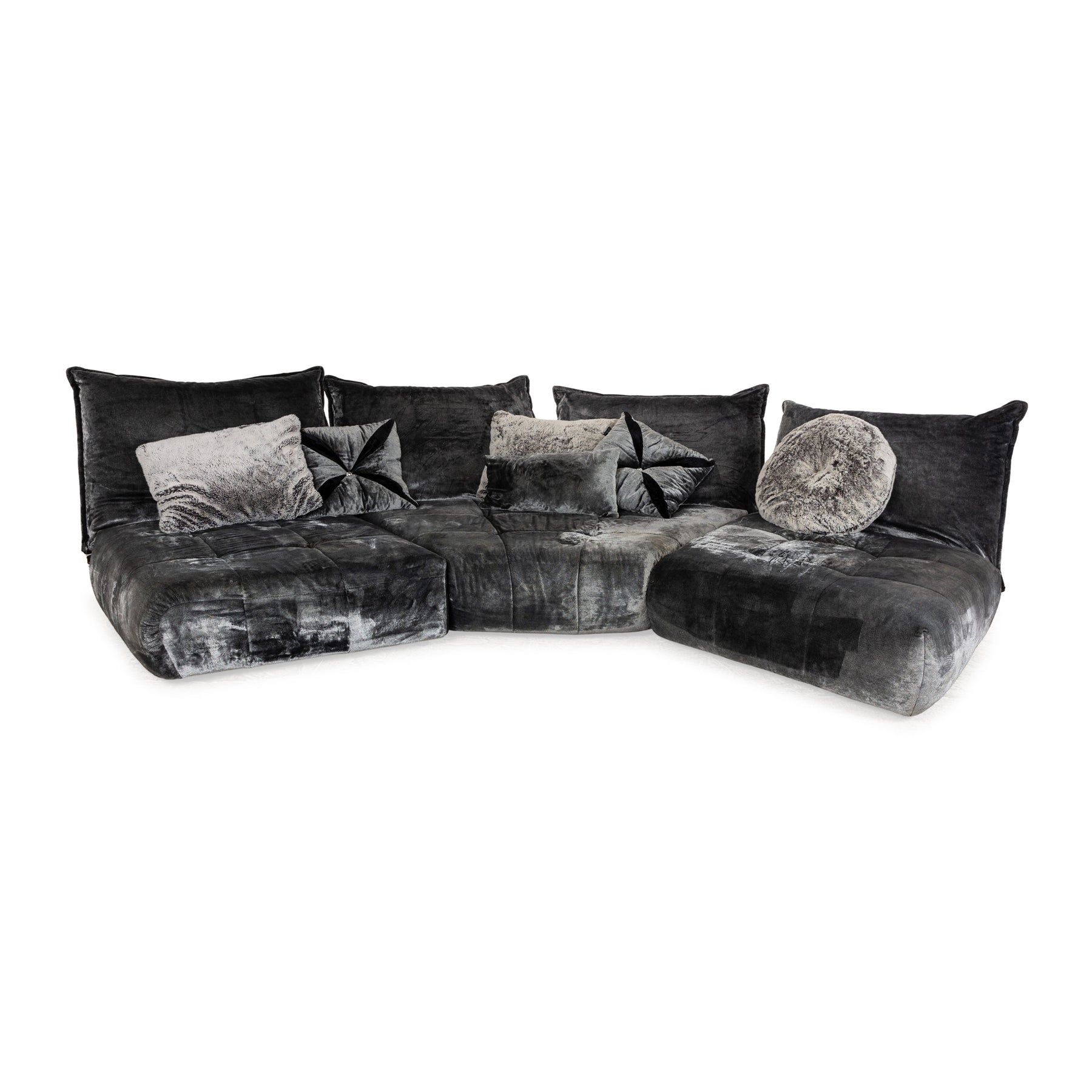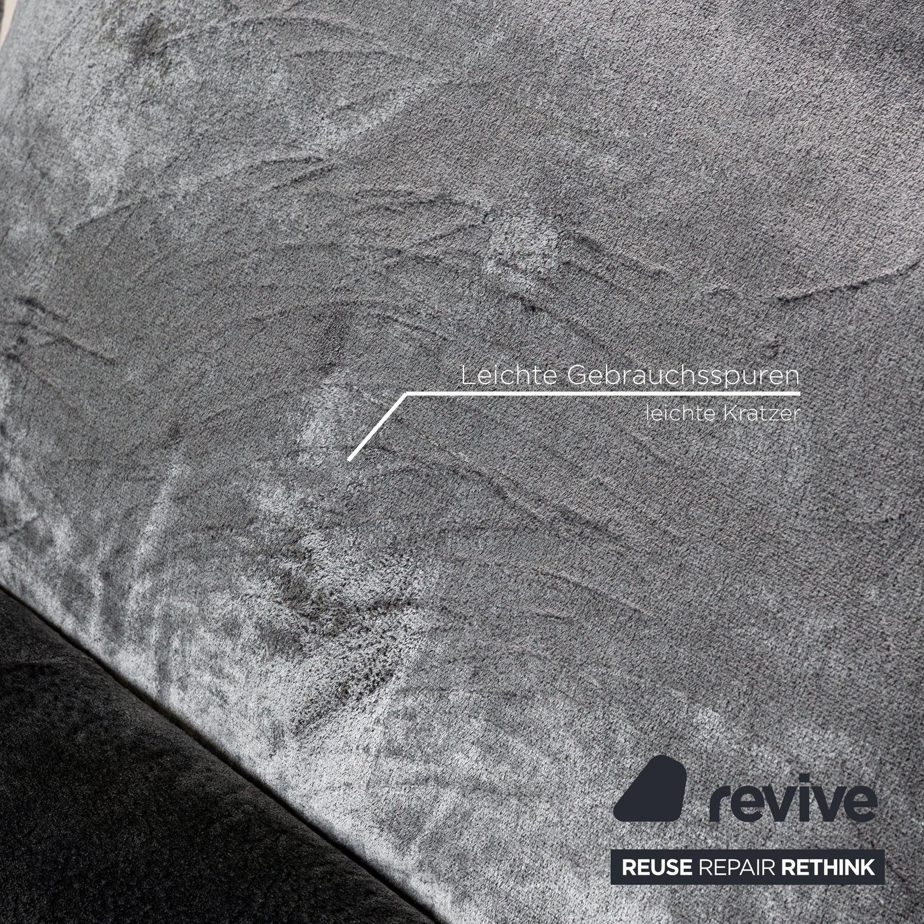 The Matilda corner sofa from Bretz is covered with grey fabric and stands on inconspicuous feet. It is characterized by its extravagant appearance and stylish design.