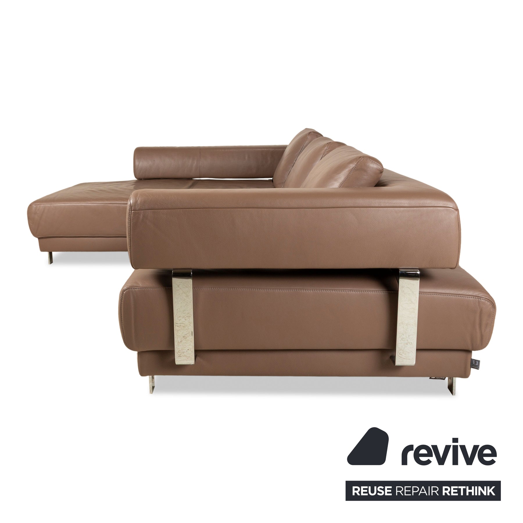 Ewald Schillig Brand Face Leather Corner Sofa Brown Cappuccino Coffee Récamière left