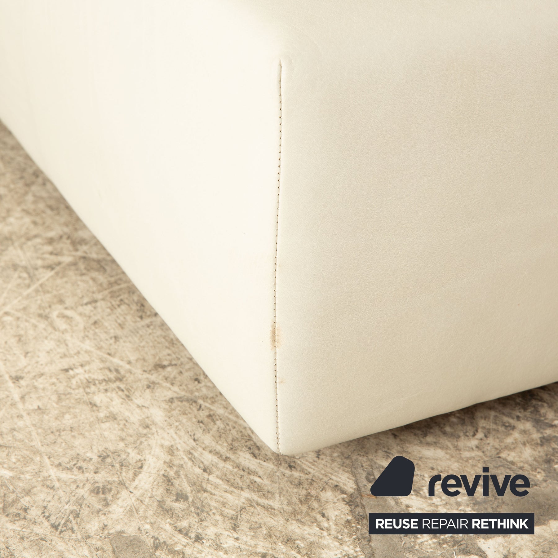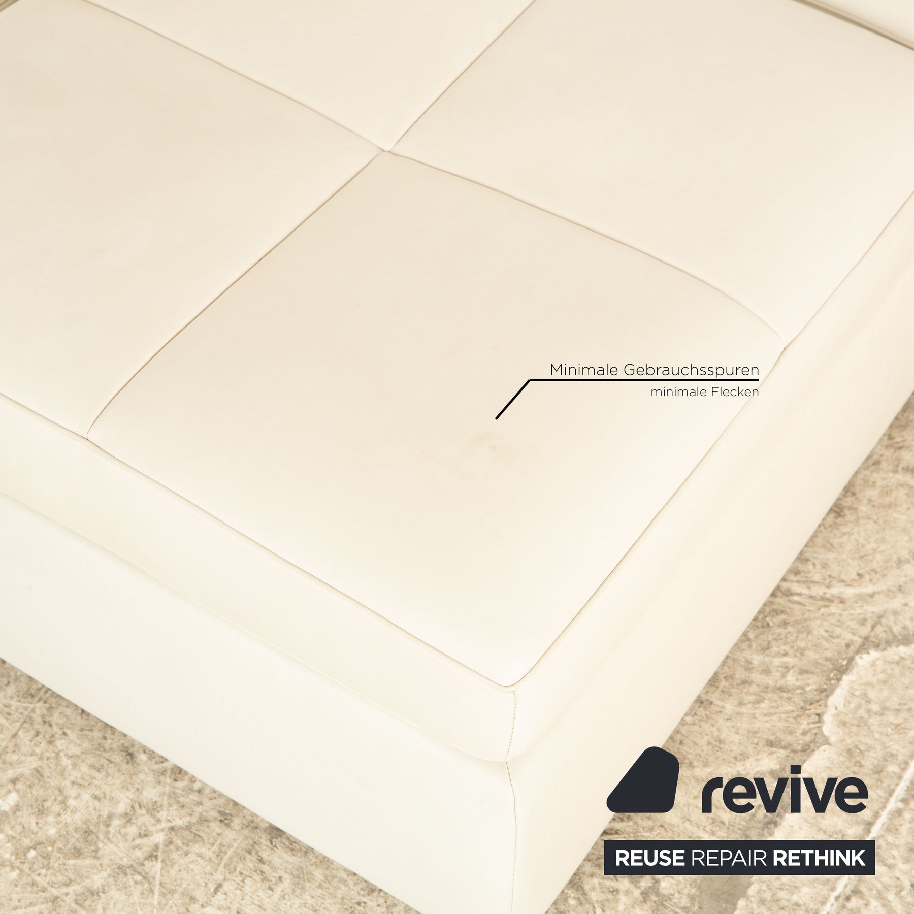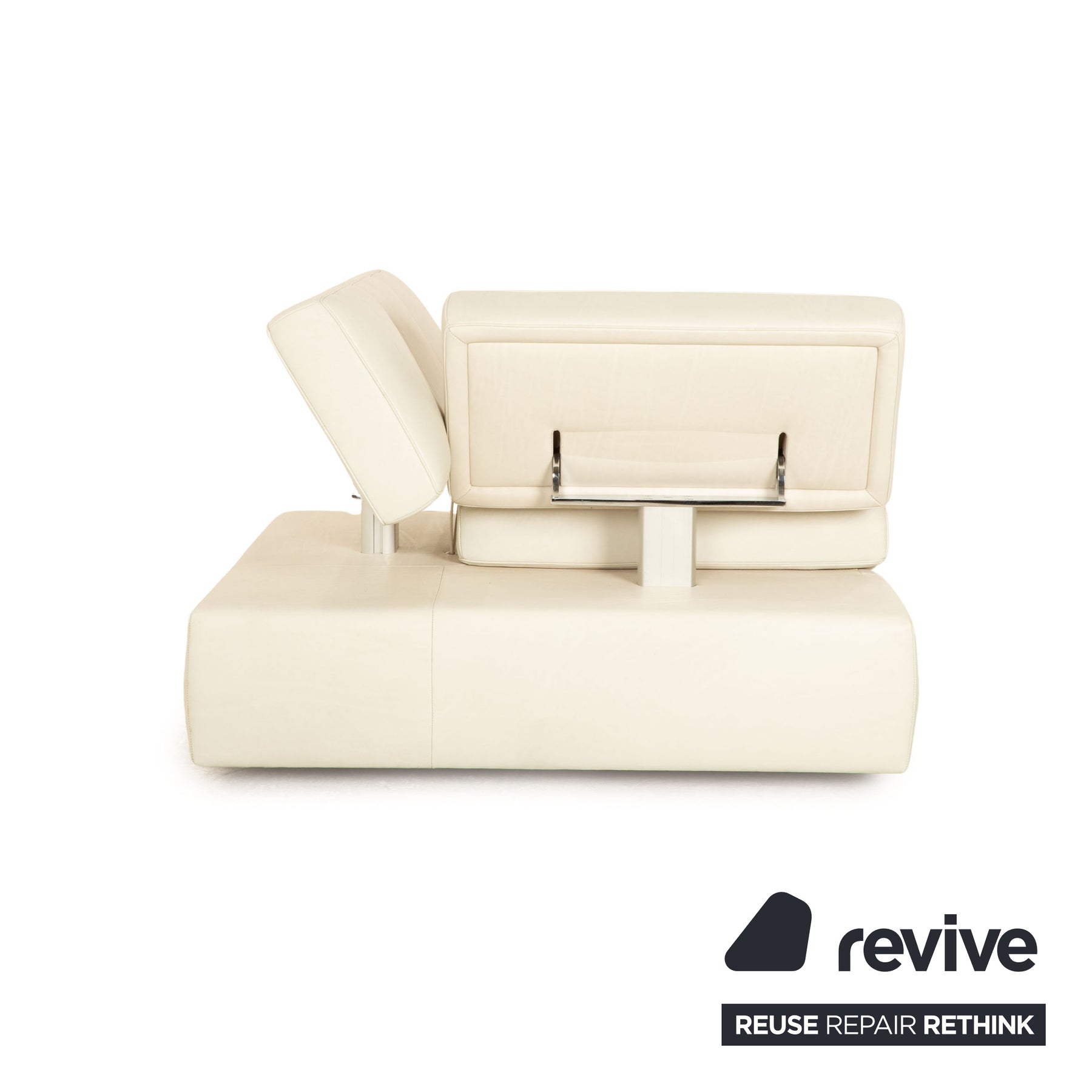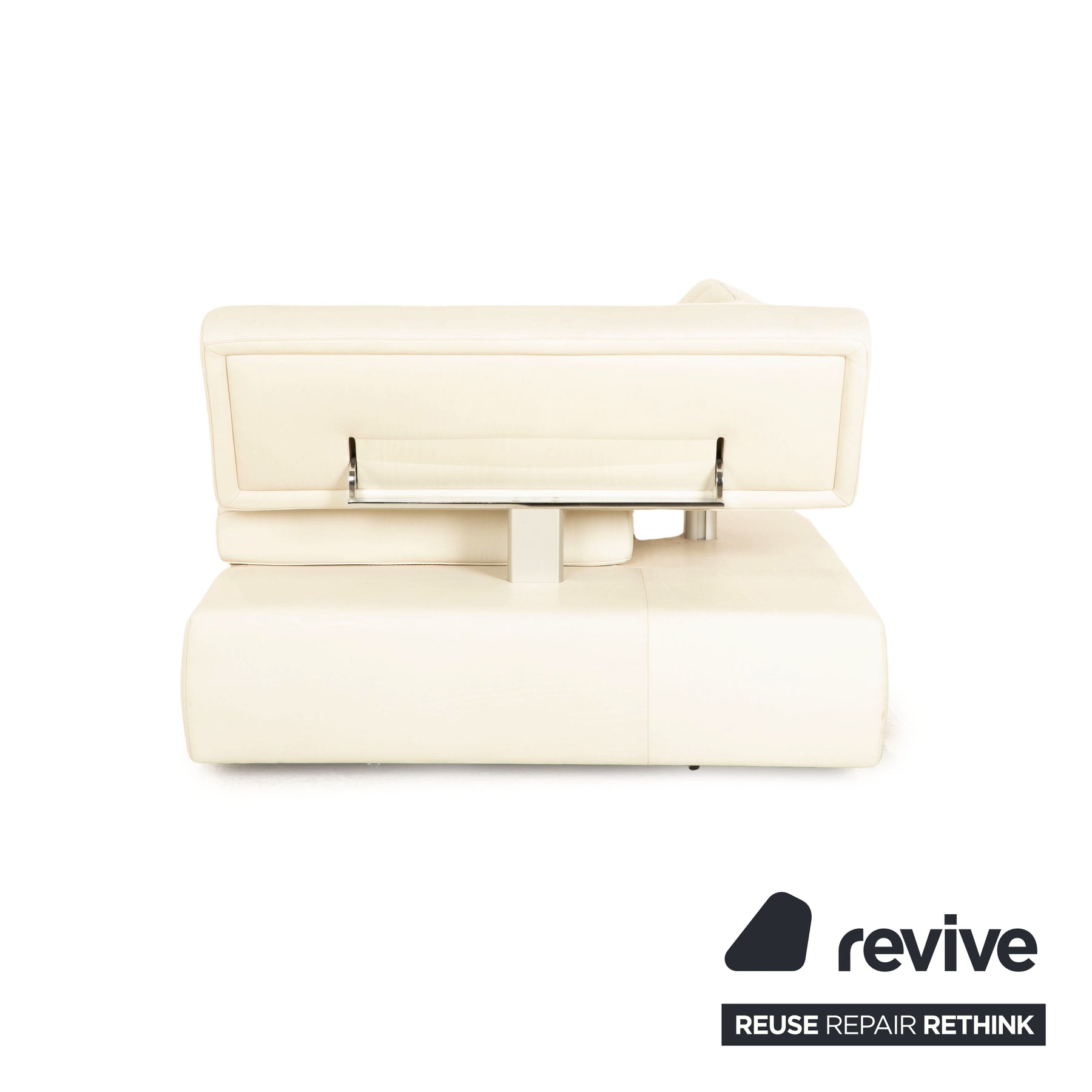The Square Up armchair from FSM is covered in white genuine leather and is floor-length. Its modern design and practical adjustment options set it apart.