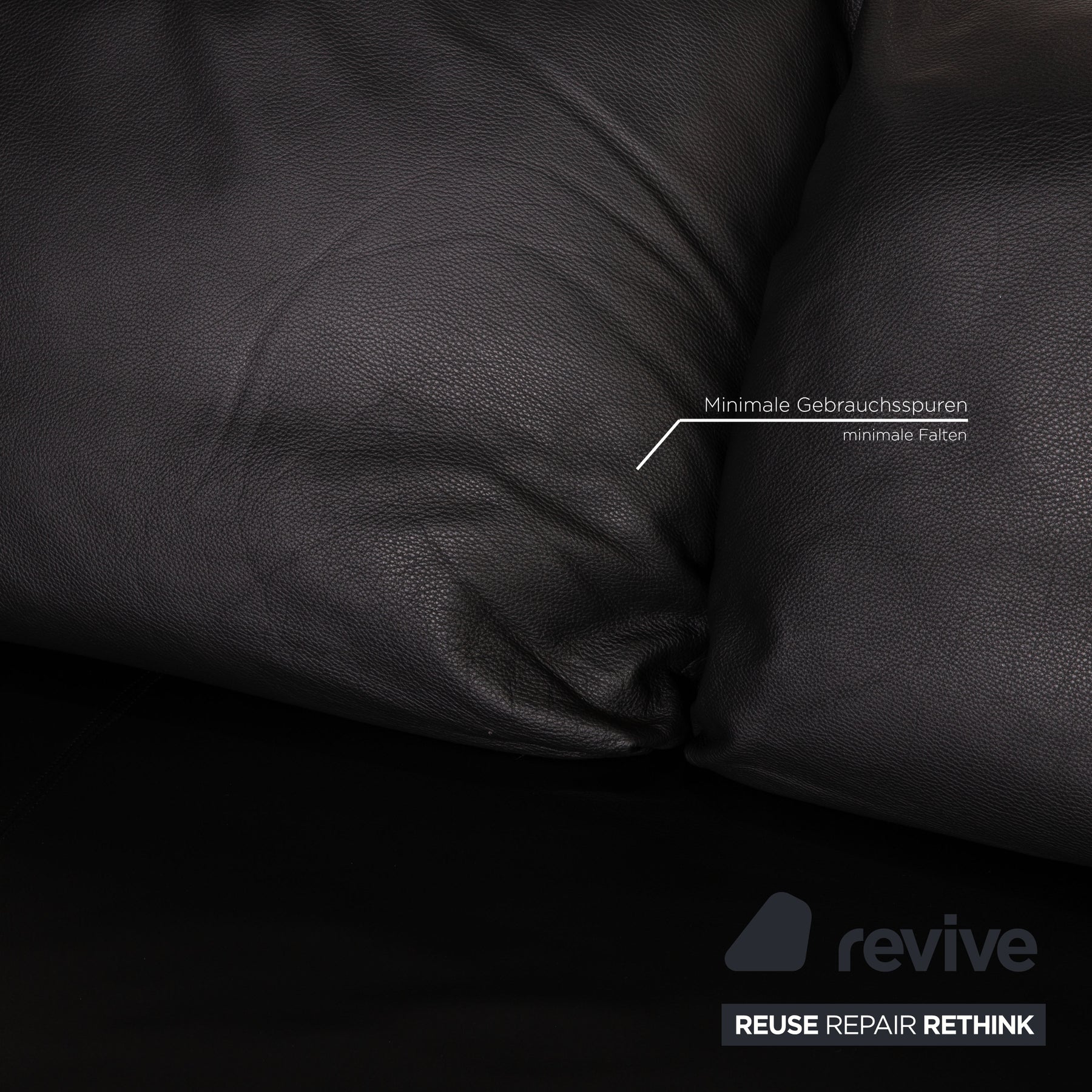 Rolf Benz 1600 leather sofa black three-seater couch function