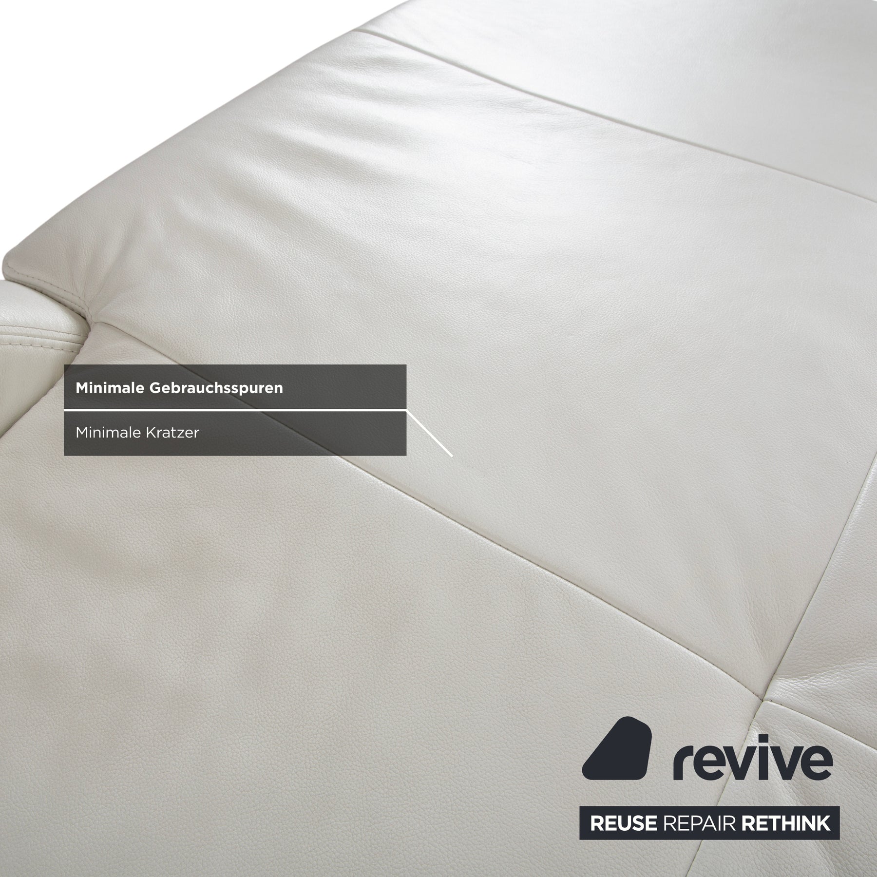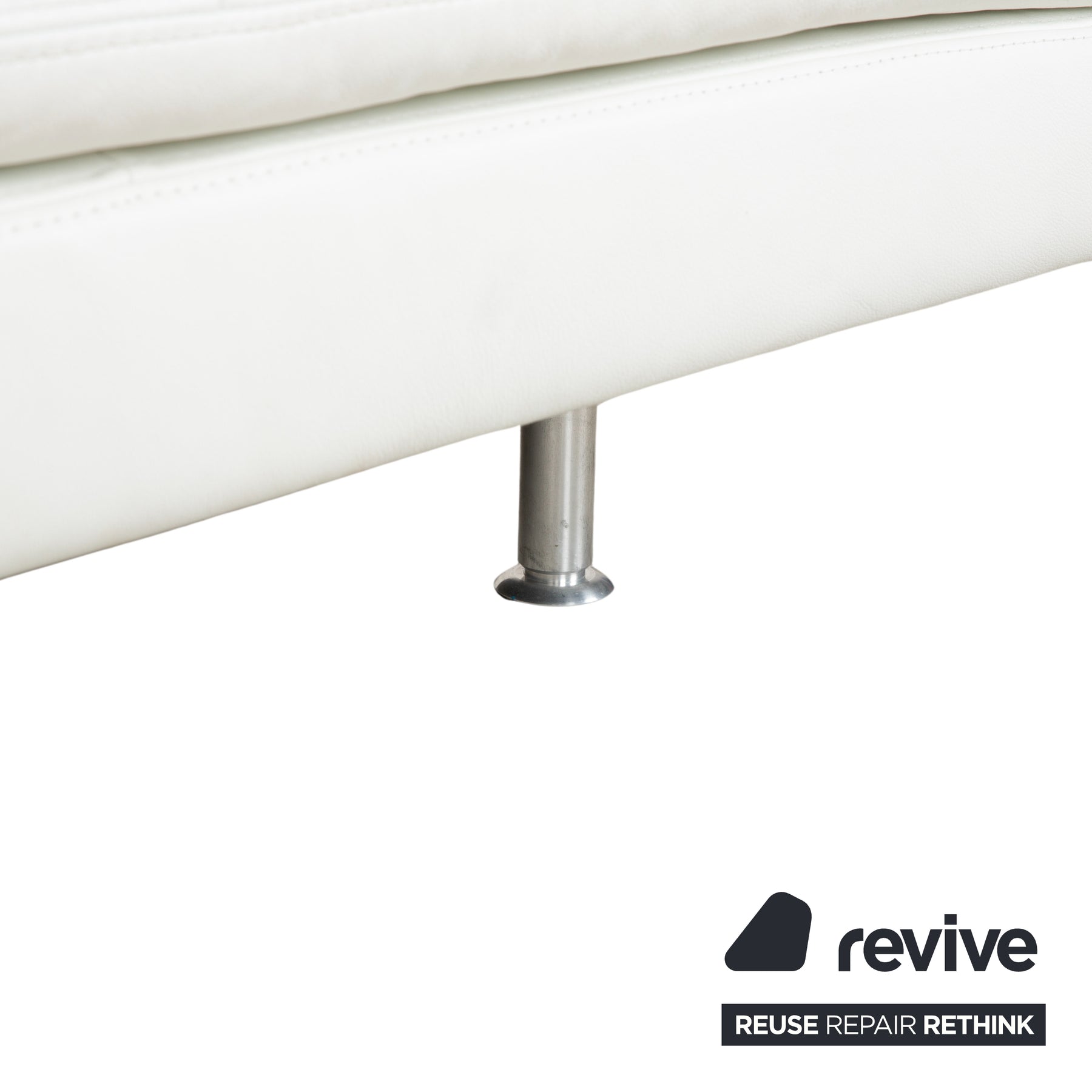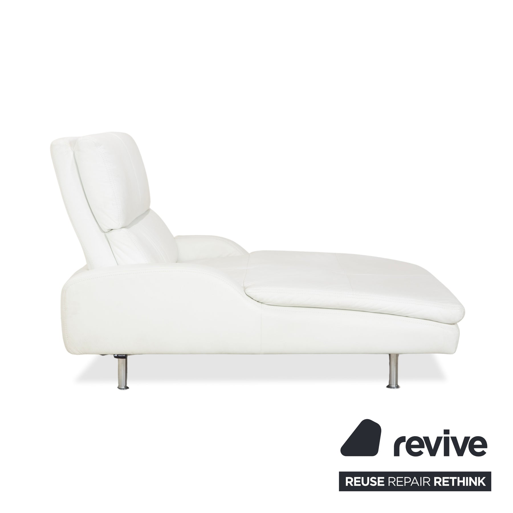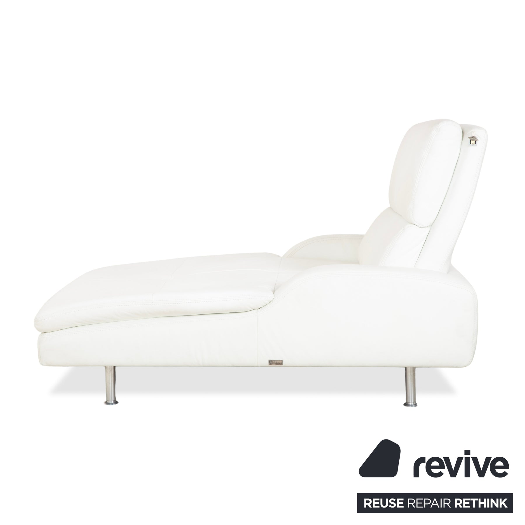 The creamy white leather looks very fresh and brightens the room visually without appearing sterile; it has that typical, inviting feel for which Schillig is known. The chaise longue stands on slender metal legs, which gives the rather voluminous upholstery a pleasant lightness and prevents it from appearing too bulky. The side bolsters and backrest are also beautifully soft, so you don't really need any extra cushions to be comfortable. Perfect for closing your eyes for a moment or relaxing with a book.