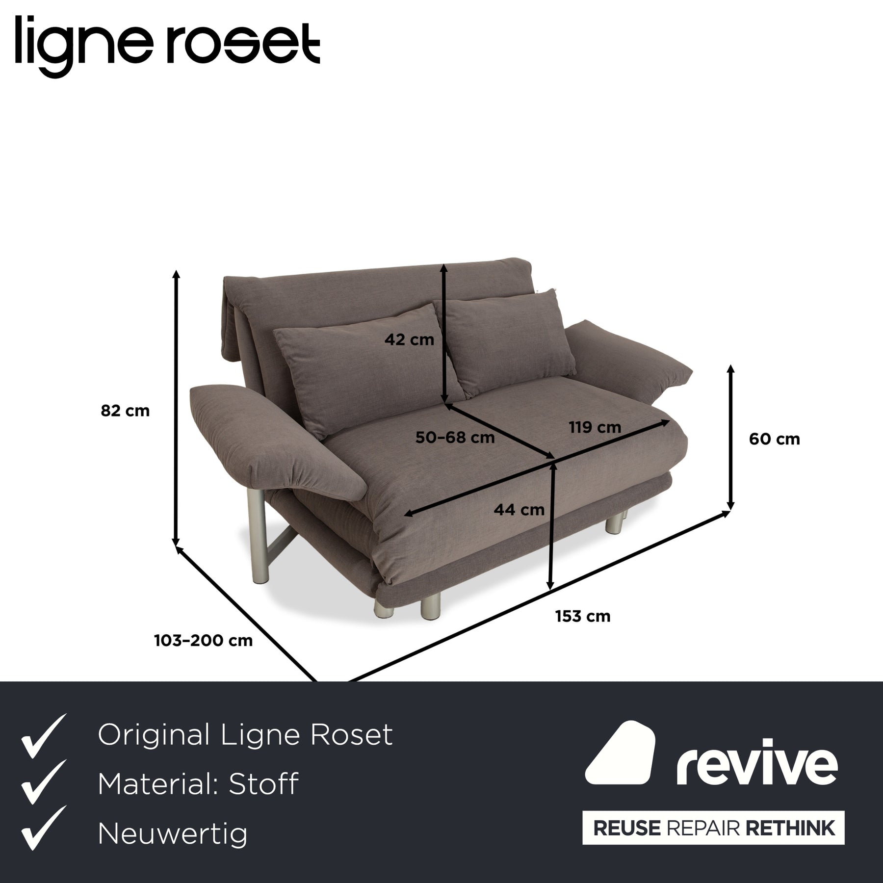 Ligne Roset Multy fabric two-seater grey including armrests manual function sofa bed couch new cover