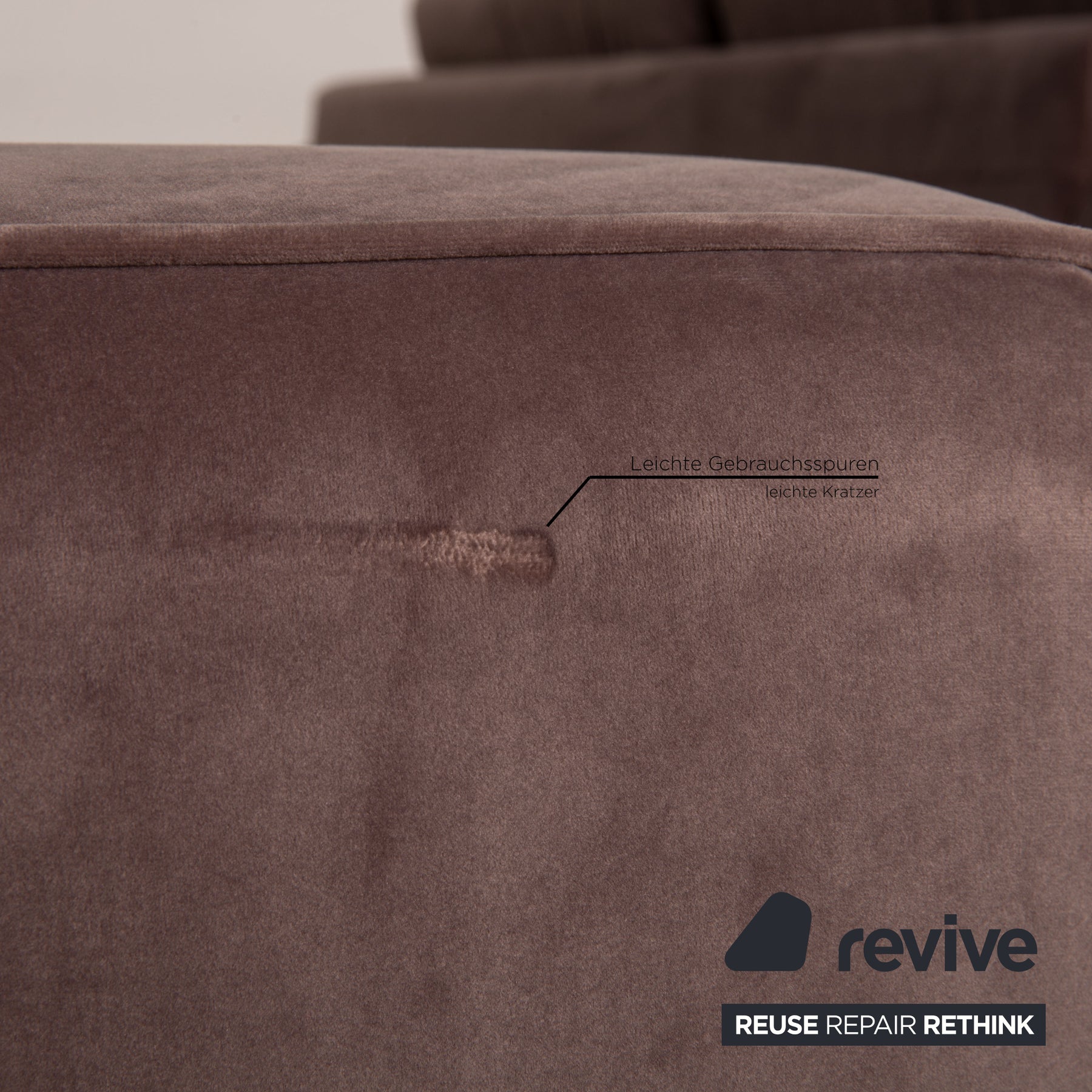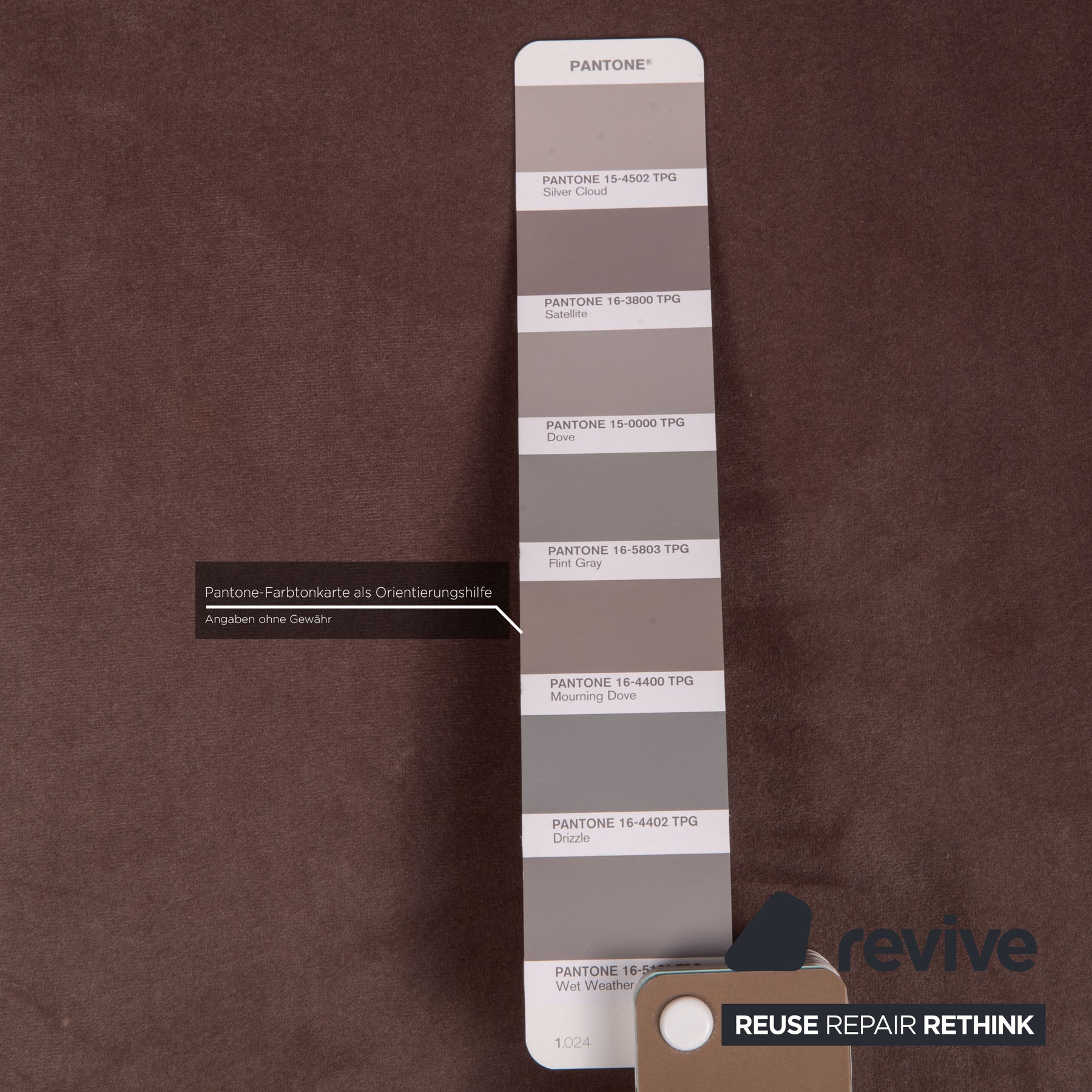 The three-seater Audacia by Natuzzi is upholstered in brown fabric and stands on elegant black feet. It is characterized by the modern, angular design.