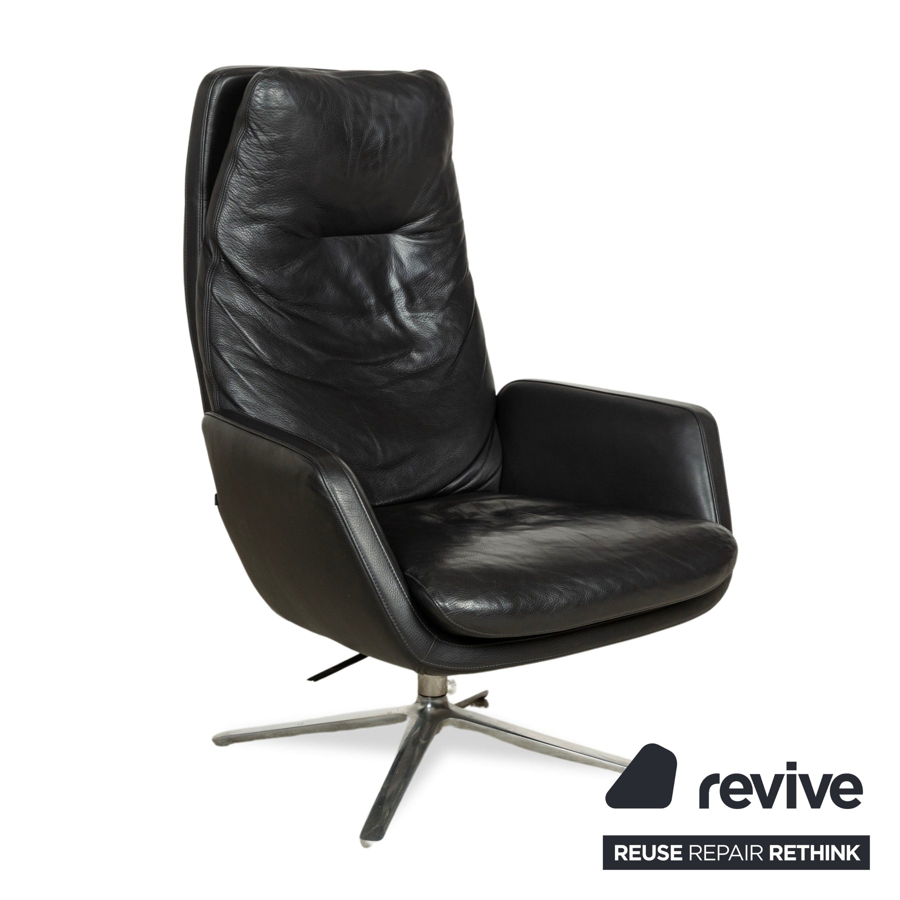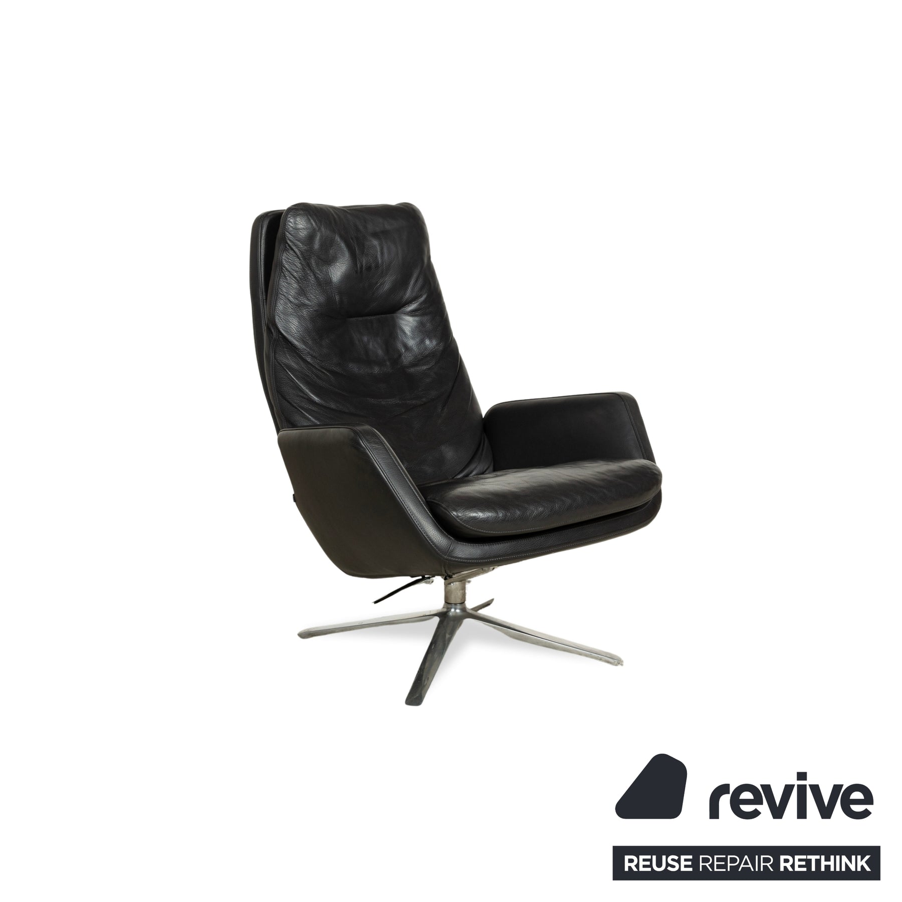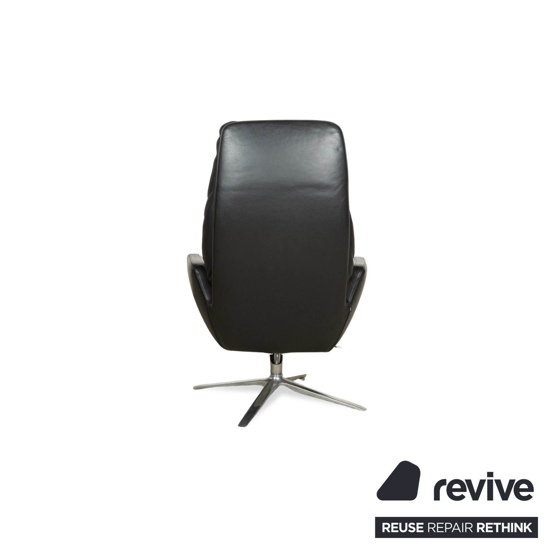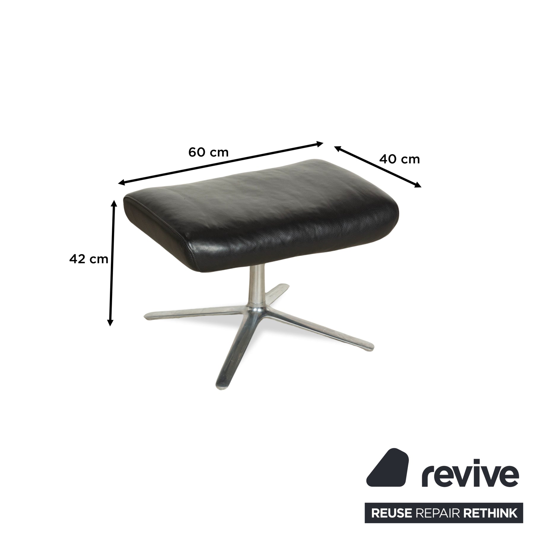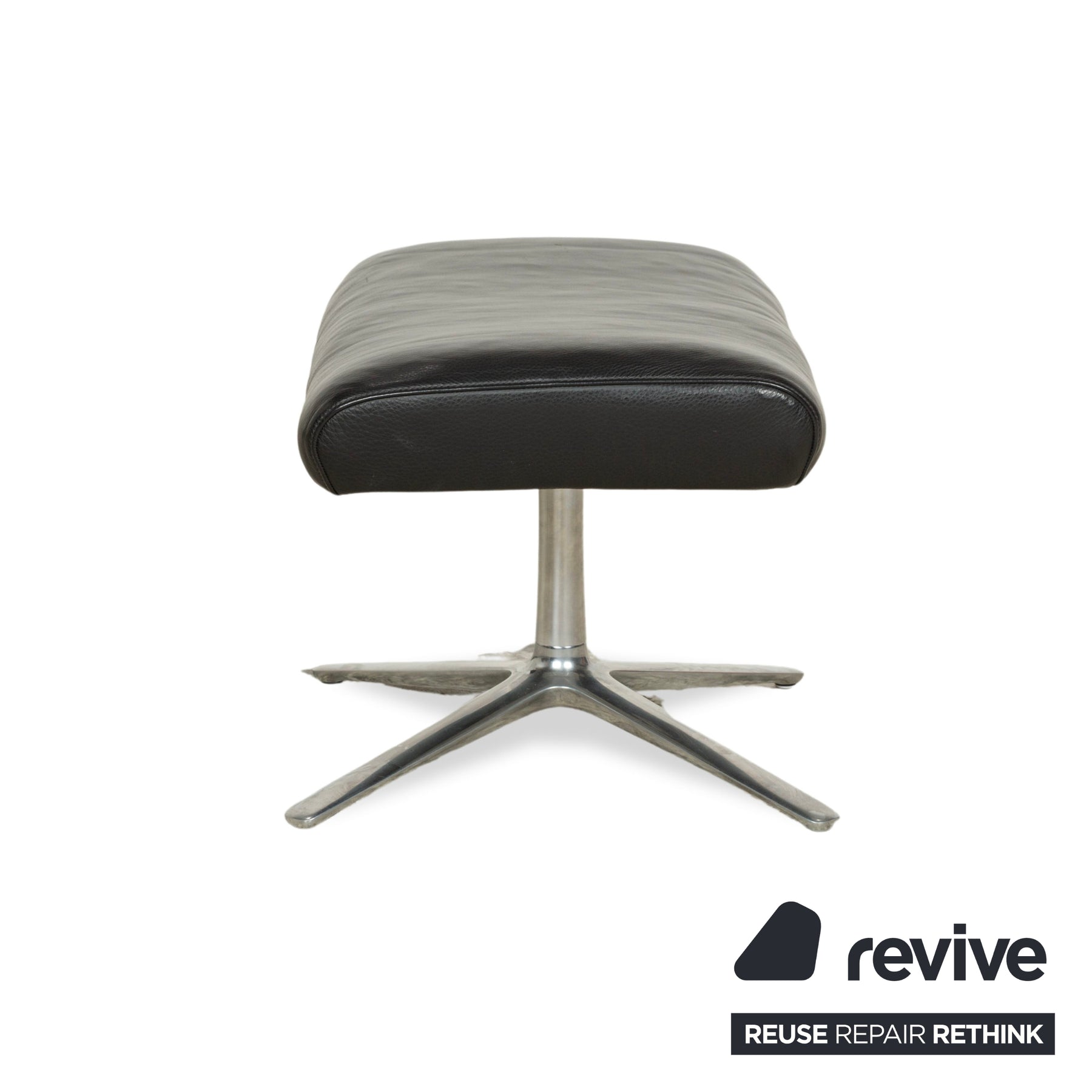 The Cor Cordia armchair and matching footstool impress with their simple yet elegant appearance, characterized by the black leather and silver accents of the frame. The high-quality craftsmanship ensures the necessary comfort and durability.