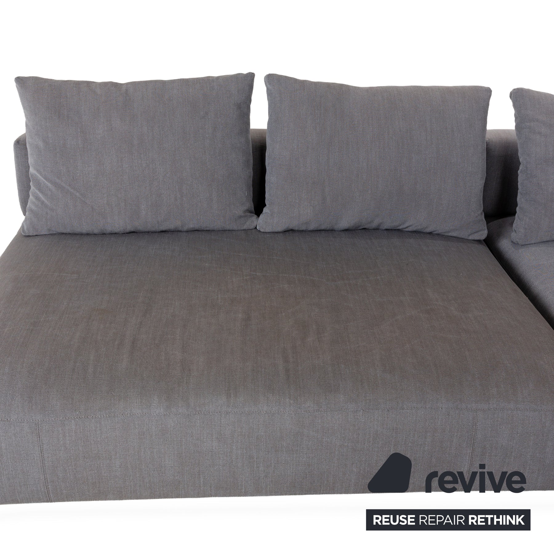The sofa from Glow In is upholstered in a dark gray fabric and sits floor-to-ceiling. This corner sofa is characterized by its spacious, minimalist design. Deep seats and high backrest cushions promise exceptional comfort. The neutral gray tone makes this piece easy to combine with other furnishings.