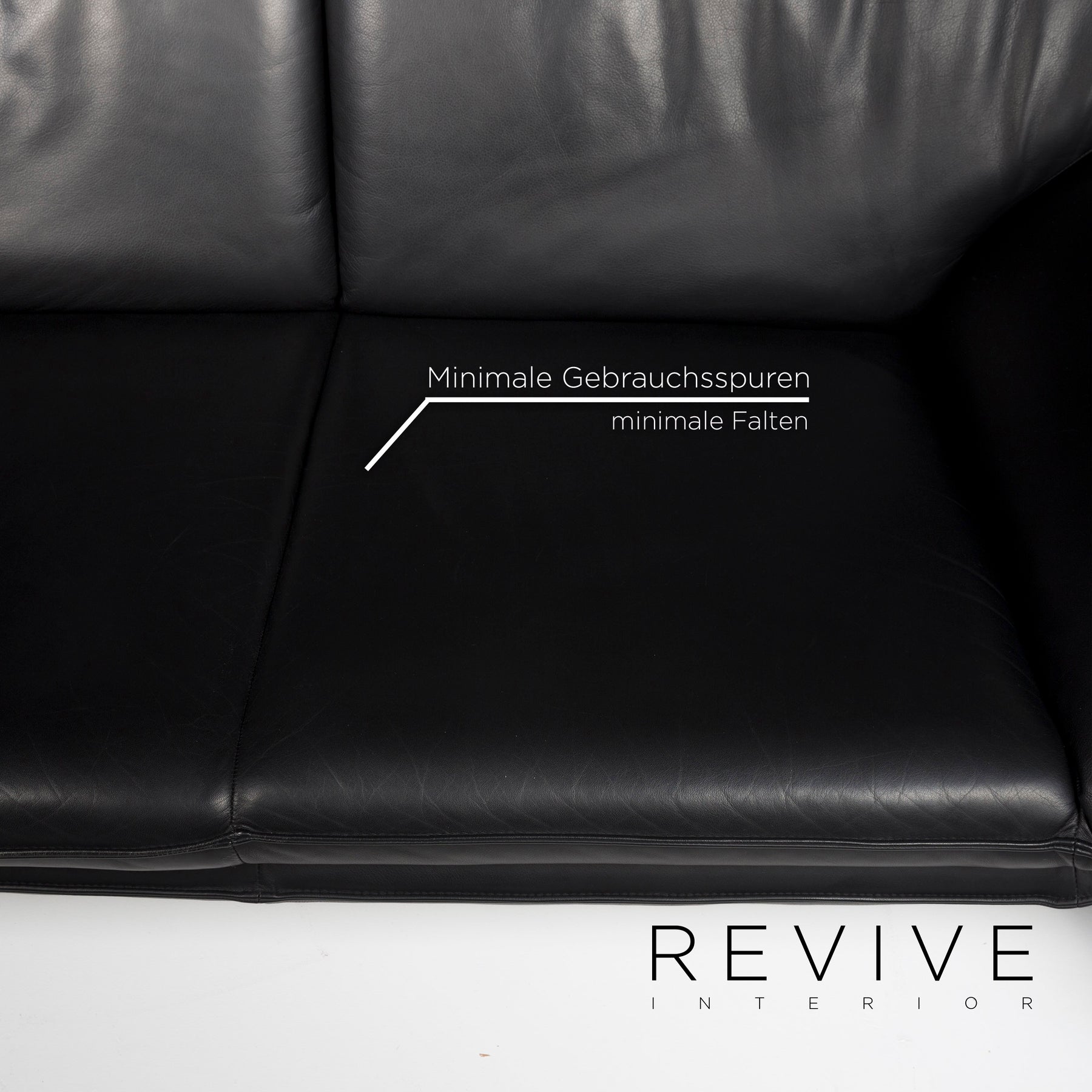 Laauser Atlanta Leder Sofa Garnitur Schwarz Dreisitzer Zweisitzer #11629