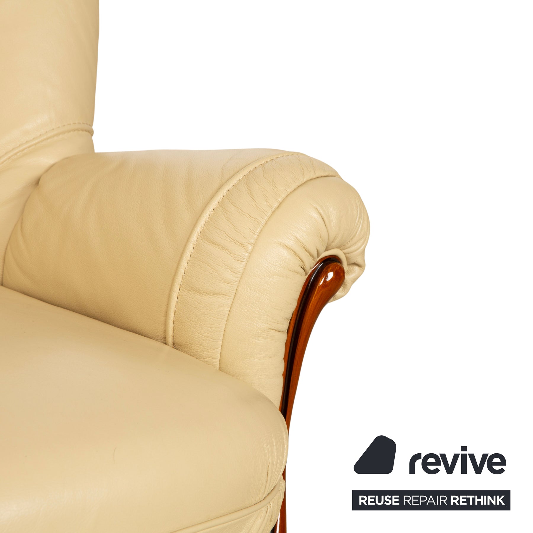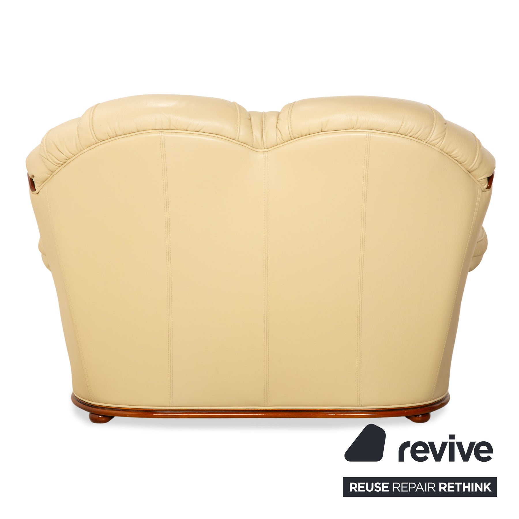 This two-seater is the compact answer to its larger counterpart, bringing the charming Italian Nieri style to smaller spaces. Here, too, high-quality, cream-colored leather dominates, instantly making the room appear brighter and more inviting. The signature design features – such as the gently curved armrests and the elegant wooden base – make this armchair a true eye-catcher.