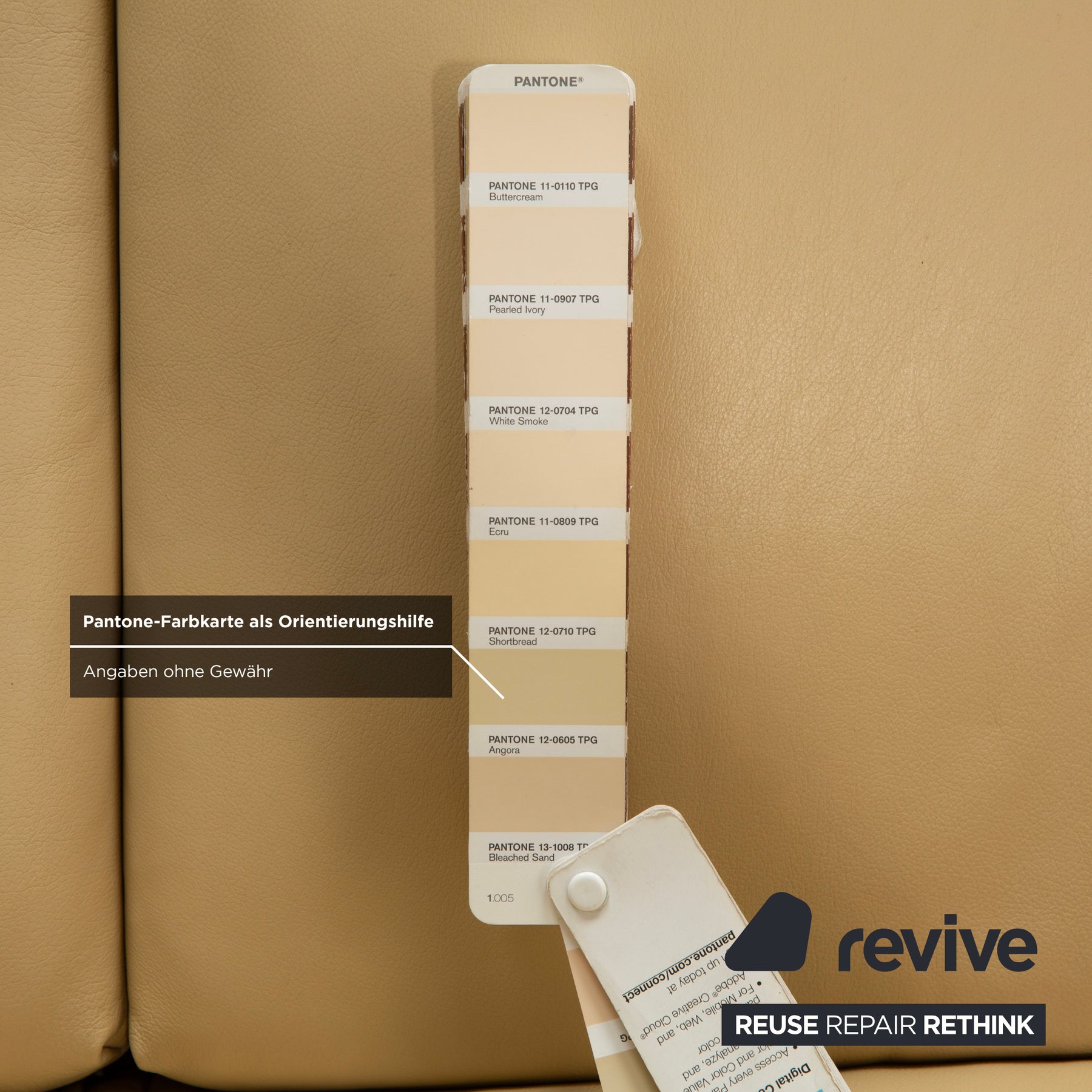 Nieri Leather Wood Two-Seater Cream Brown Sofa Couch