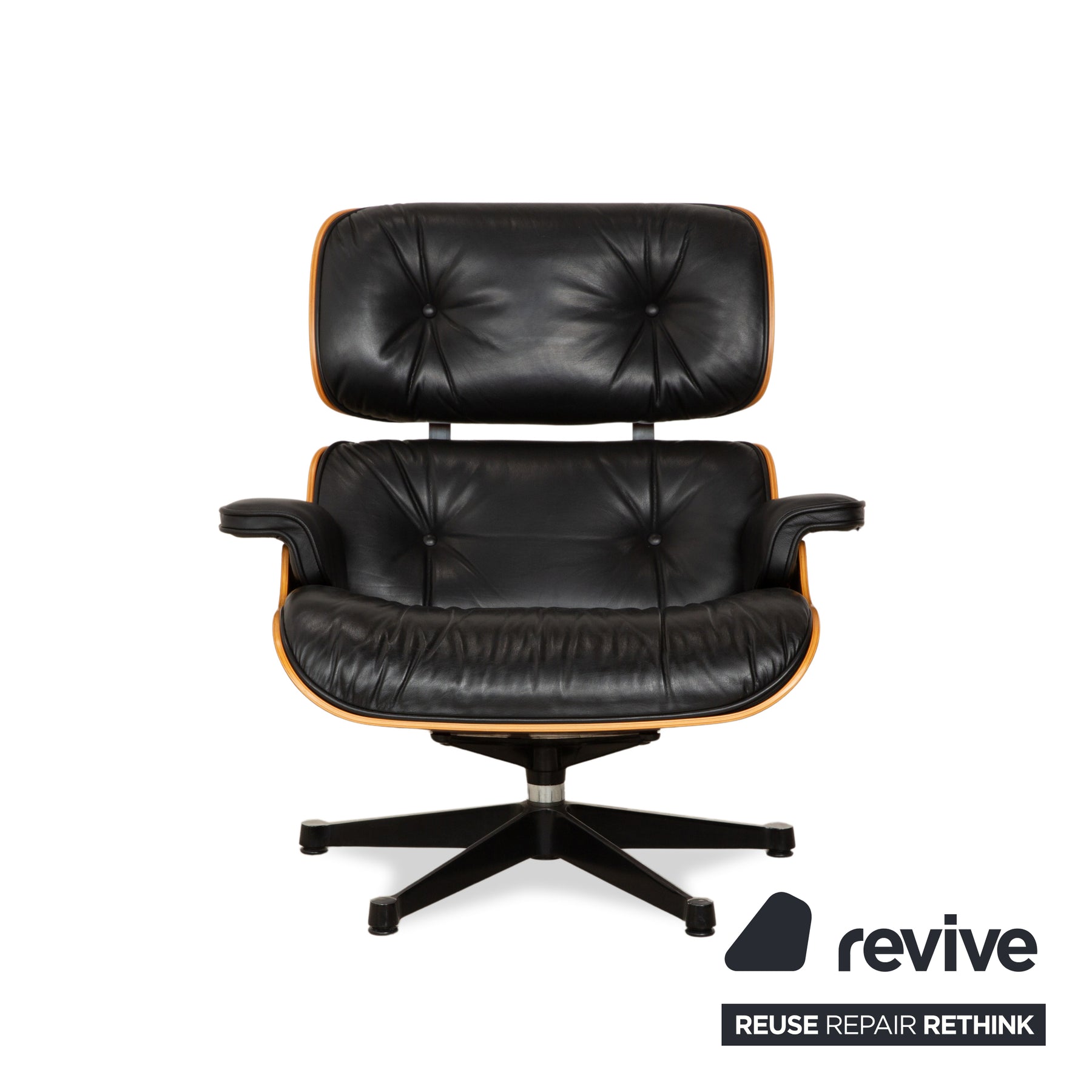 Vitra Eames Lounge Chair Leather Wood Armchair Black Manual Function