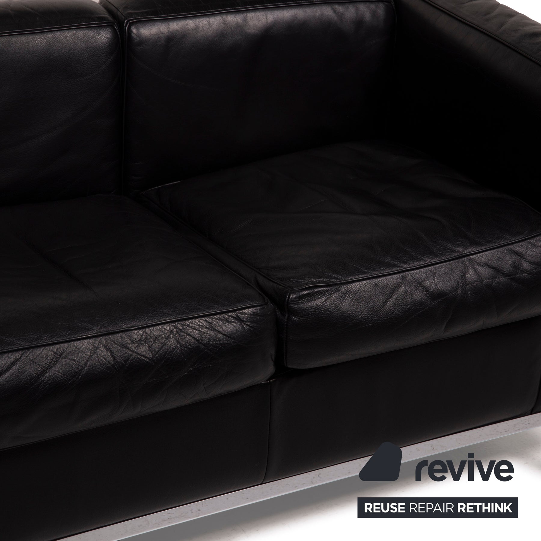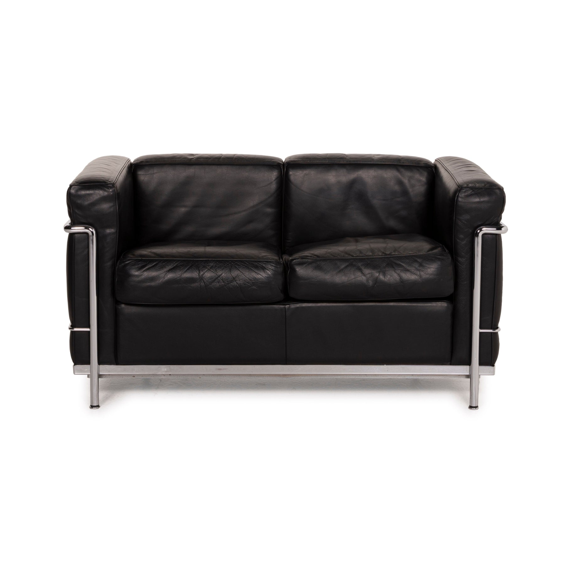 Cassina LC 2 Leather Sofa Black Two-Seater Le Corbusier Chrome