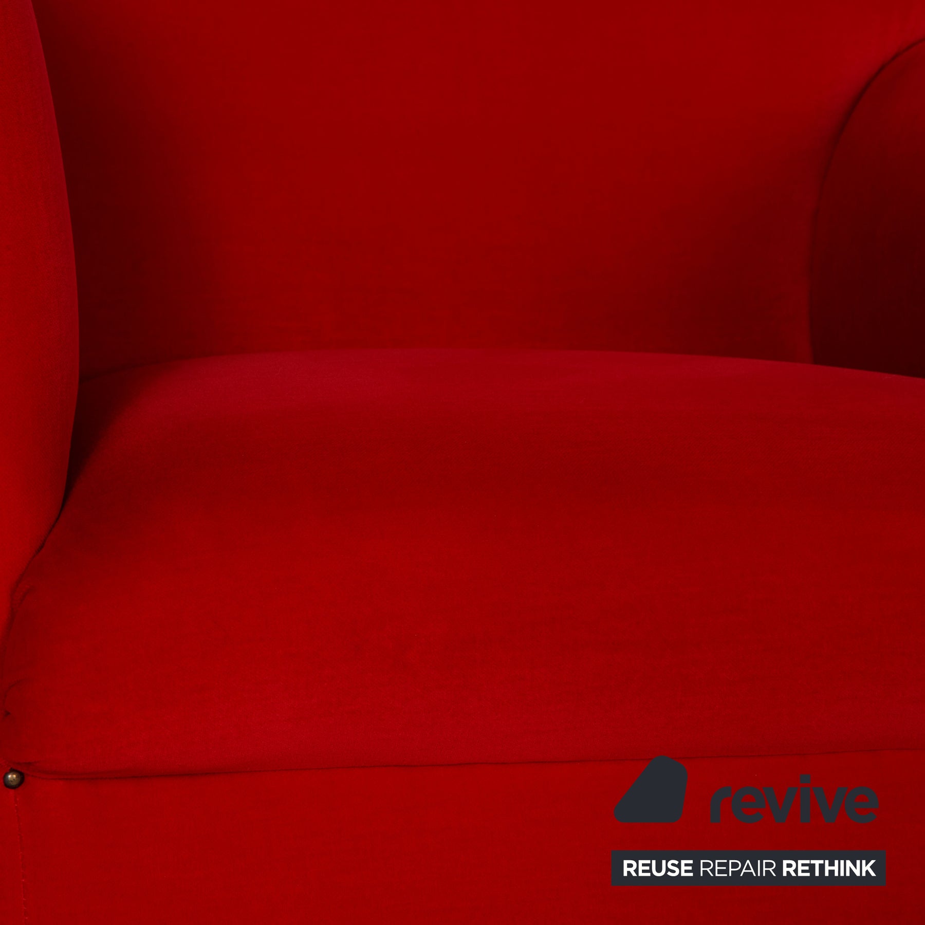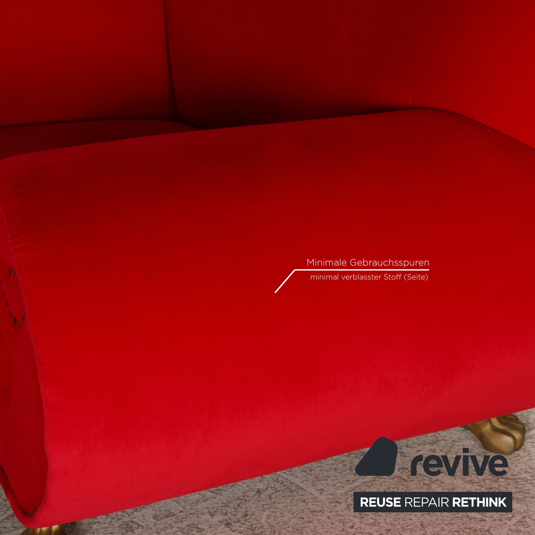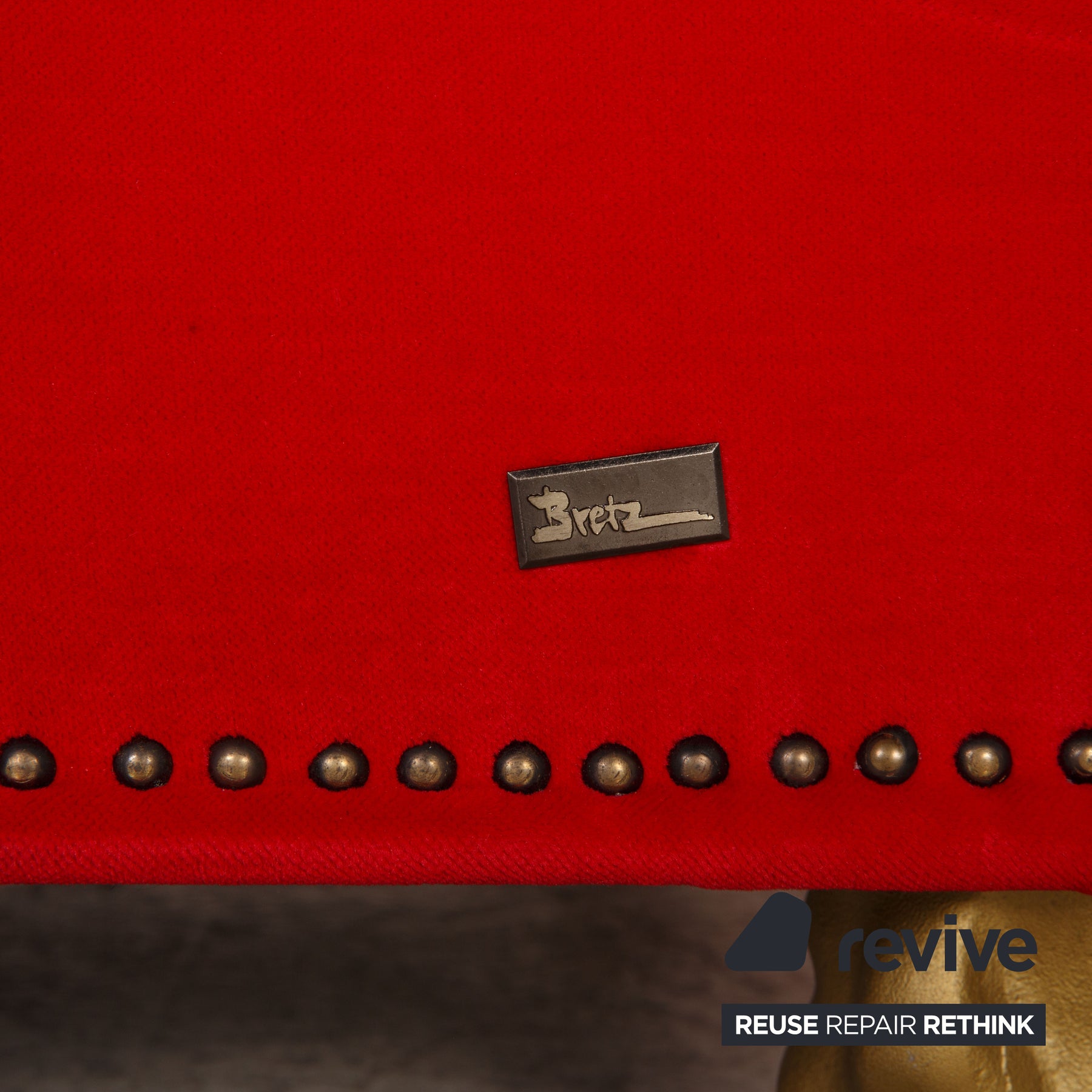 The Gaudi armchair by Bretz is upholstered in red velvet and stands on bronze-colored feet. It is characterized by the extravagant design and the twisted, curved backrests.