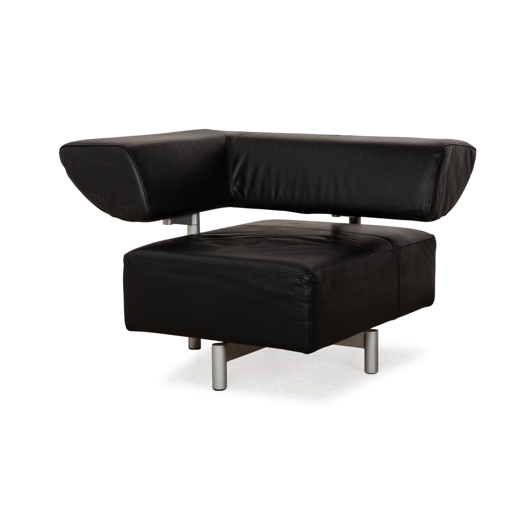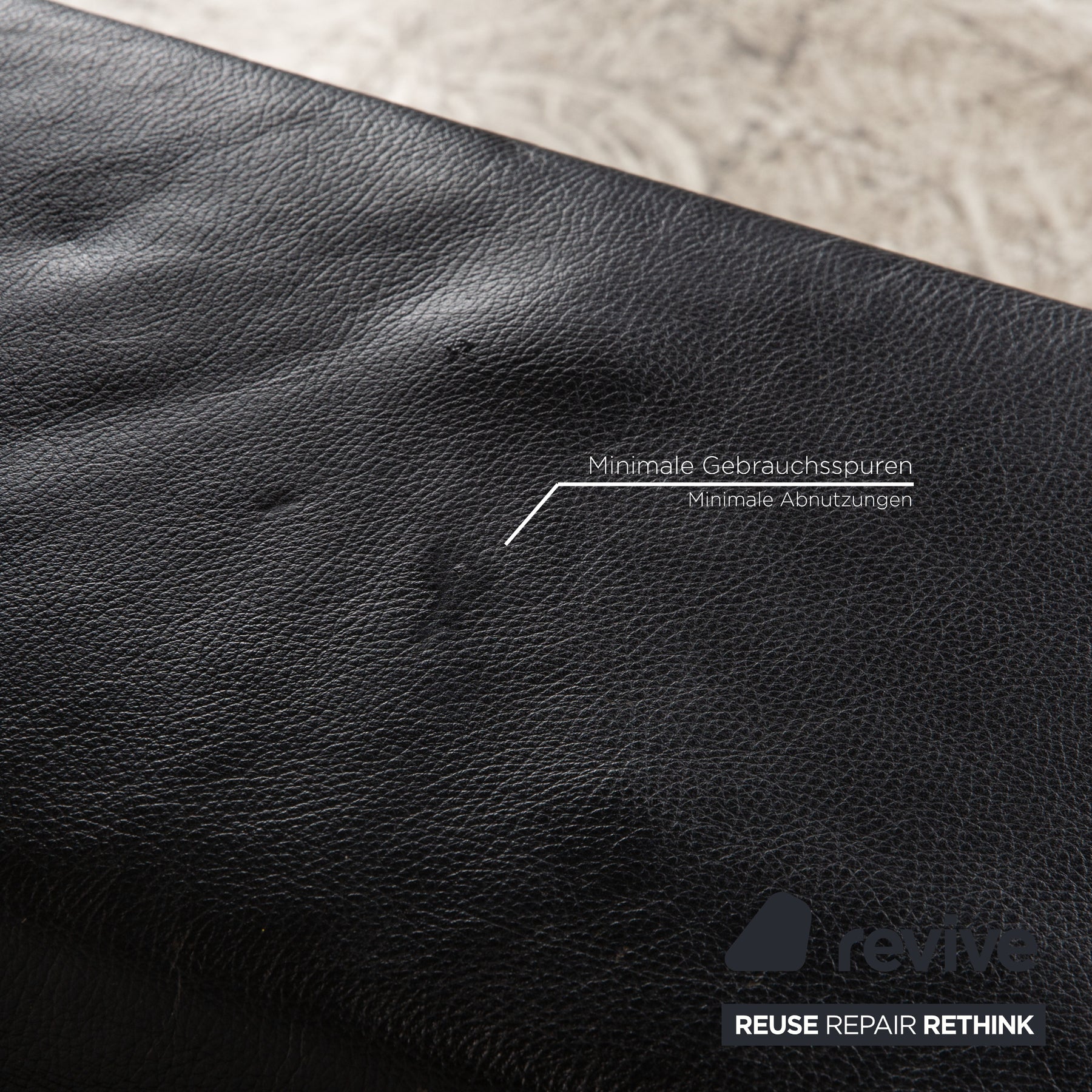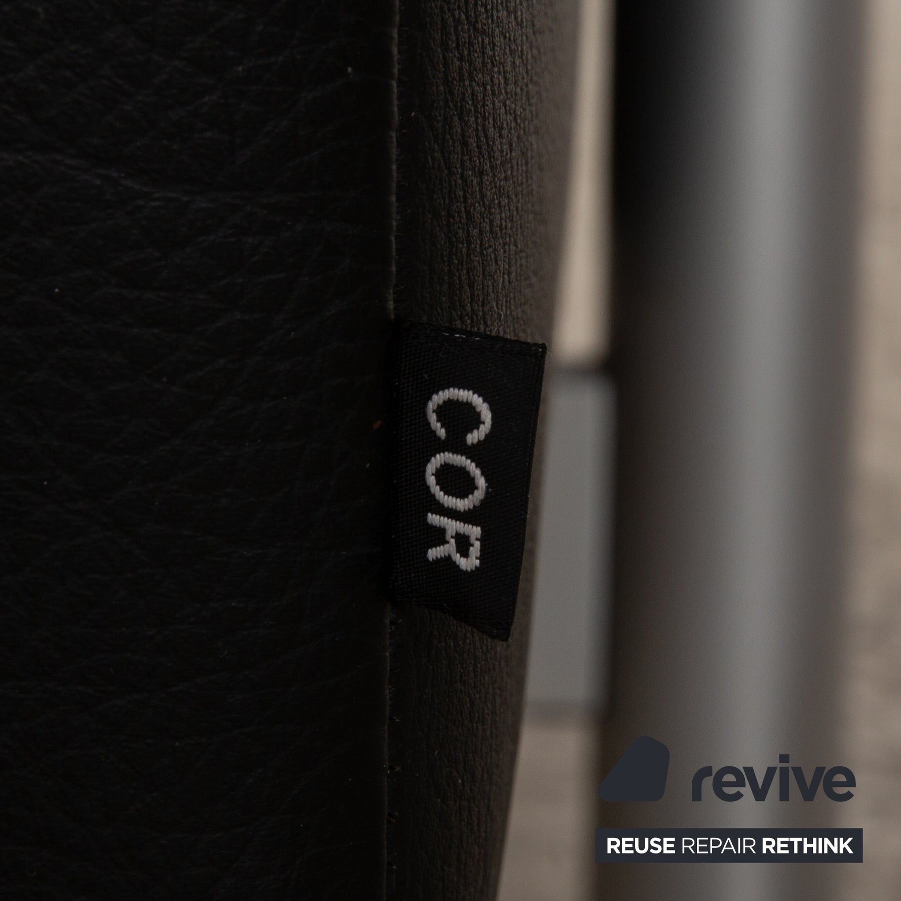 The Arthe armchair by Cor is upholstered in black genuine leather and stands on round, silver metal feet. It is characterized by its harmonious color and stylish design.
