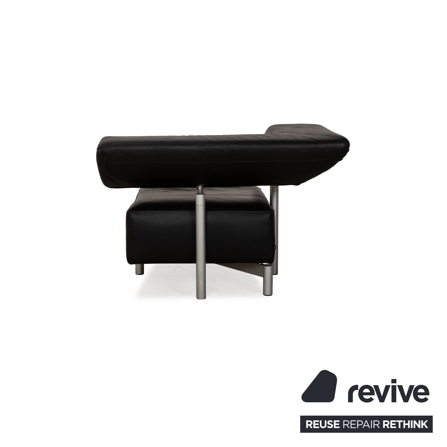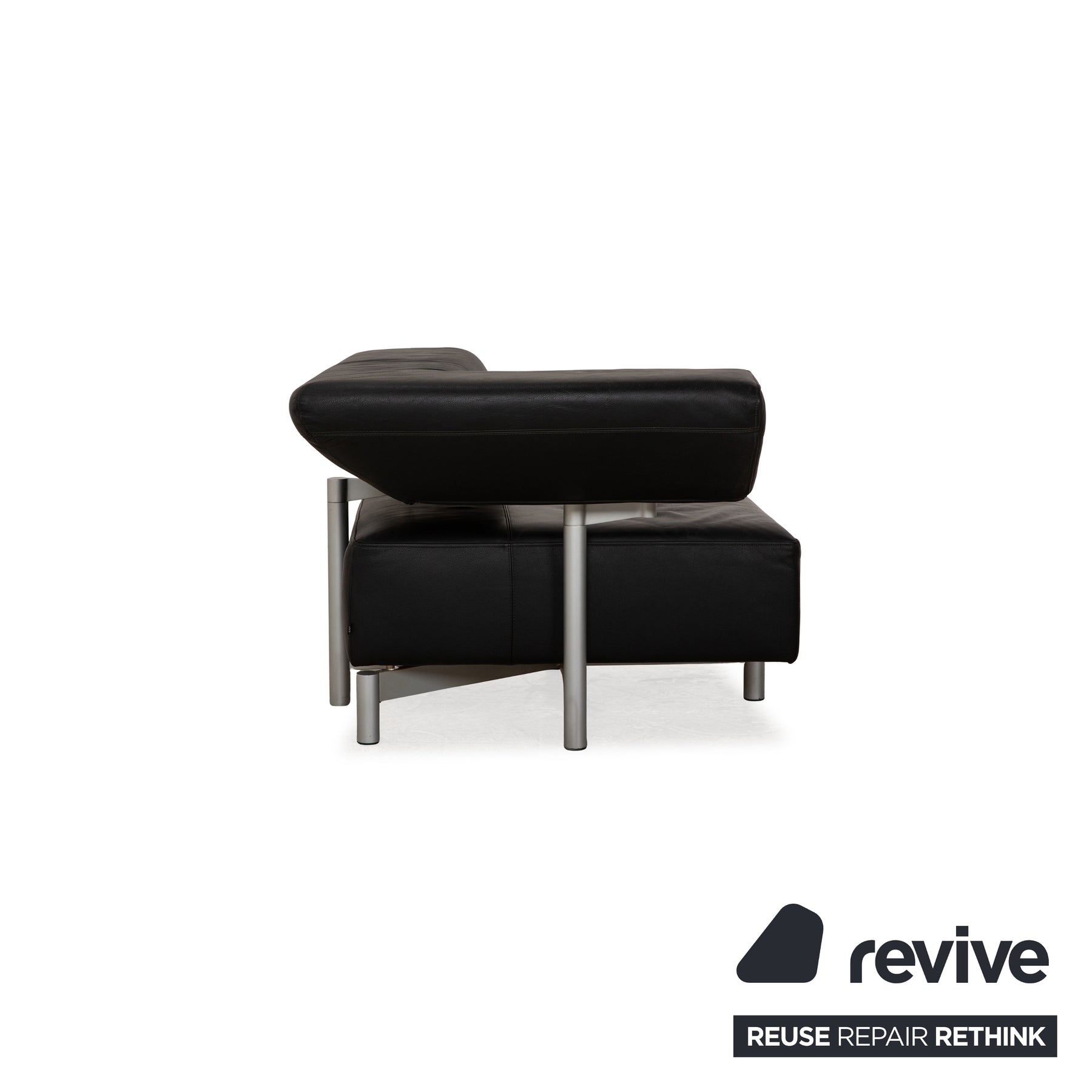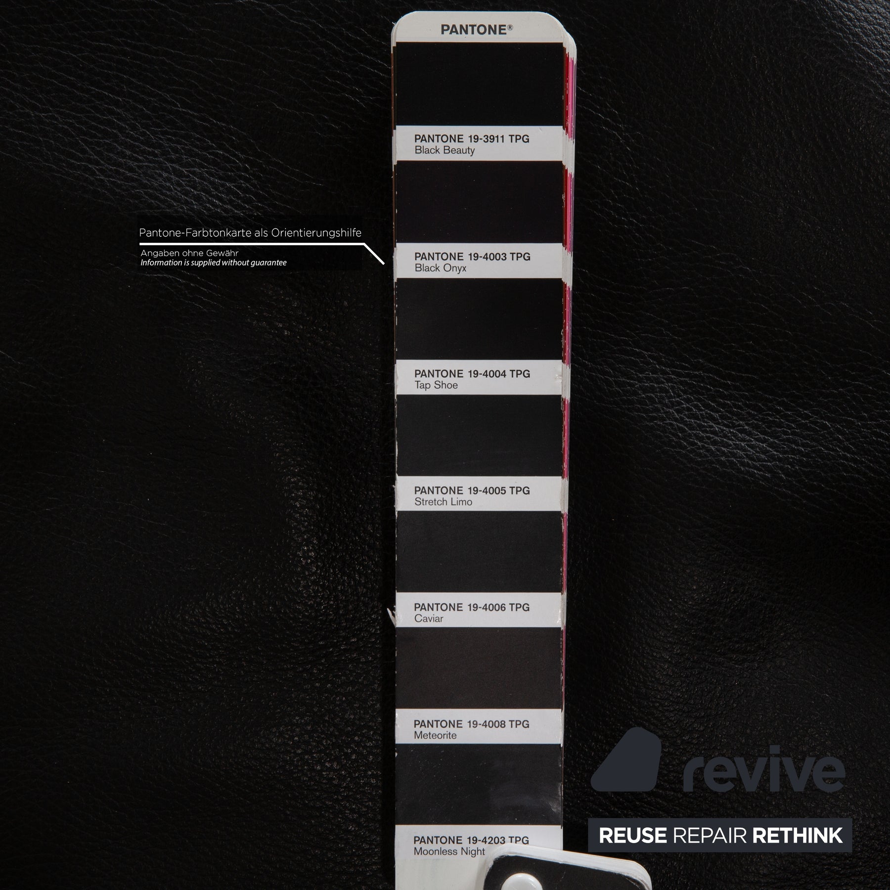 The Arthe armchair by Cor is upholstered in black genuine leather and stands on round, silver metal feet. It is characterized by its harmonious color and stylish design.