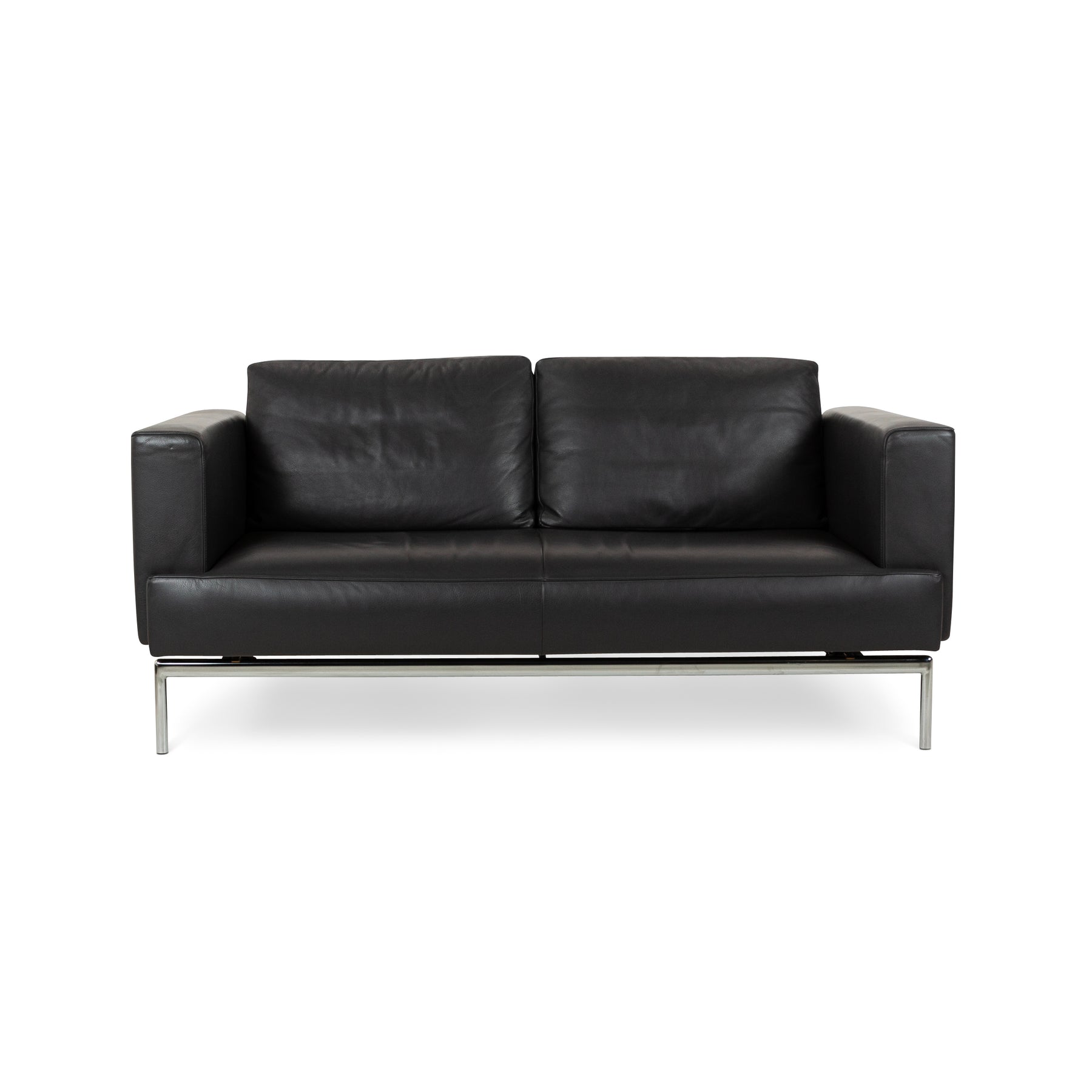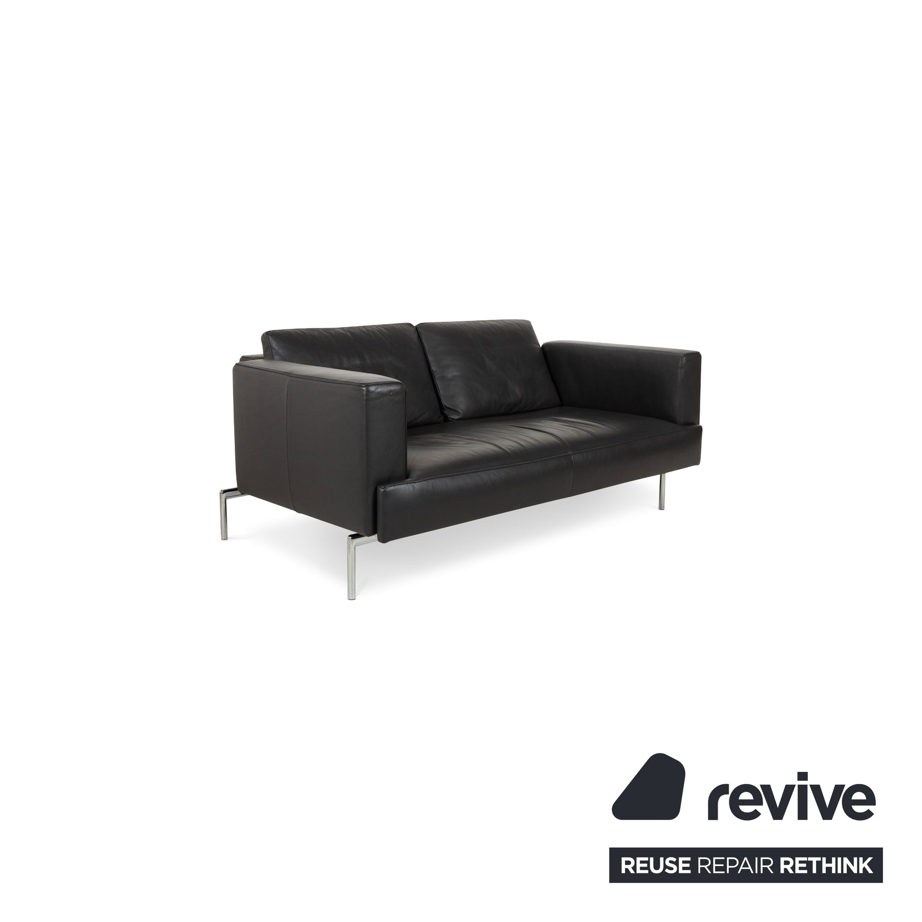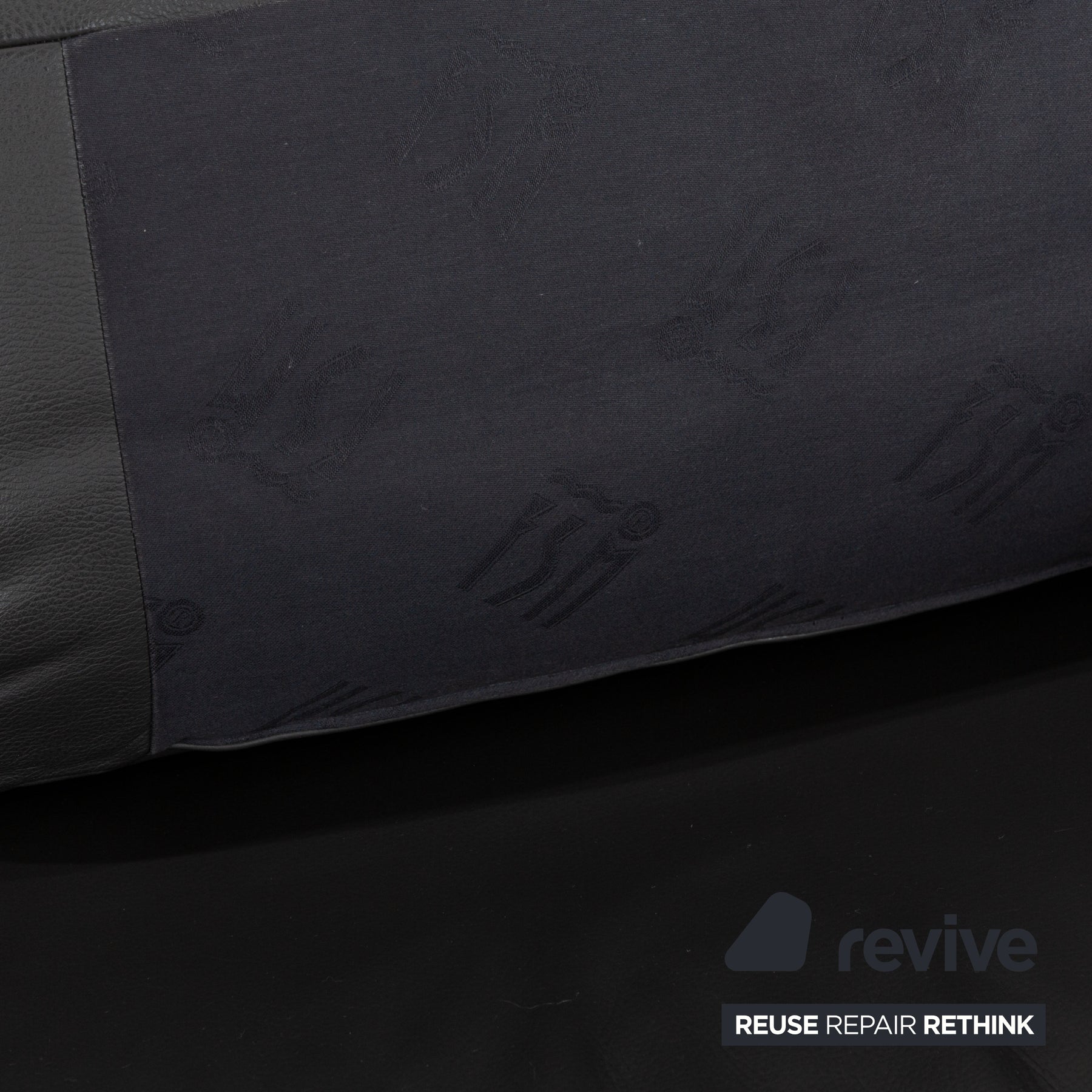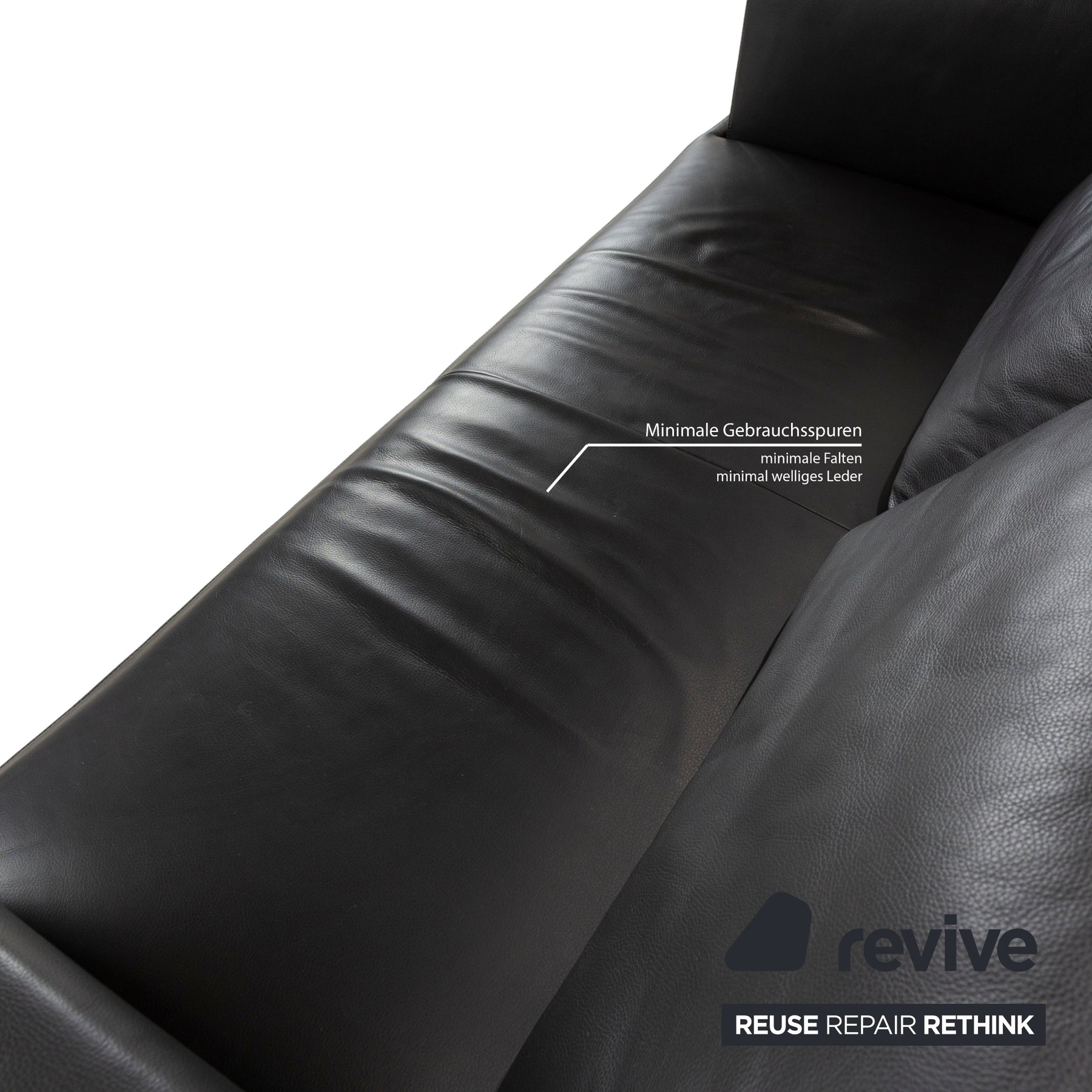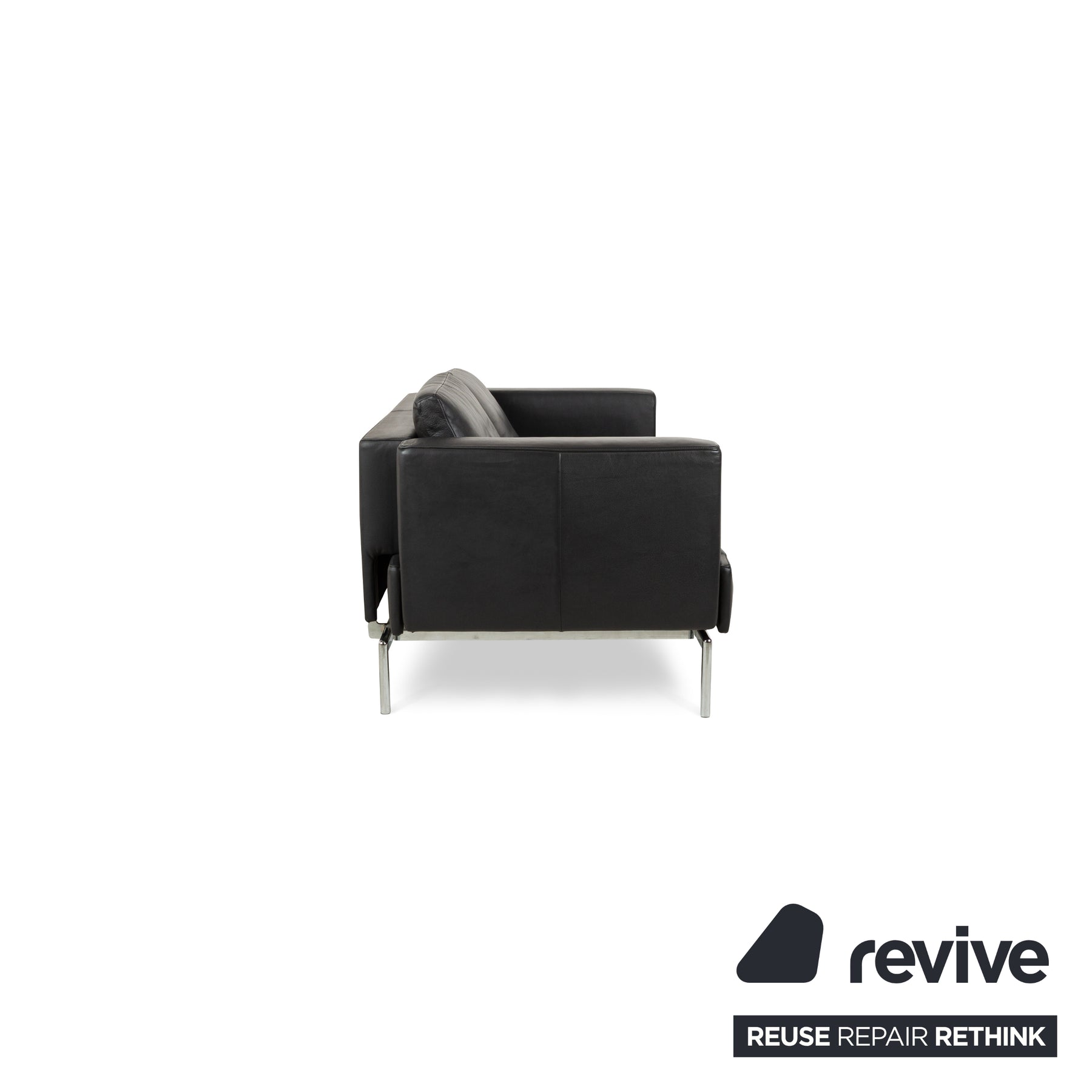 The Sofs Easy FSM by FSM is covered in dark grey genuine leather and stands on a slim, elegant metal frame in silver. The three-seater has a seat that is adjustable in depth for increased comfort. This sofa is characterized by a classic, easy-to-combine design.