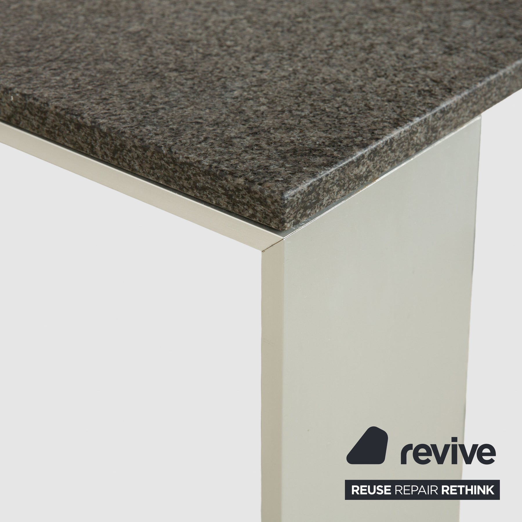 This dining table from Rolf Benz is made of high-quality granite and metal, offering a modern and simple appearance. The combination of the anthracite-colored tabletop and silver legs exudes elegance.