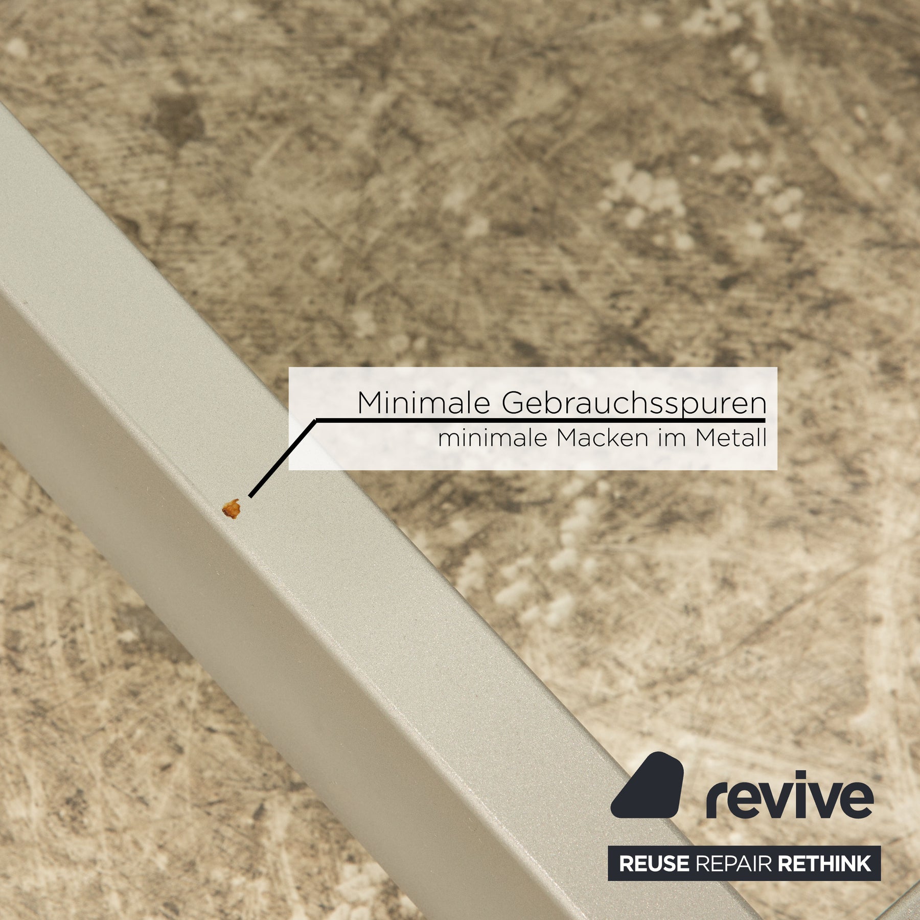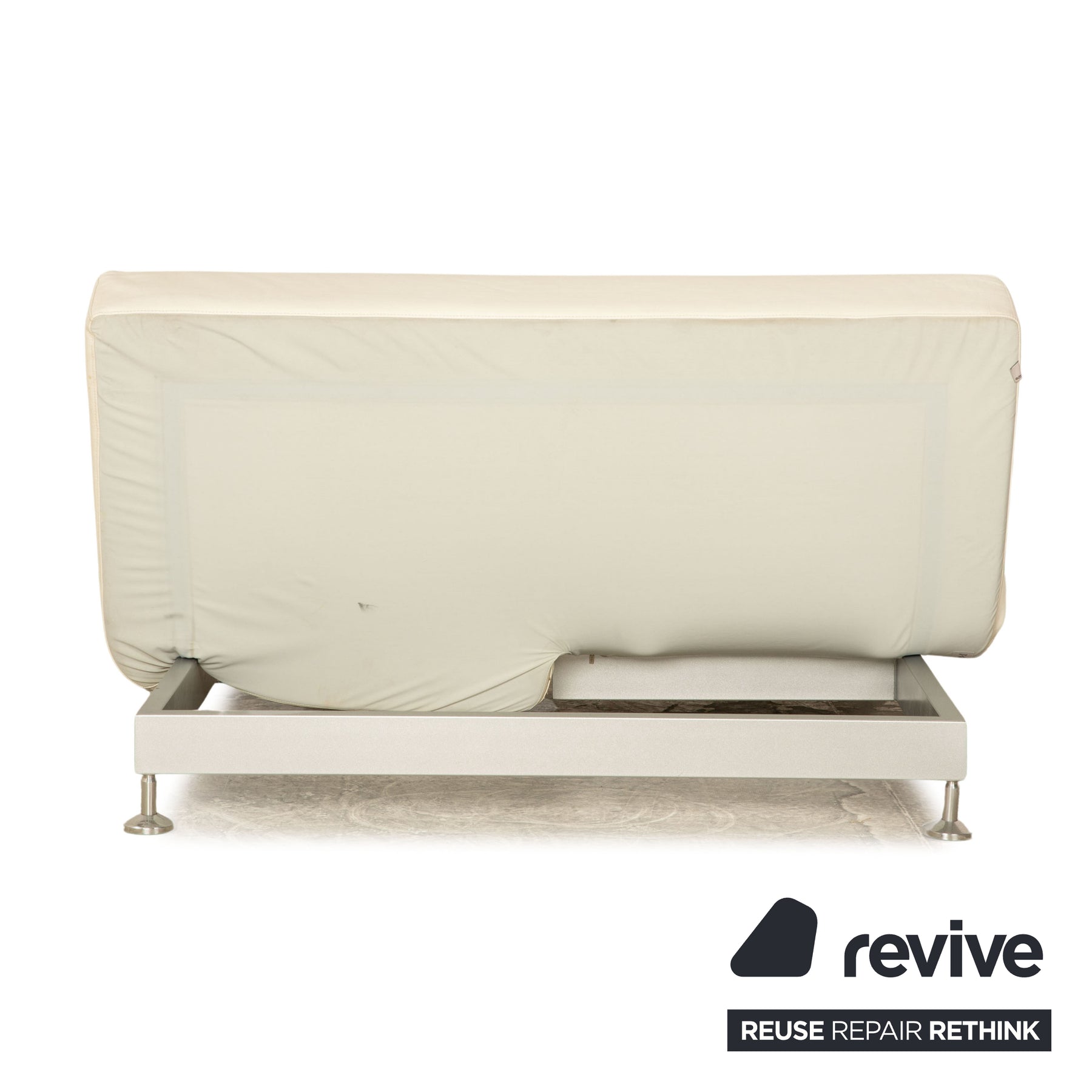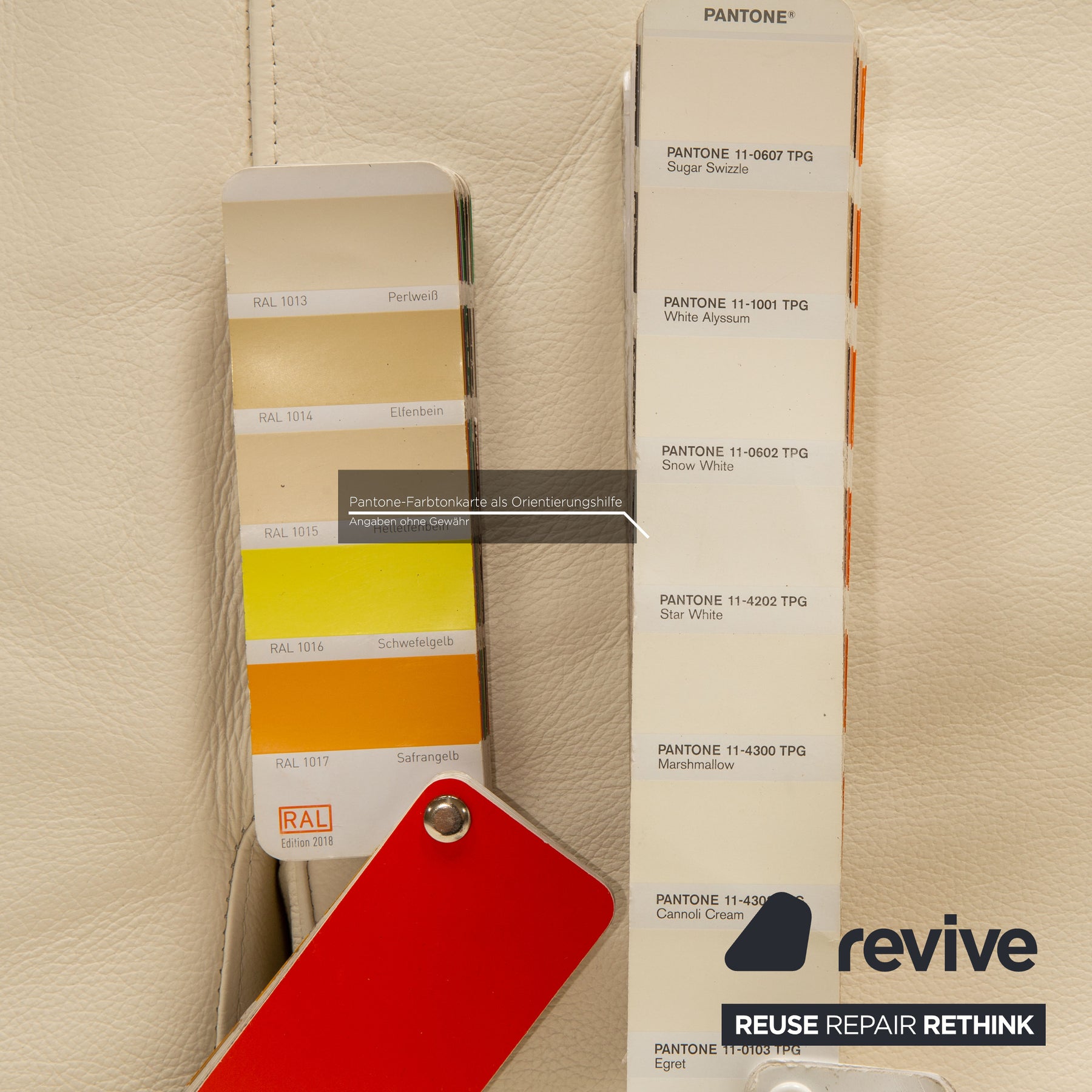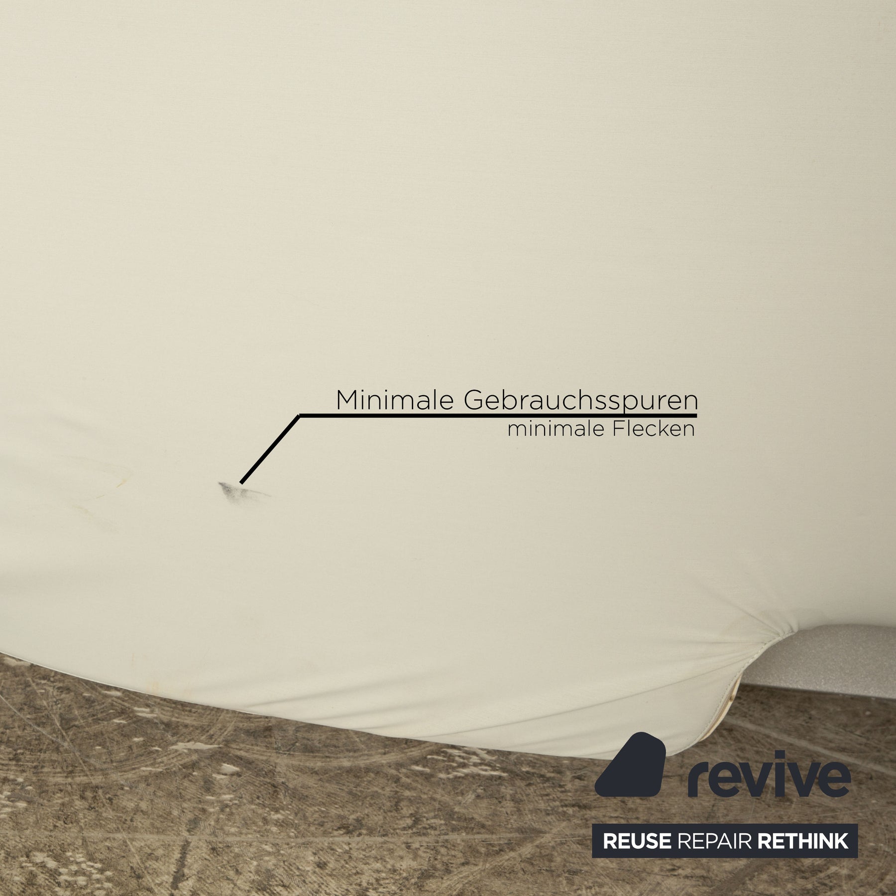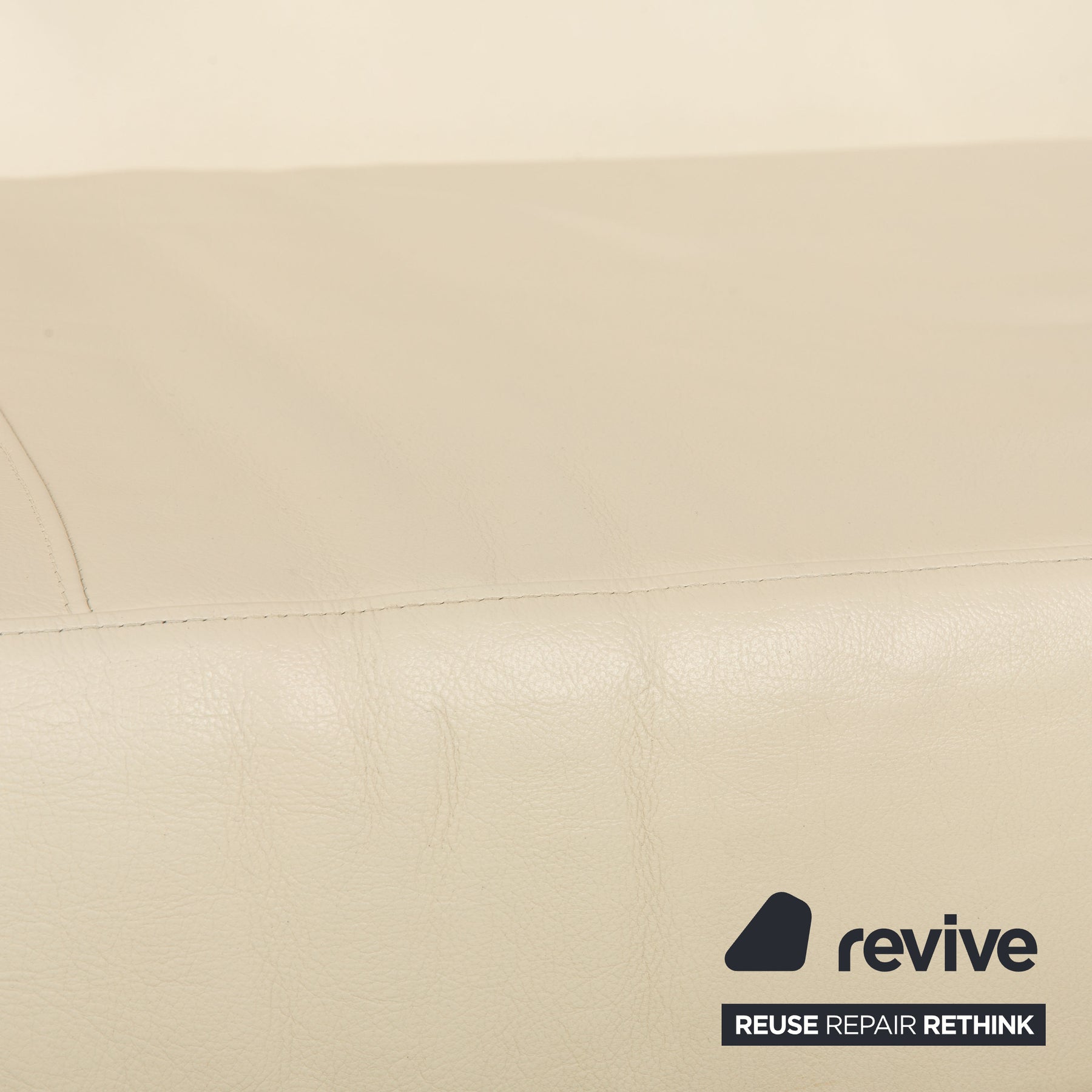 The two-seater Damier from Edra is covered in cream-colored genuine leather and has a silver metal frame. It is characterized by the comfortable sleeping function and the bright, harmonious design.
