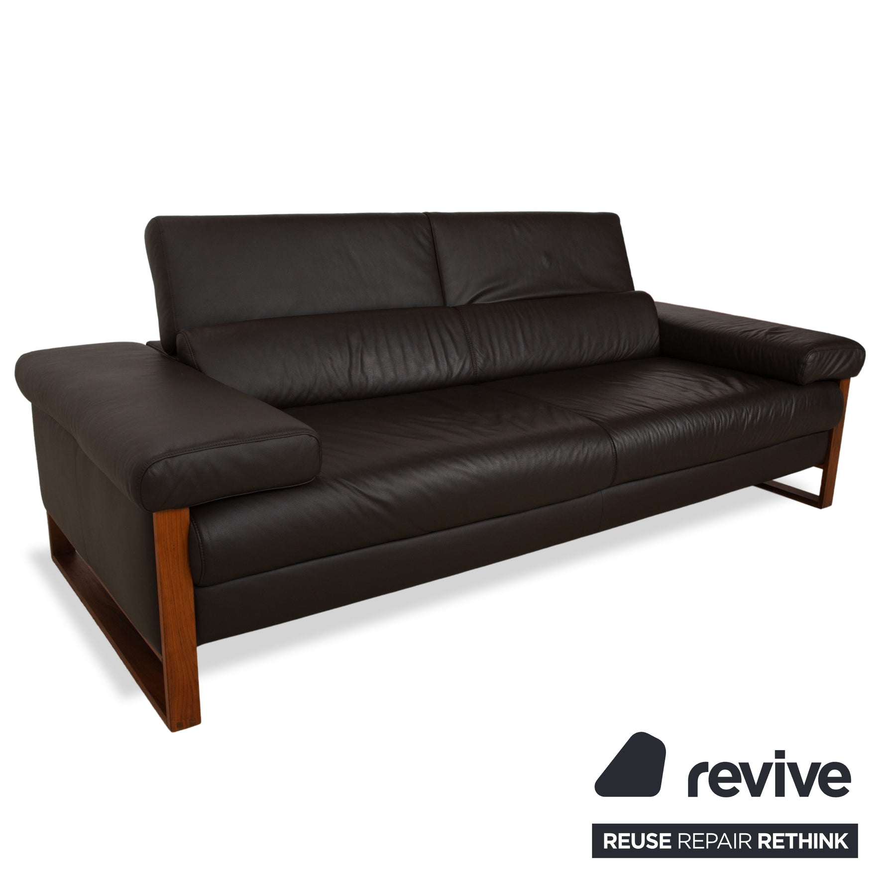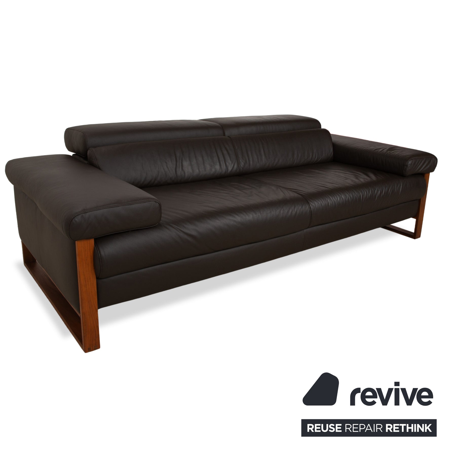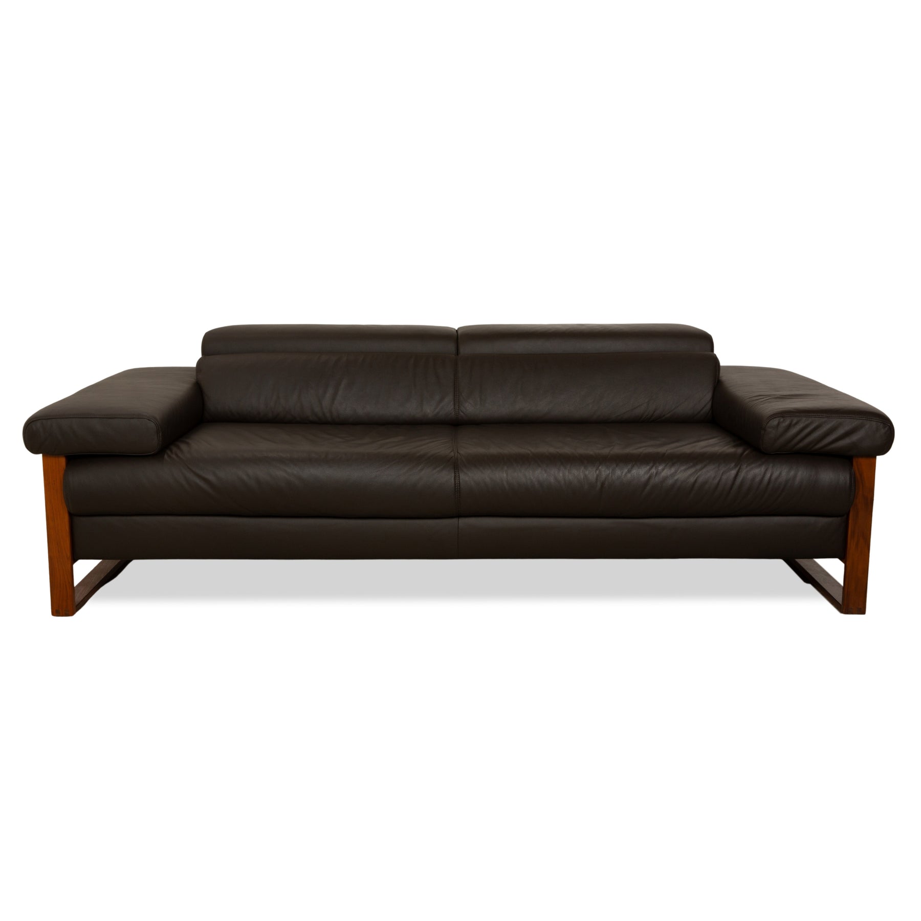 The Willi Schillig Finn three-seater sofa impresses with its combination of dark brown leather and a wooden frame. The natural tones create a relaxed atmosphere. Furthermore, the sofa features both electric and manual adjustment functions, maximizing comfort.