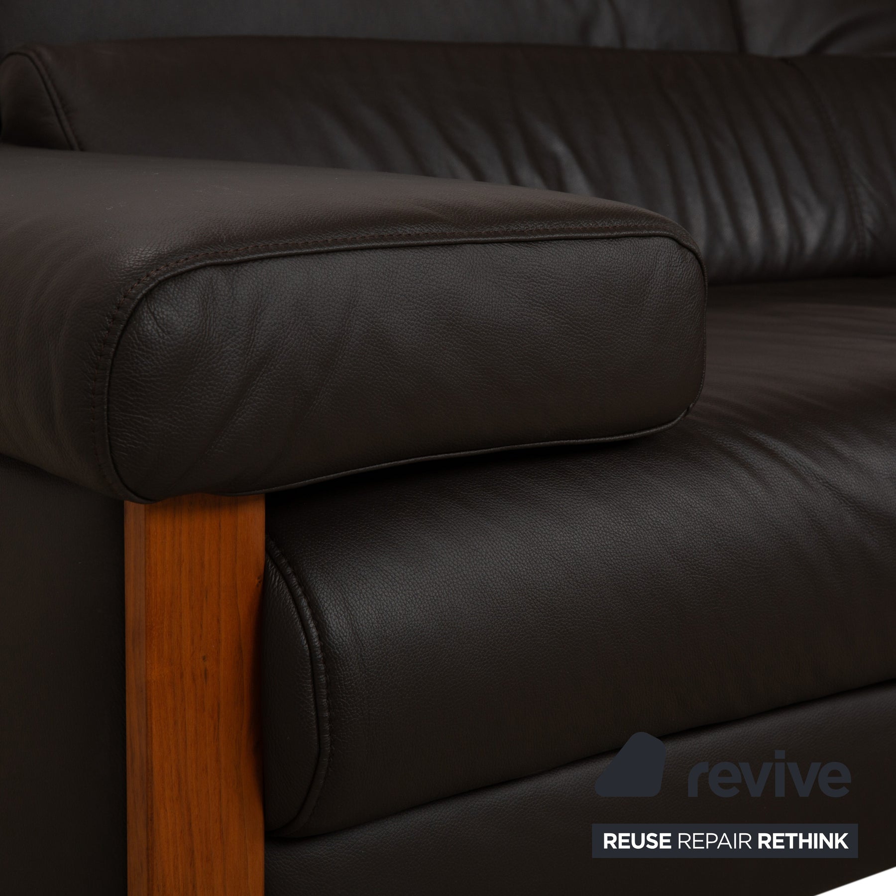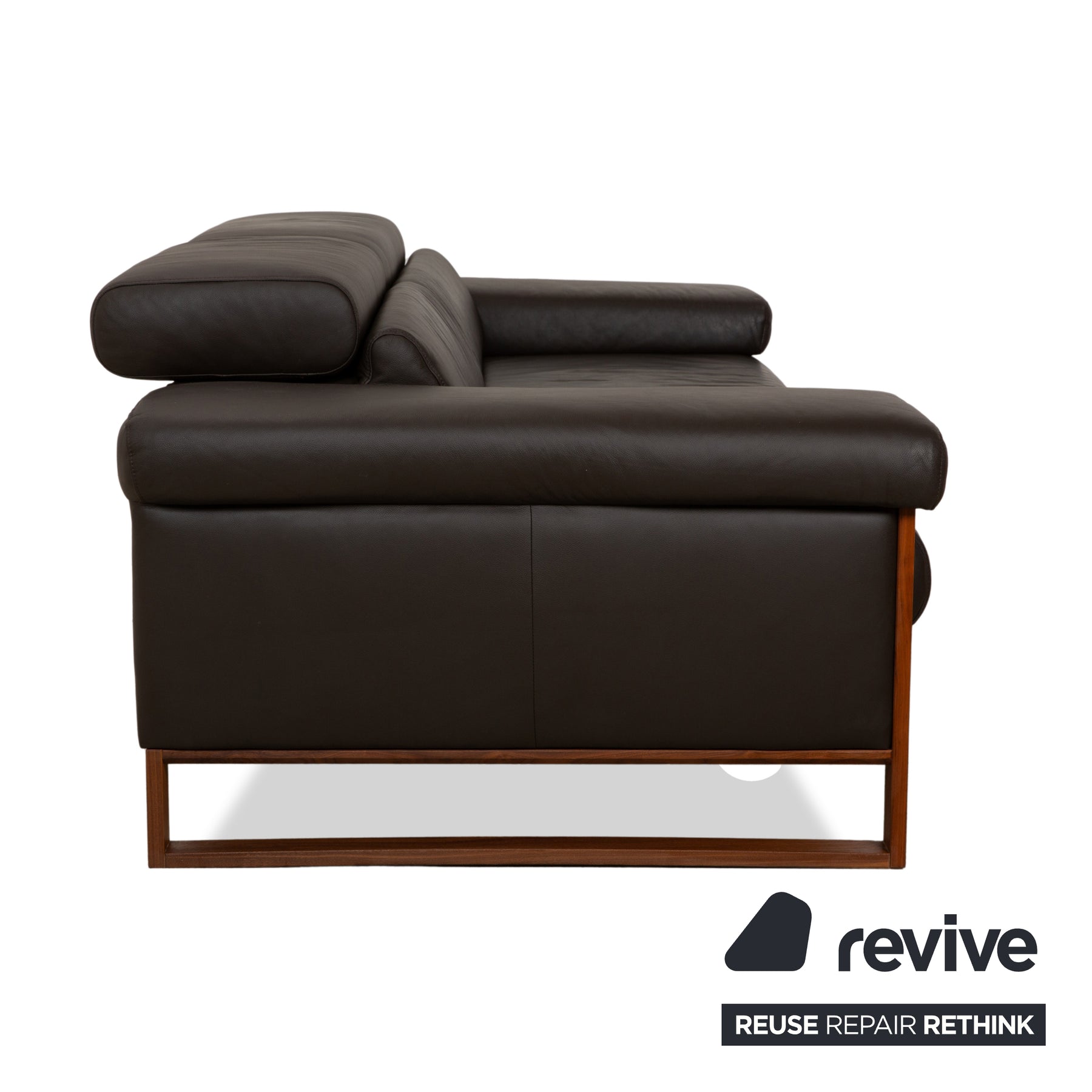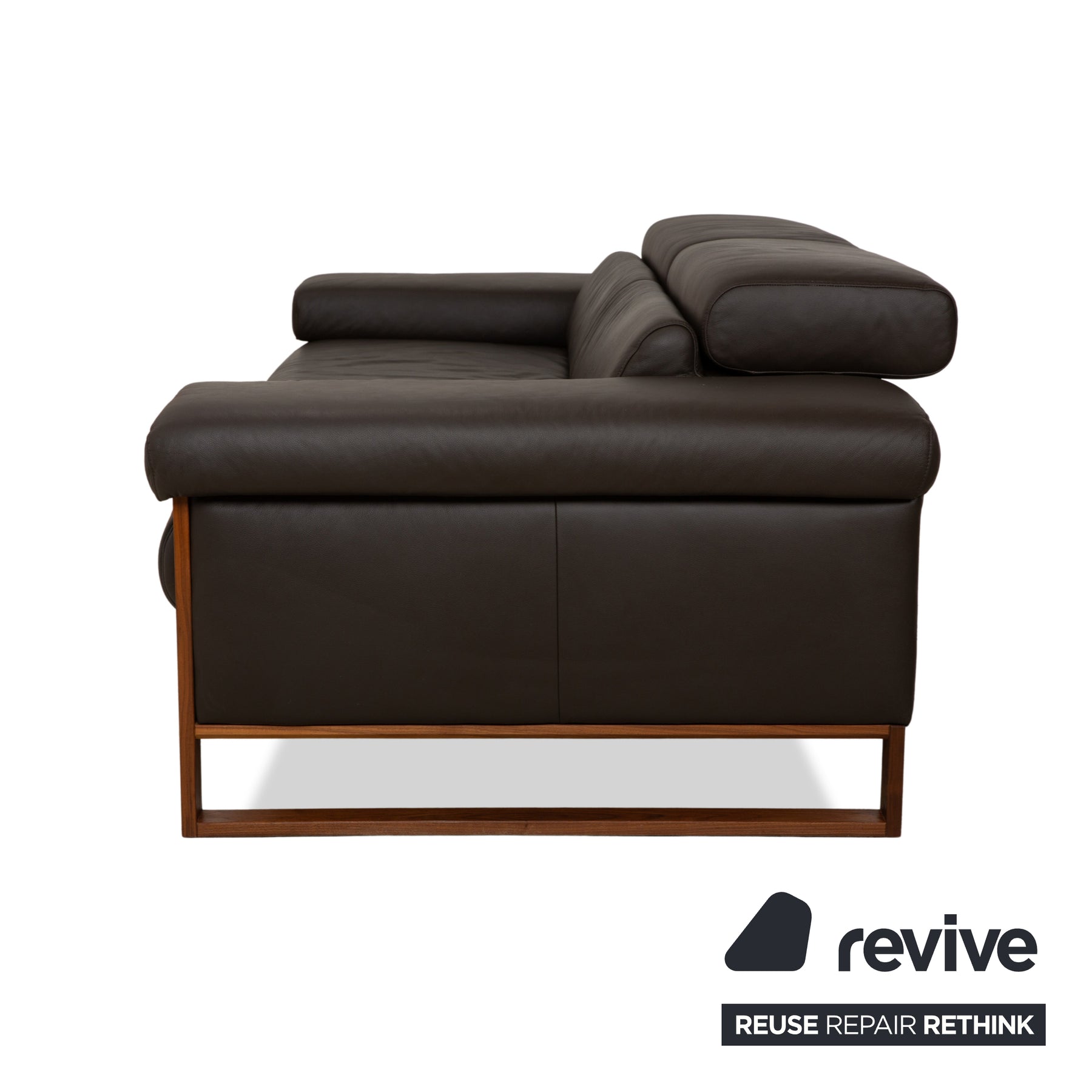 The Willi Schillig Finn three-seater sofa impresses with its combination of dark brown leather and a wooden frame. The natural tones create a relaxed atmosphere. Furthermore, the sofa features both electric and manual adjustment functions, maximizing comfort.