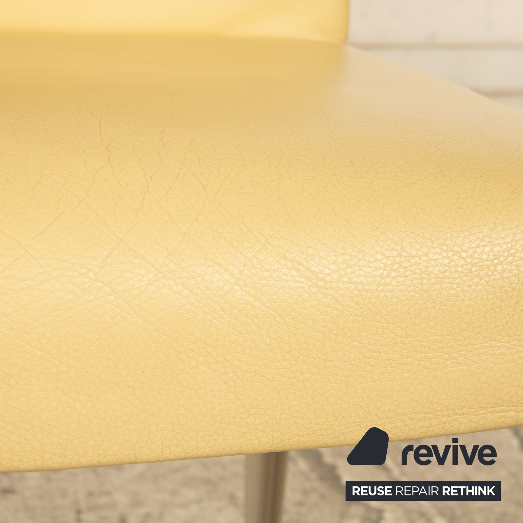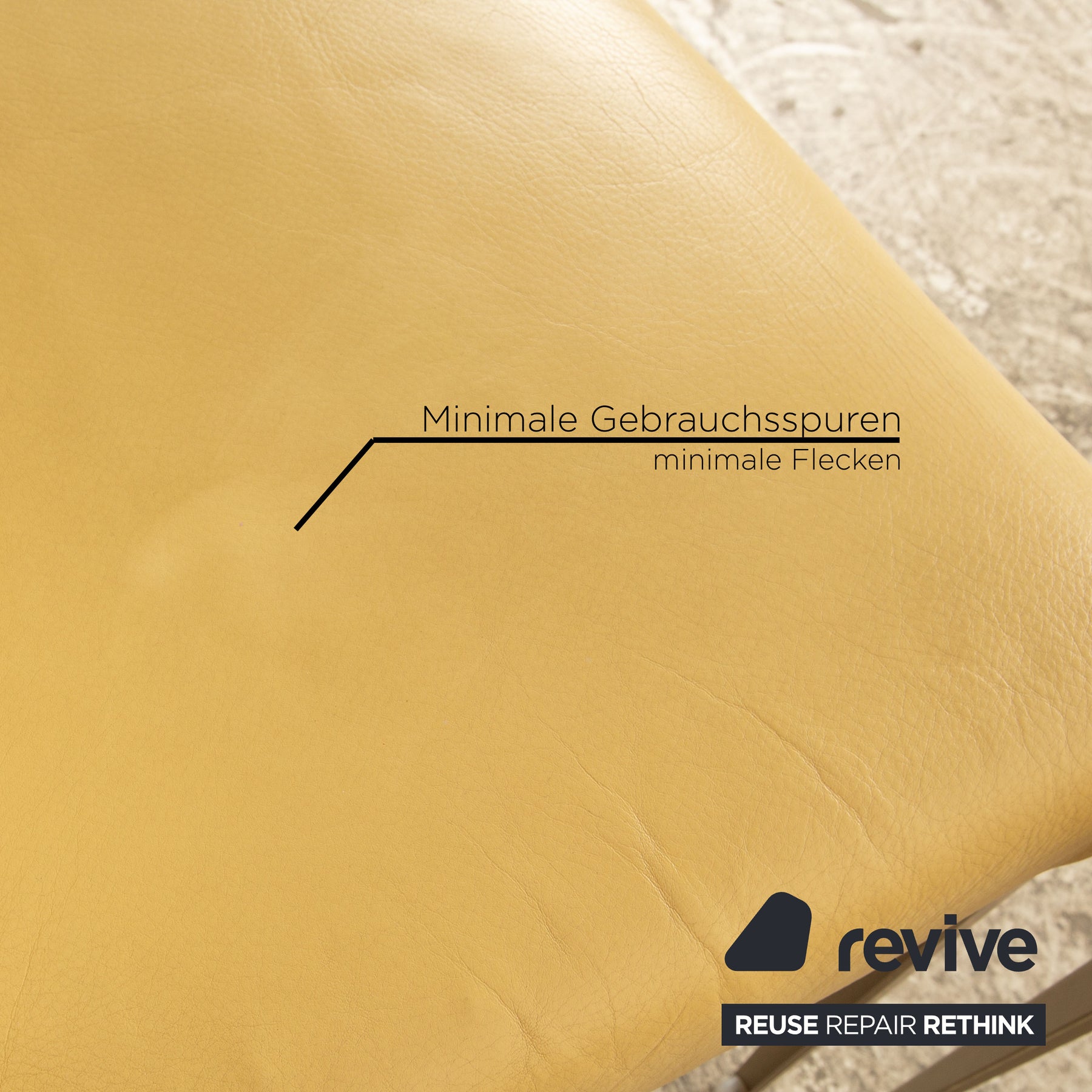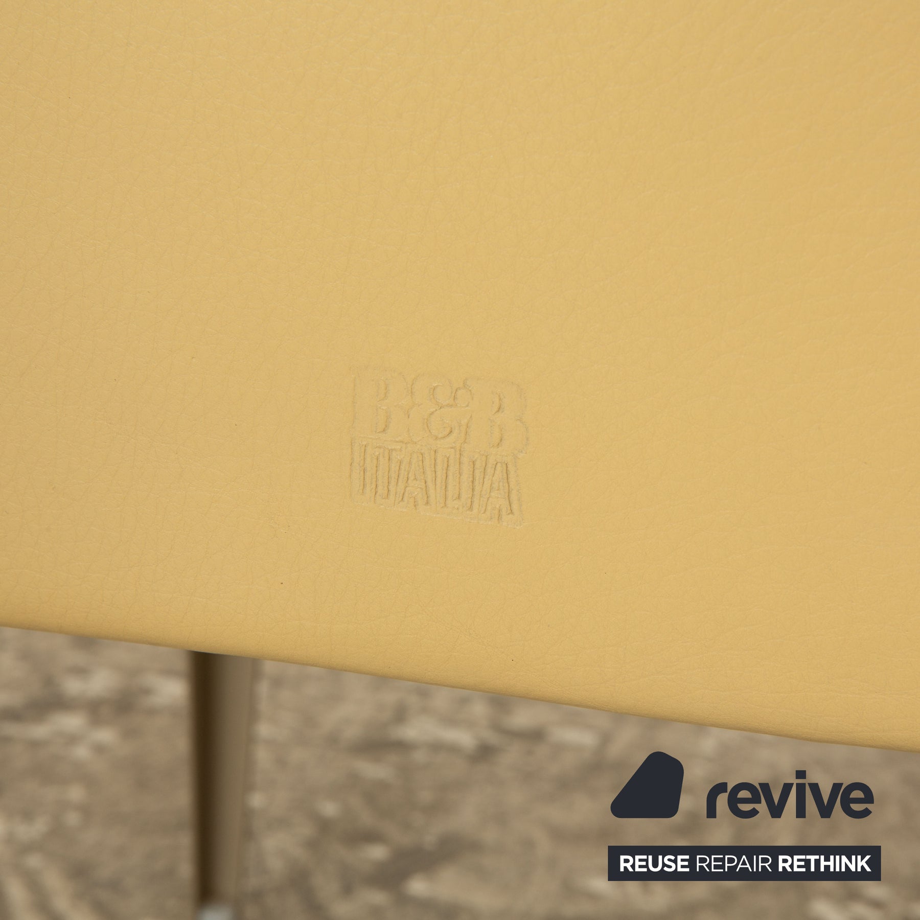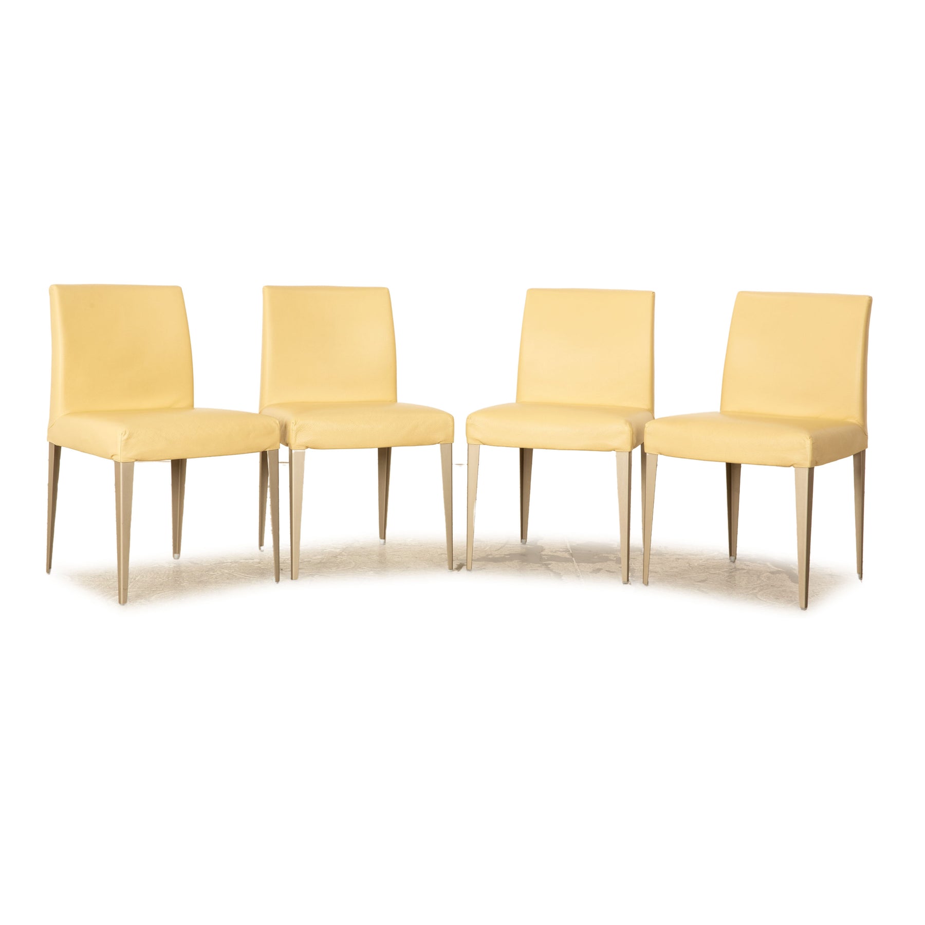 The chair set from B&B Italia is covered with cream-colored genuine leather and stands on narrow metal feet. It is characterized by its classic design and simple, timeless appearance. The set consists of four chairs.