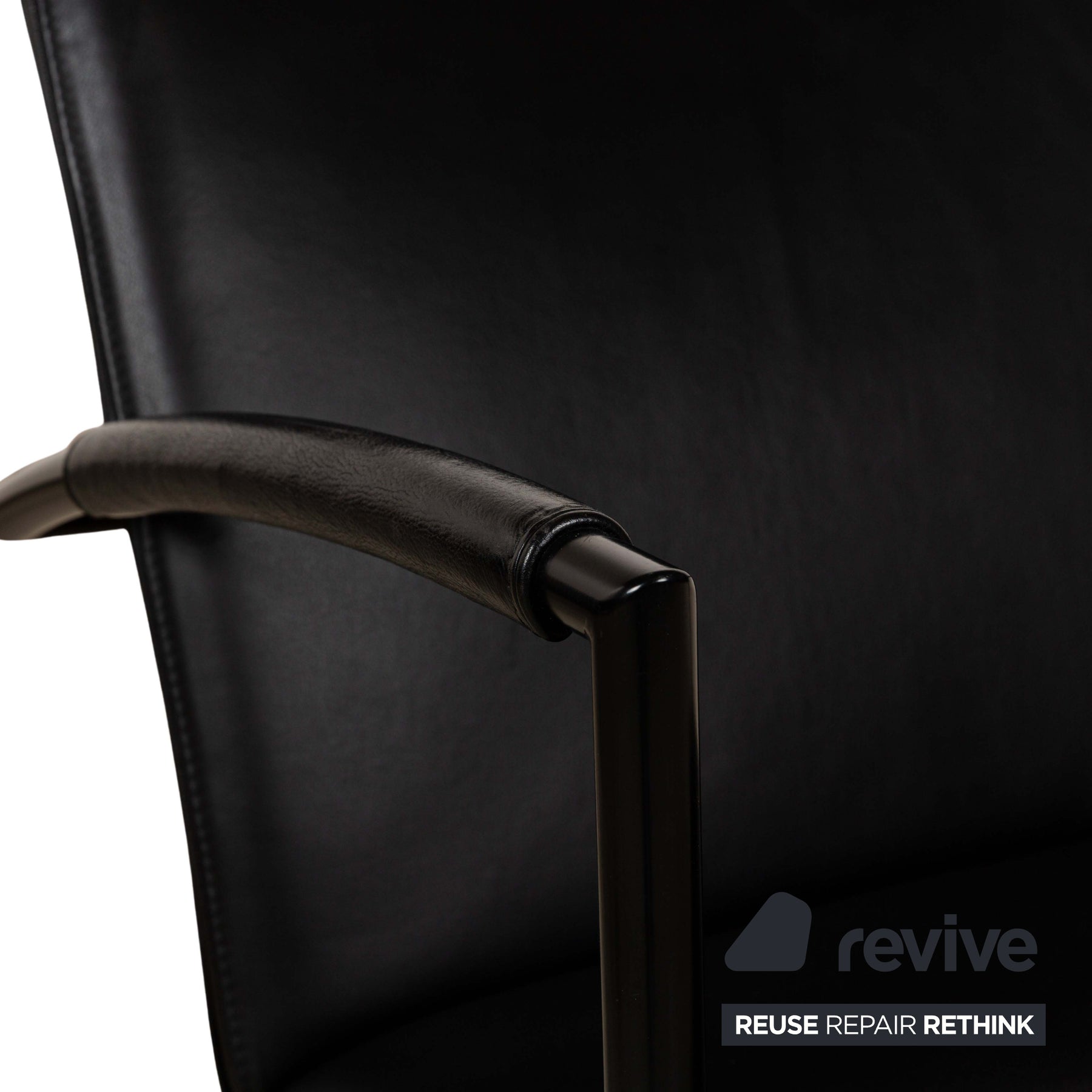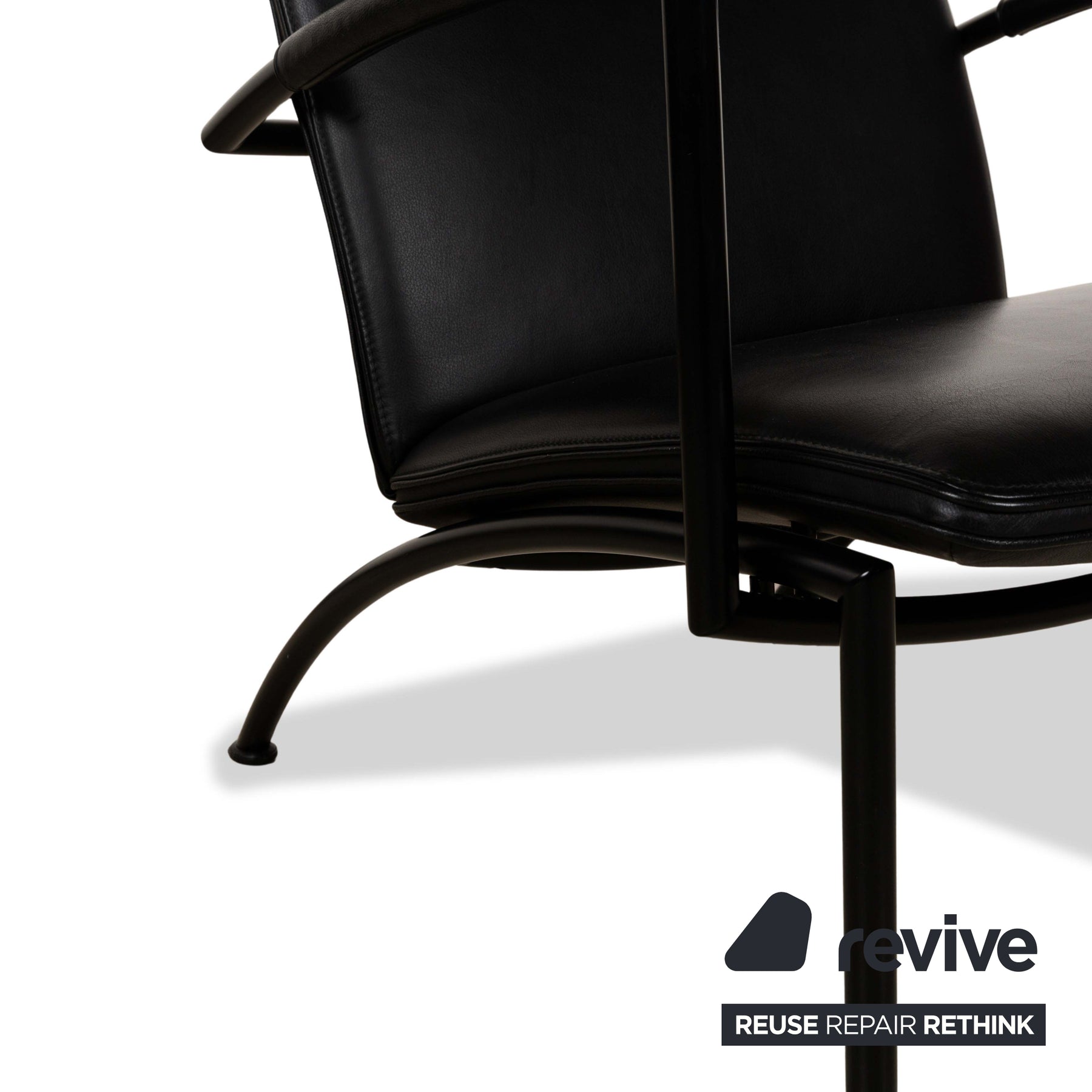 This modern Cor Pando leather armchair with black leather upholstery and a delicate metal frame is the perfect combination of minimalist aesthetics and comfort. The slightly curved armrests and ergonomic design ensure a comfortable sitting position, while the hard-wearing leather surface guarantees easy care and durability.