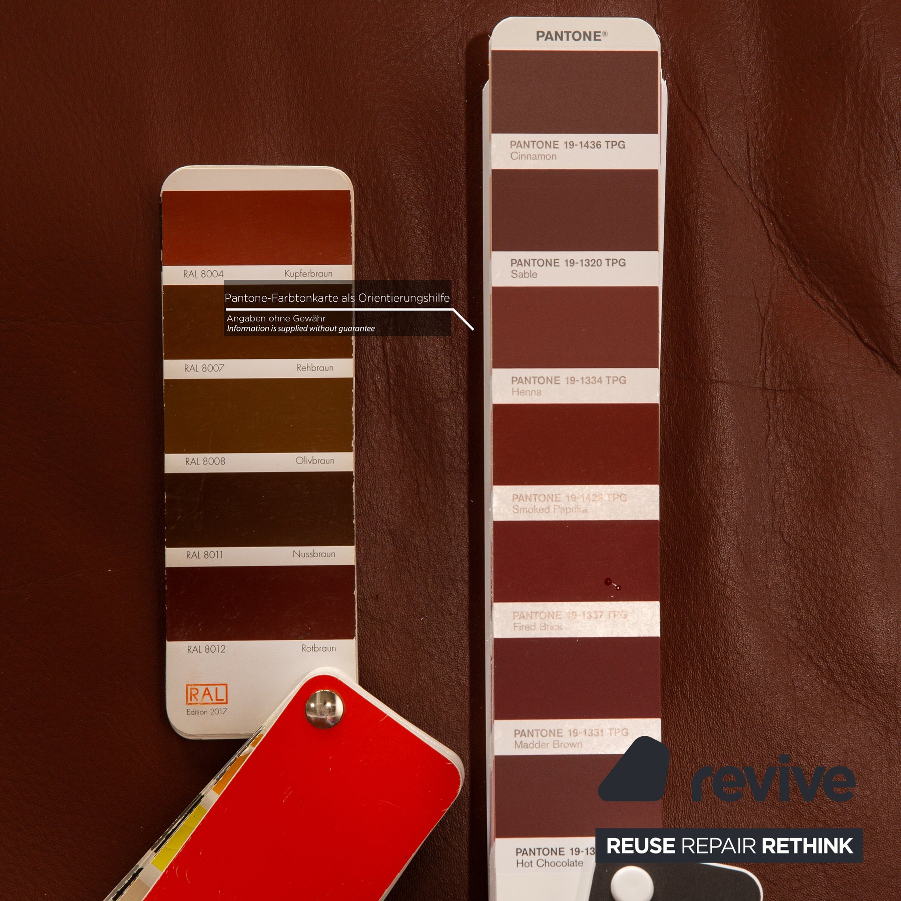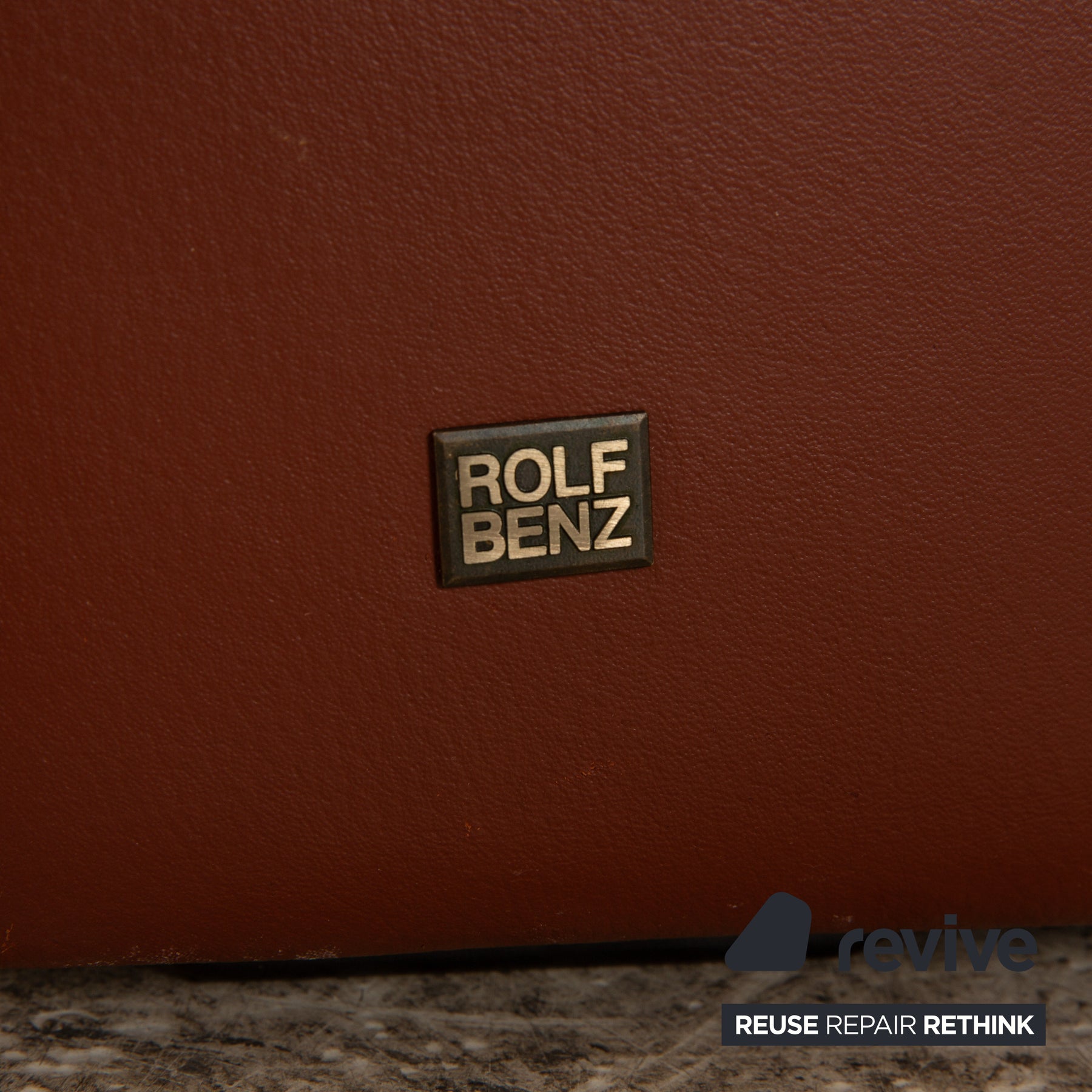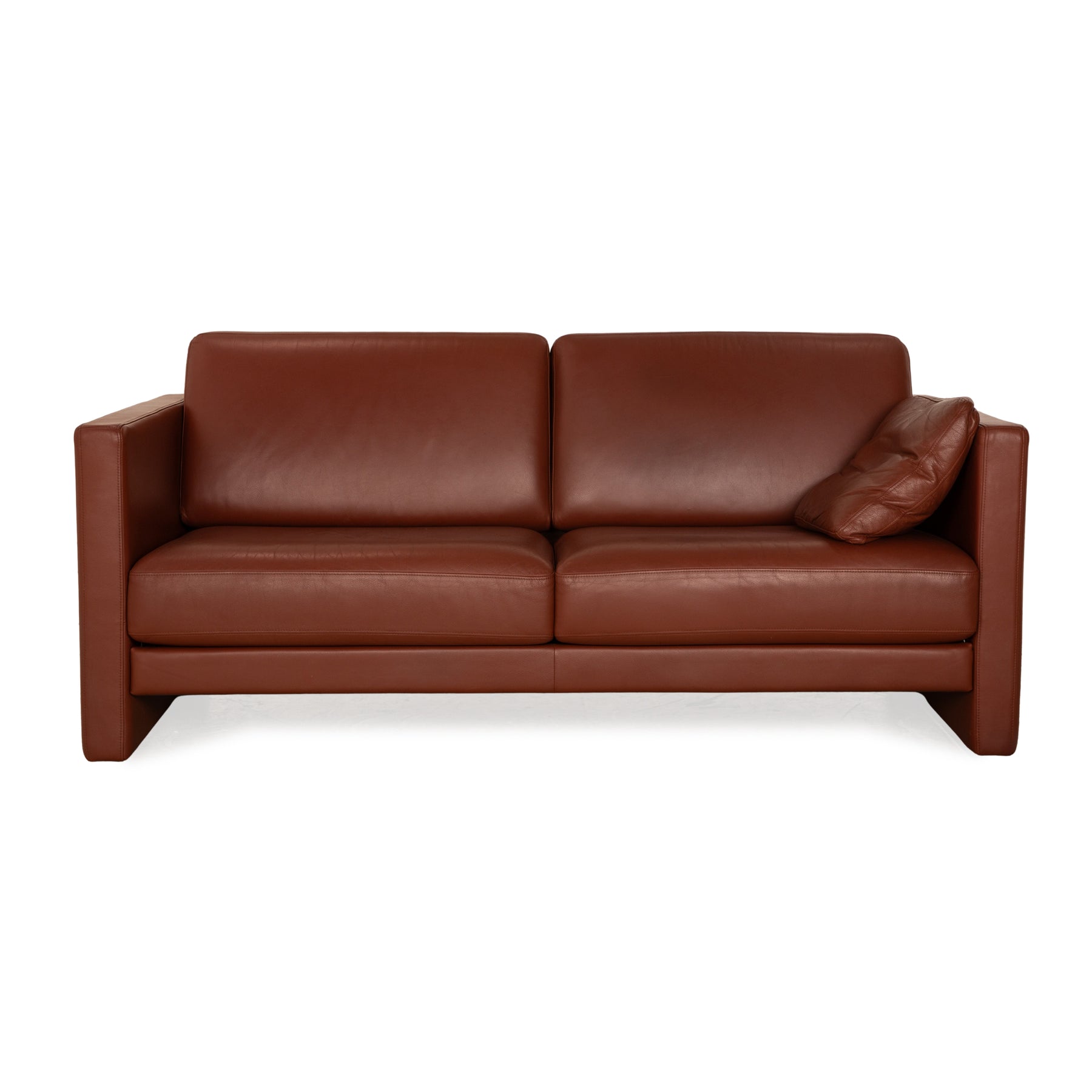 The EGO sofa by Rolf Benz is covered in brown genuine leather and stands on floor-length sides. The minimalist, timeless design characterizes the two-seater.