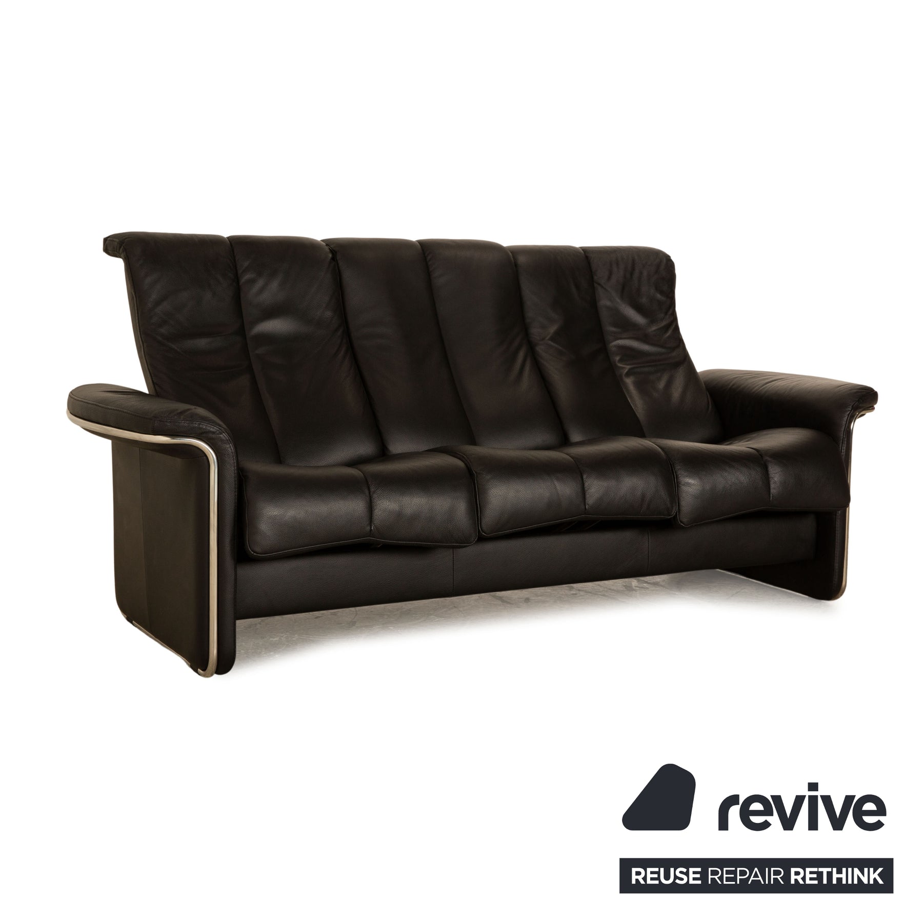 Stressless Soul Leather Three Seater Black Sofa Couch Manual Function