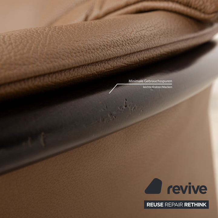 Stressless Eldorado Leather Three-Seater Brown Beige Sofa Couch manual function
